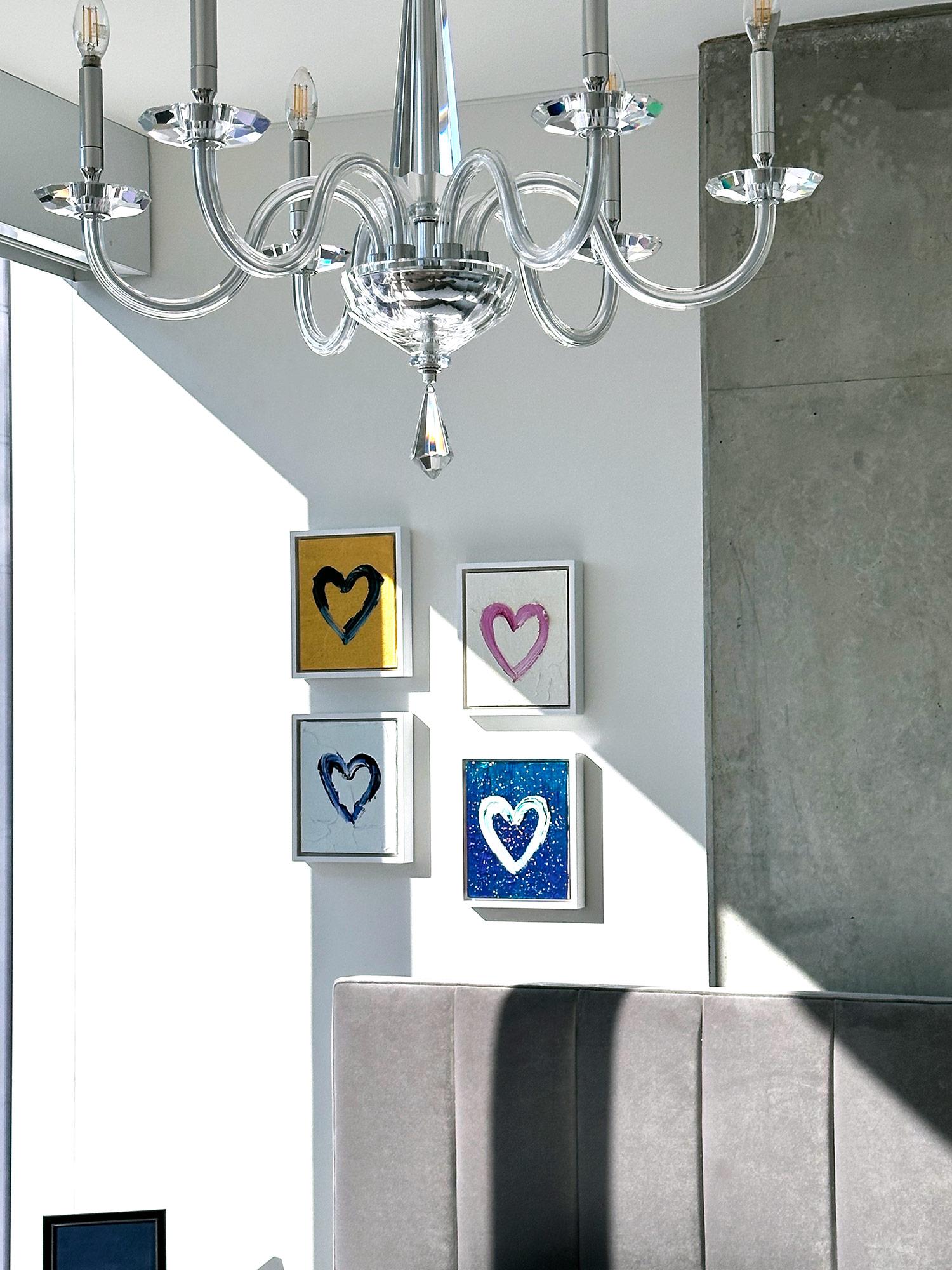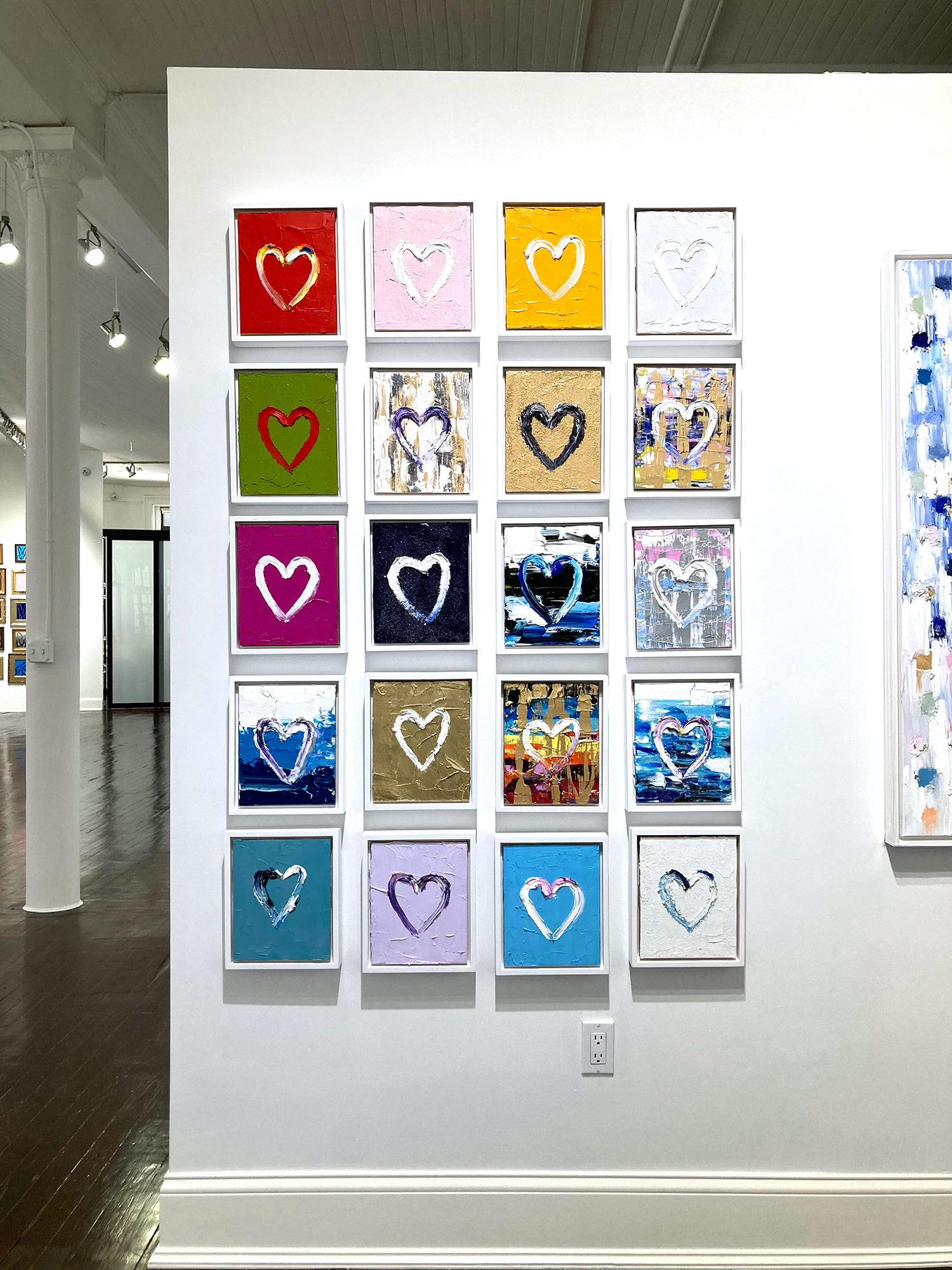 Motiviert durch kräftige Farben und schnelle Pinselstriche, sind wir von der Einfachheit und der dicken Struktur der Ölfarben in diesen Werken begeistert. Shaouls "My Heart Collection" ist eine lebendige und energiegeladene Darstellung der Liebe, die in diesen eleganten Herzen verkörpert wird und uns mühelos Eindrücke von Farbe und Impasto-Malerei vermittelt. Dieses Werk ist mit Ölfarbe und Diamantstaub auf Holz gemalt und in einen weißen, modernen Rahmen eingefasst. Dieses atemberaubende Original-Ölgemälde ist ein ideales Geschenk, um sich selbst oder jemanden, den Sie lieben, zu verwöhnen. Es verleiht jedem kleinen oder mittelgroßen Raum Stil und Anmut. Erstellen Sie eine Installation, um jeden Raum zu füllen, sie sind perfekt als große Gruppe oder nur einzeln. Das Gemälde ist verso signiert und betitelt und wird in einem schlichten weißen Schweberahmen geliefert, der mit einem Draht zum Aufhängen versehen ist.