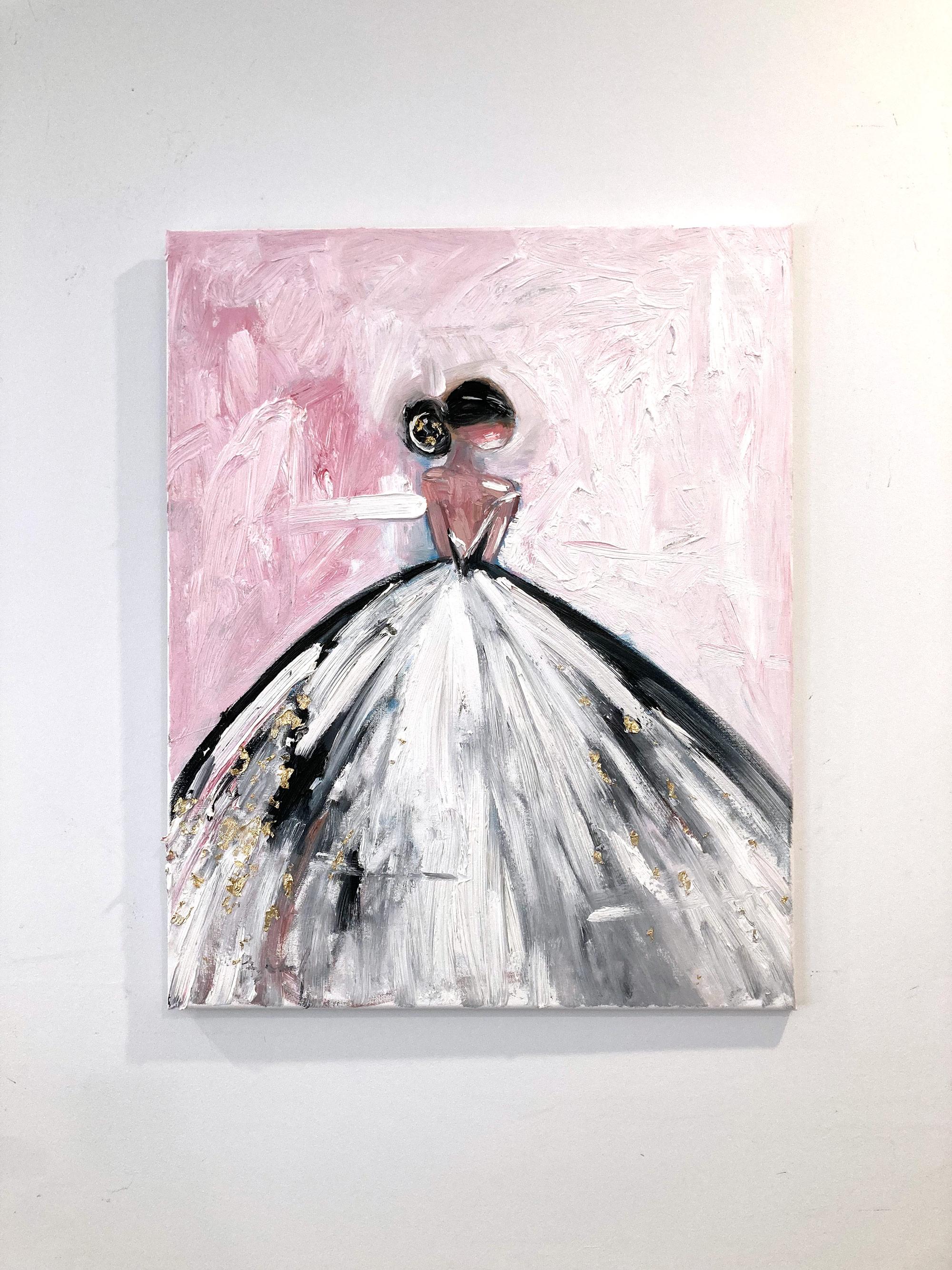 Cindy Shaoul"Princess of Monaco" Figure in Gown French Haute Couture Pink Painting on Canvas2025