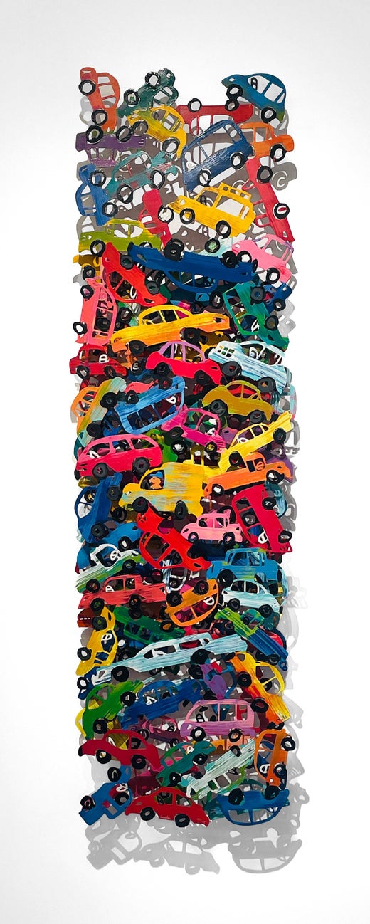"5th Avenue P" von David Gerstein ist eine lebendige Wandskulptur, die die dynamische Energie der berühmten 5th Avenue in New York City einfängt. Mit kräftigen Farben und geschichtet...