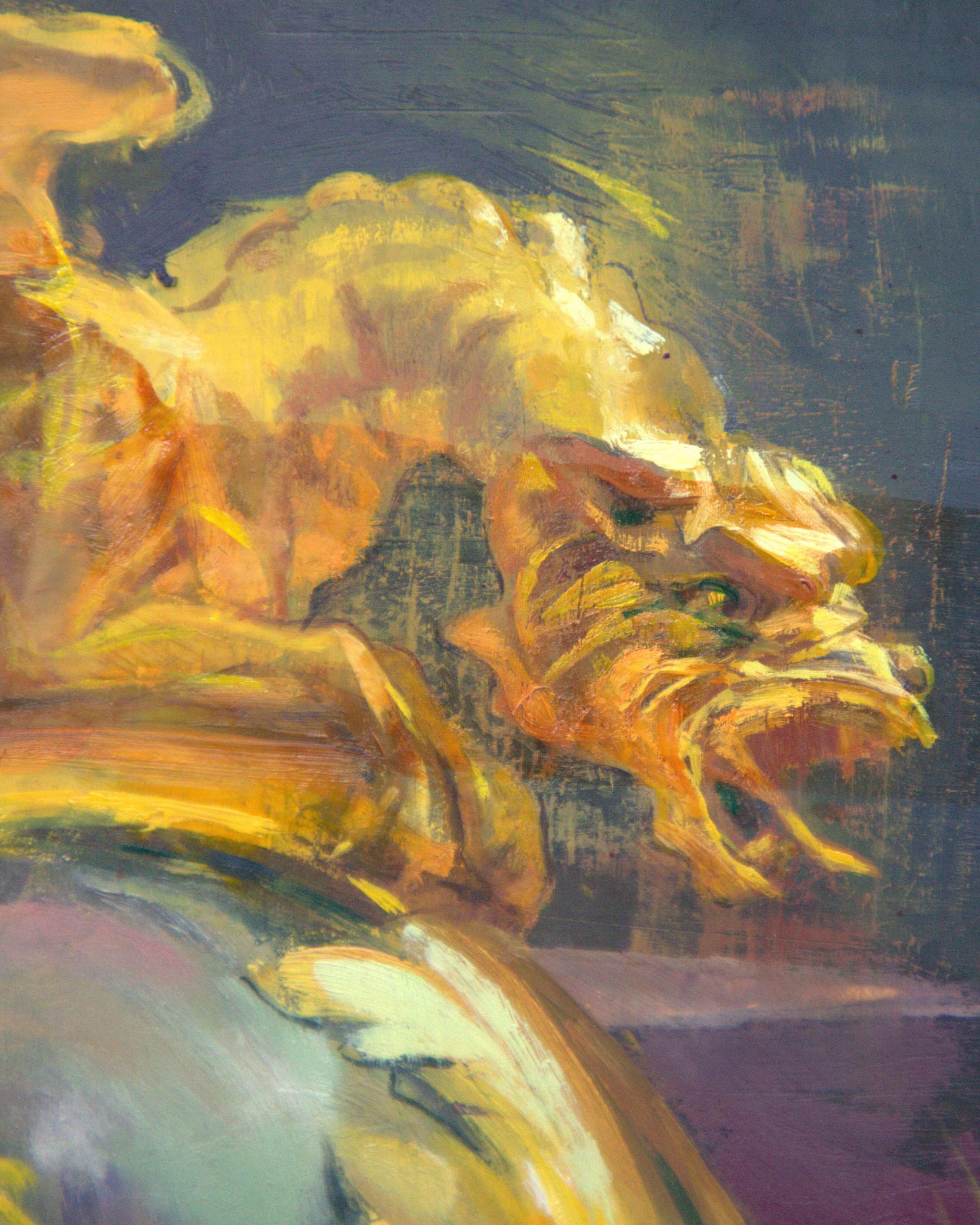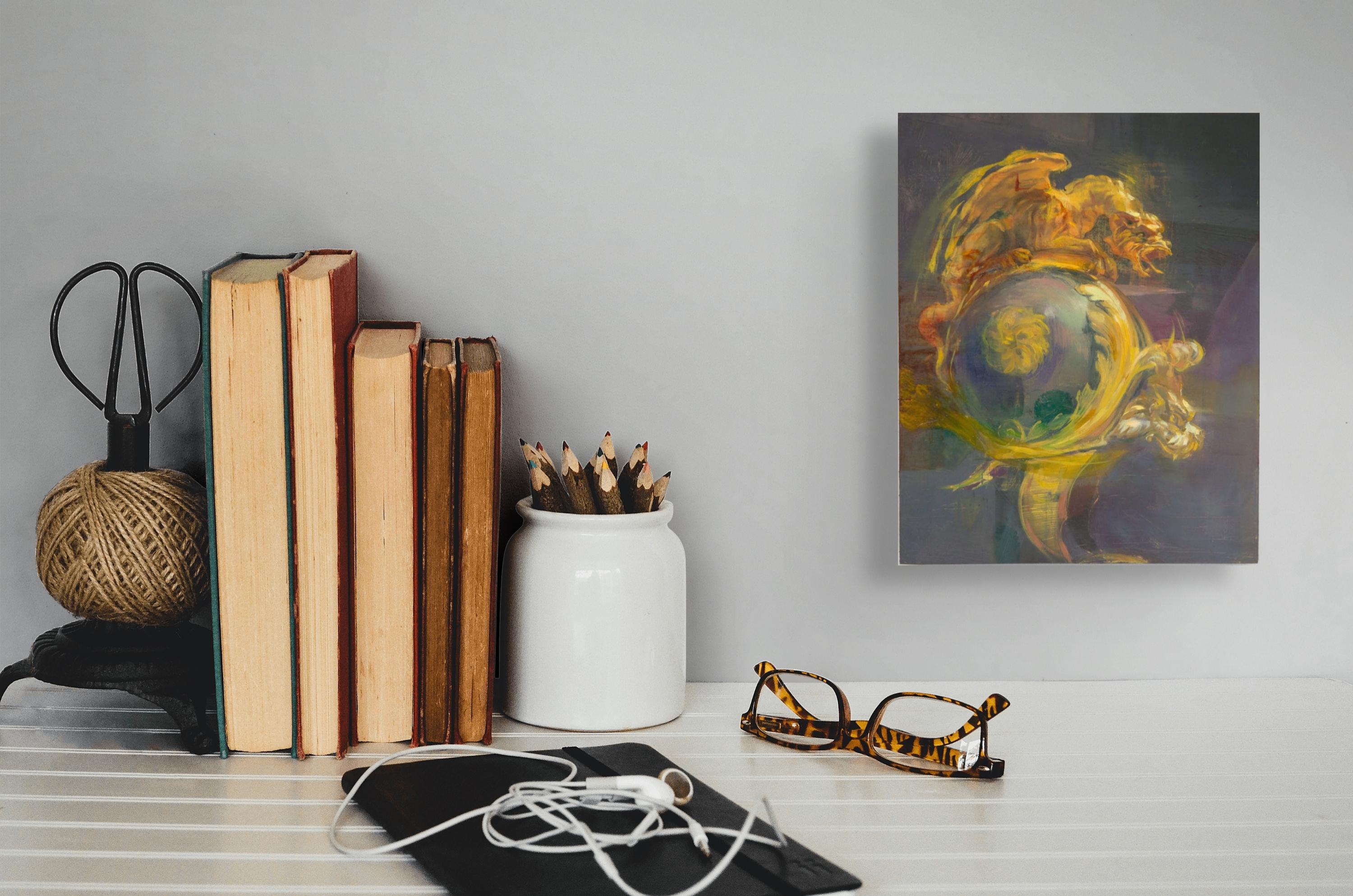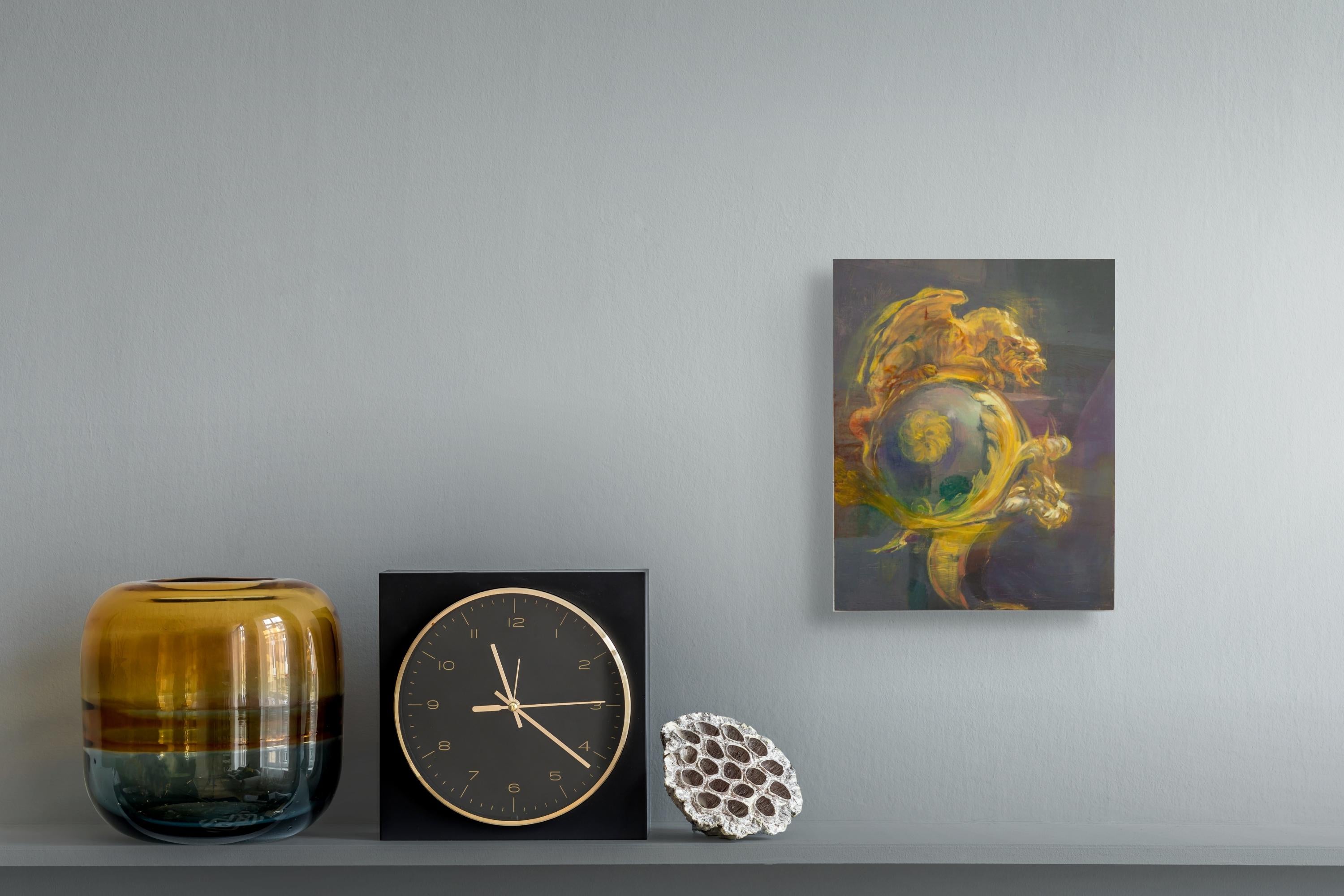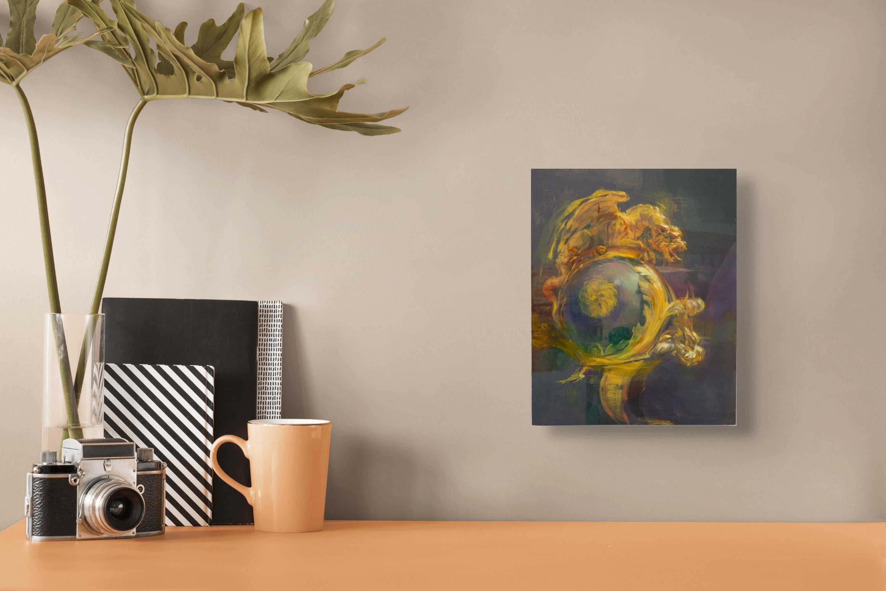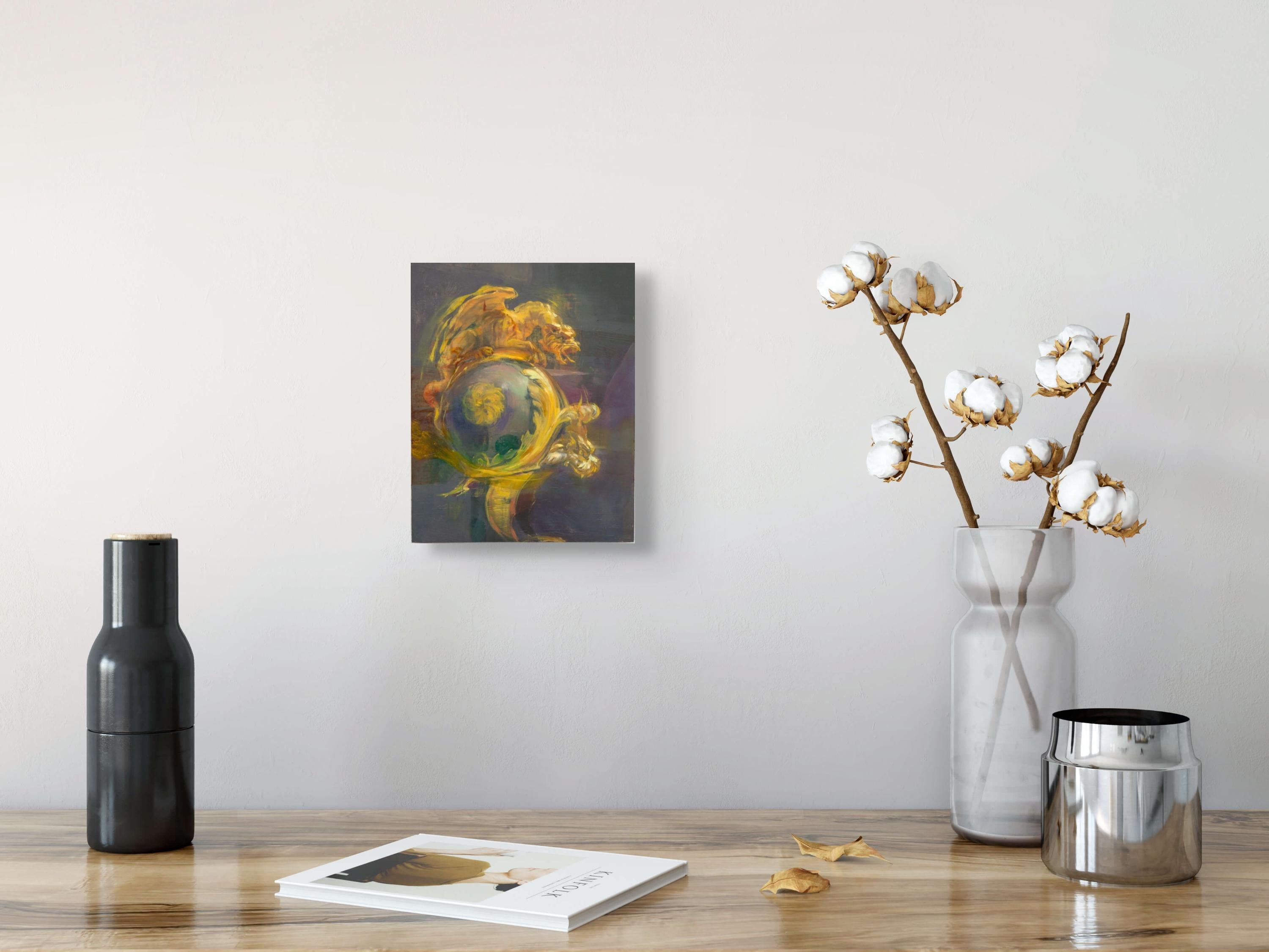 Elena Burjkinas "In a Shade of Its Own Glory" (2024) ist ein originales, handgefertigtes Ölgemälde auf Tafel.