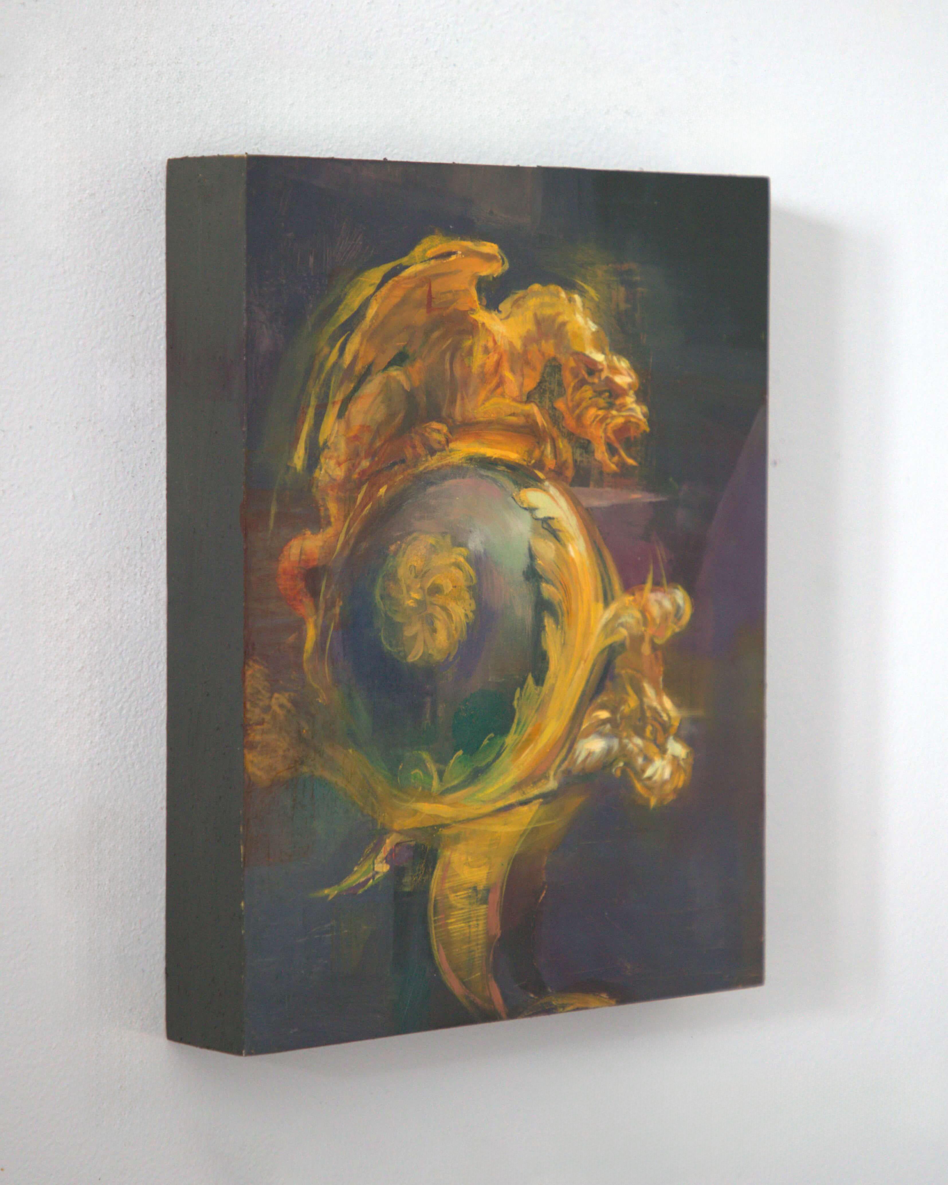 "Phantom" (2025) Stillleben einer mittelalterlichen Rüstung, Ölgemälde auf Tafel