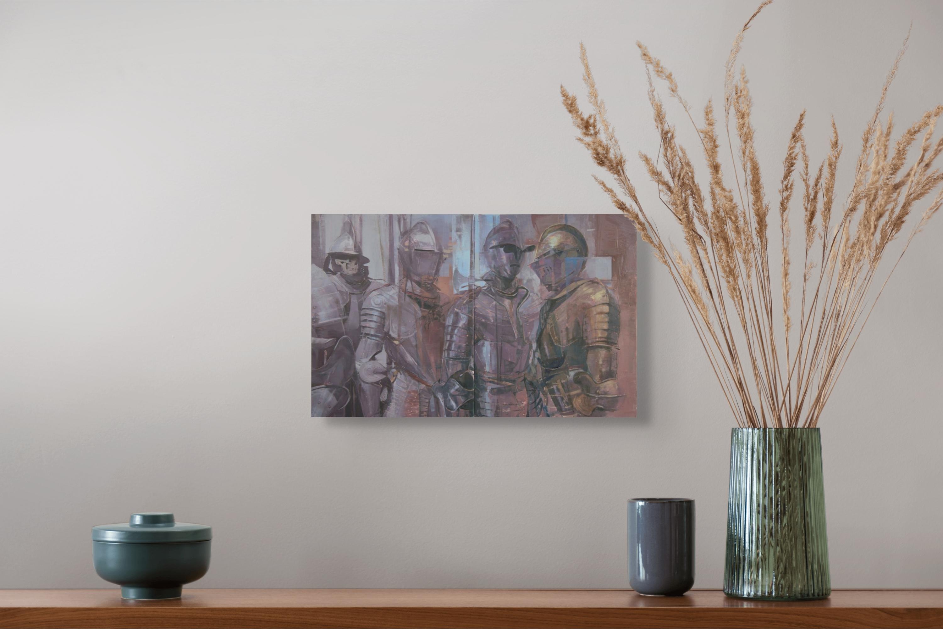 "Schwerter raus" (2023) - Original Mittelalterliche Rüstung Still-Leben Ölgemälde