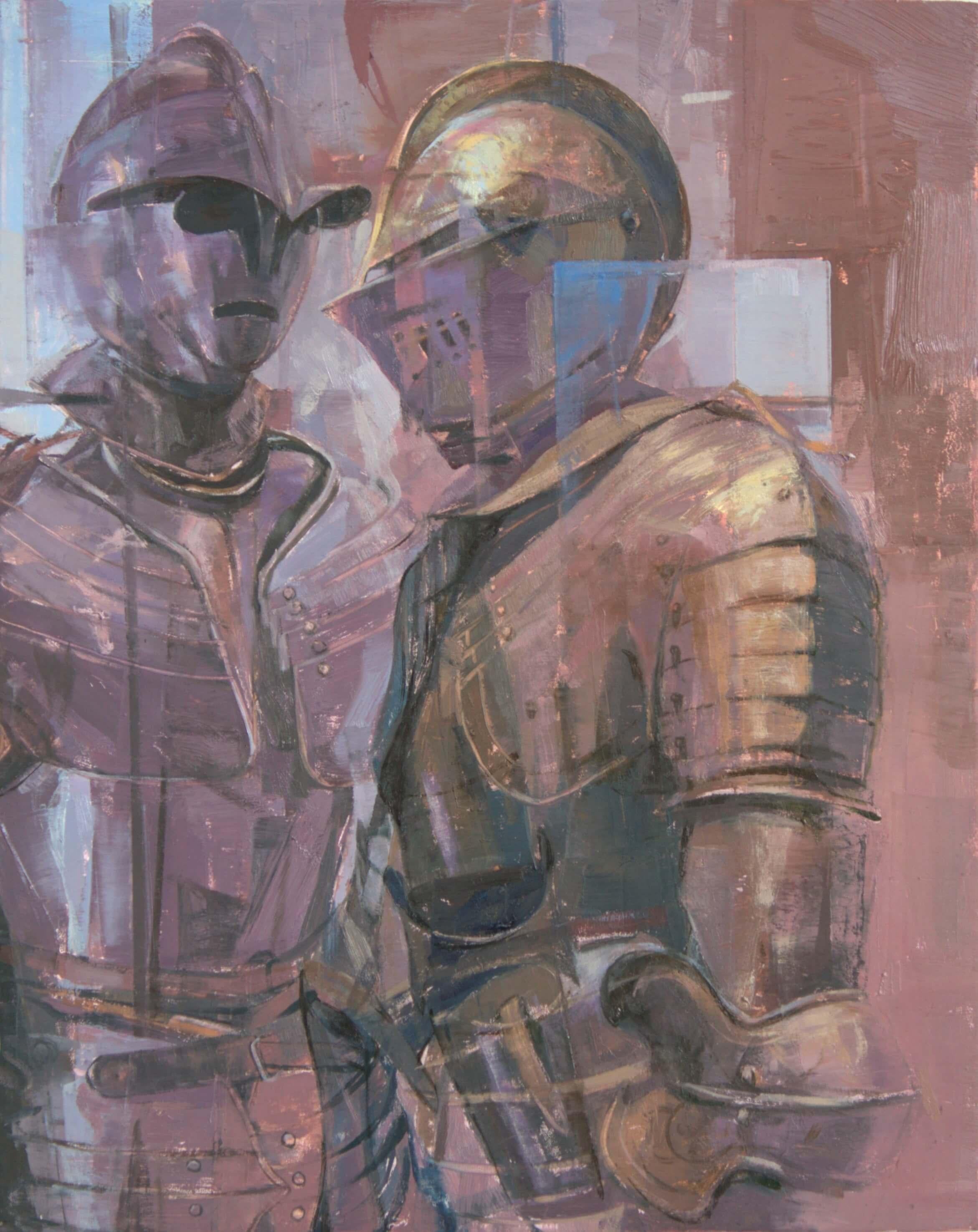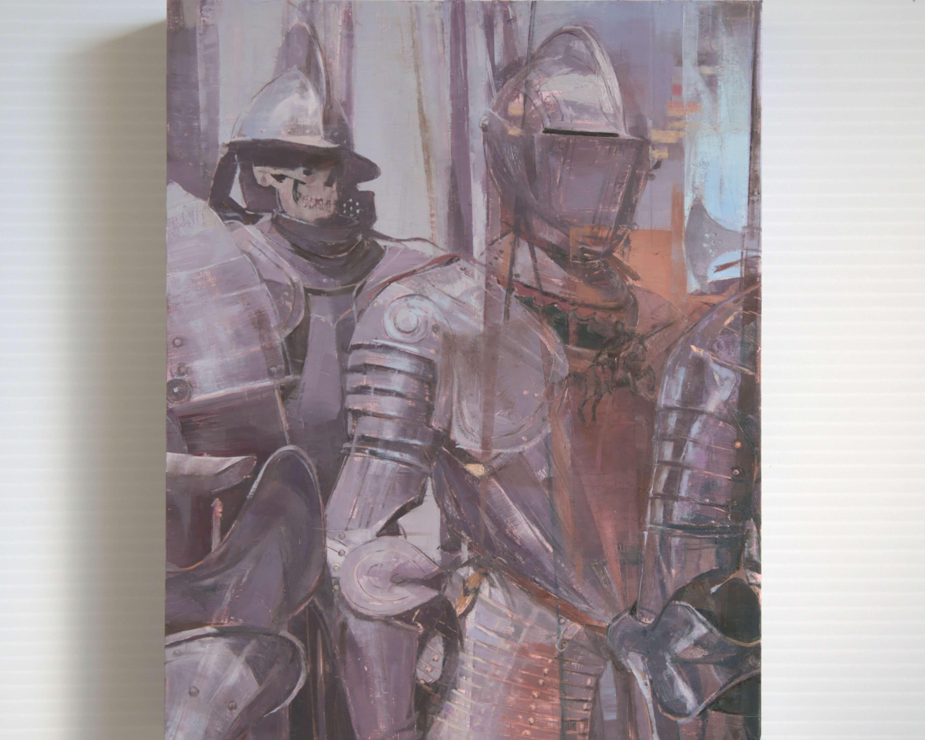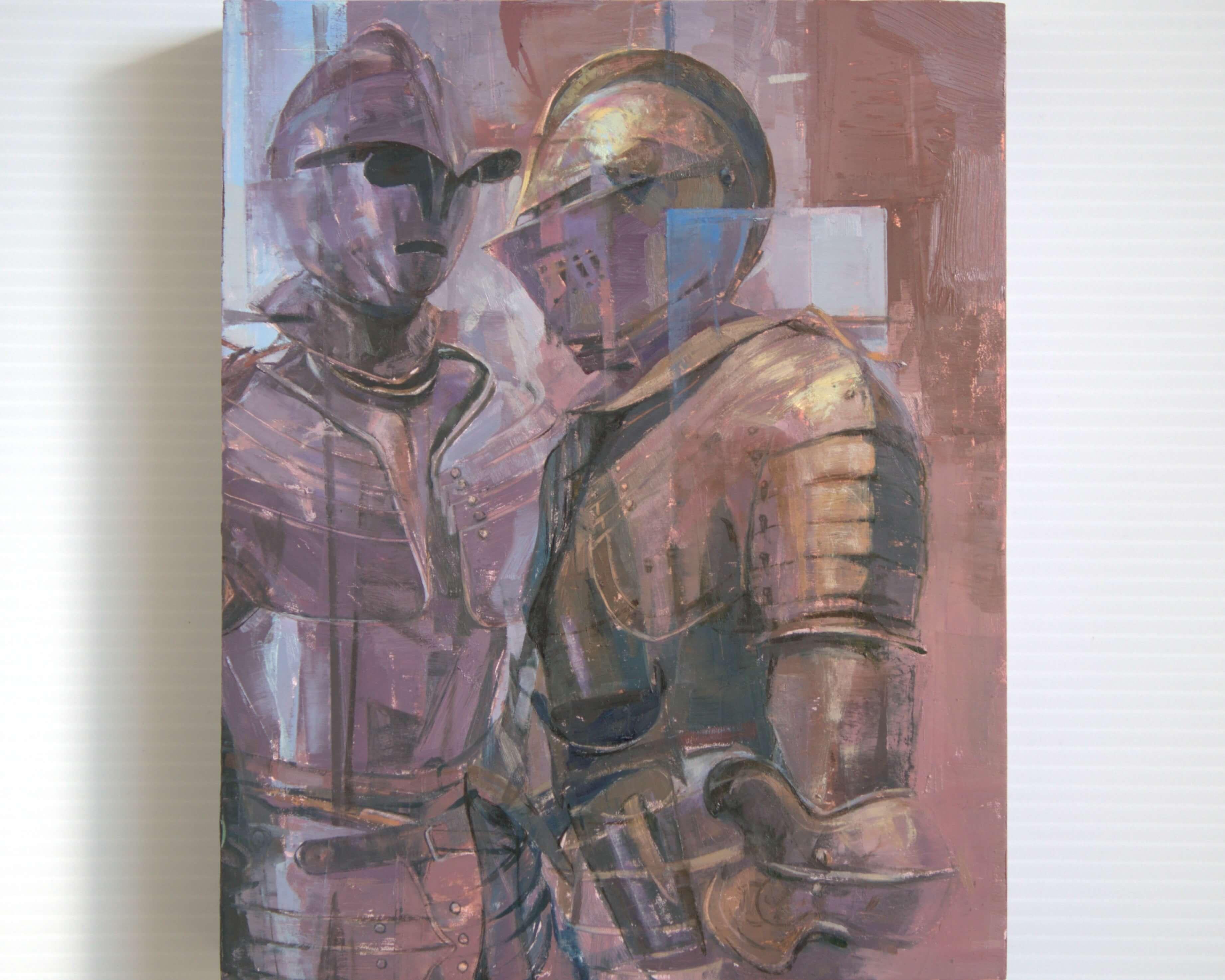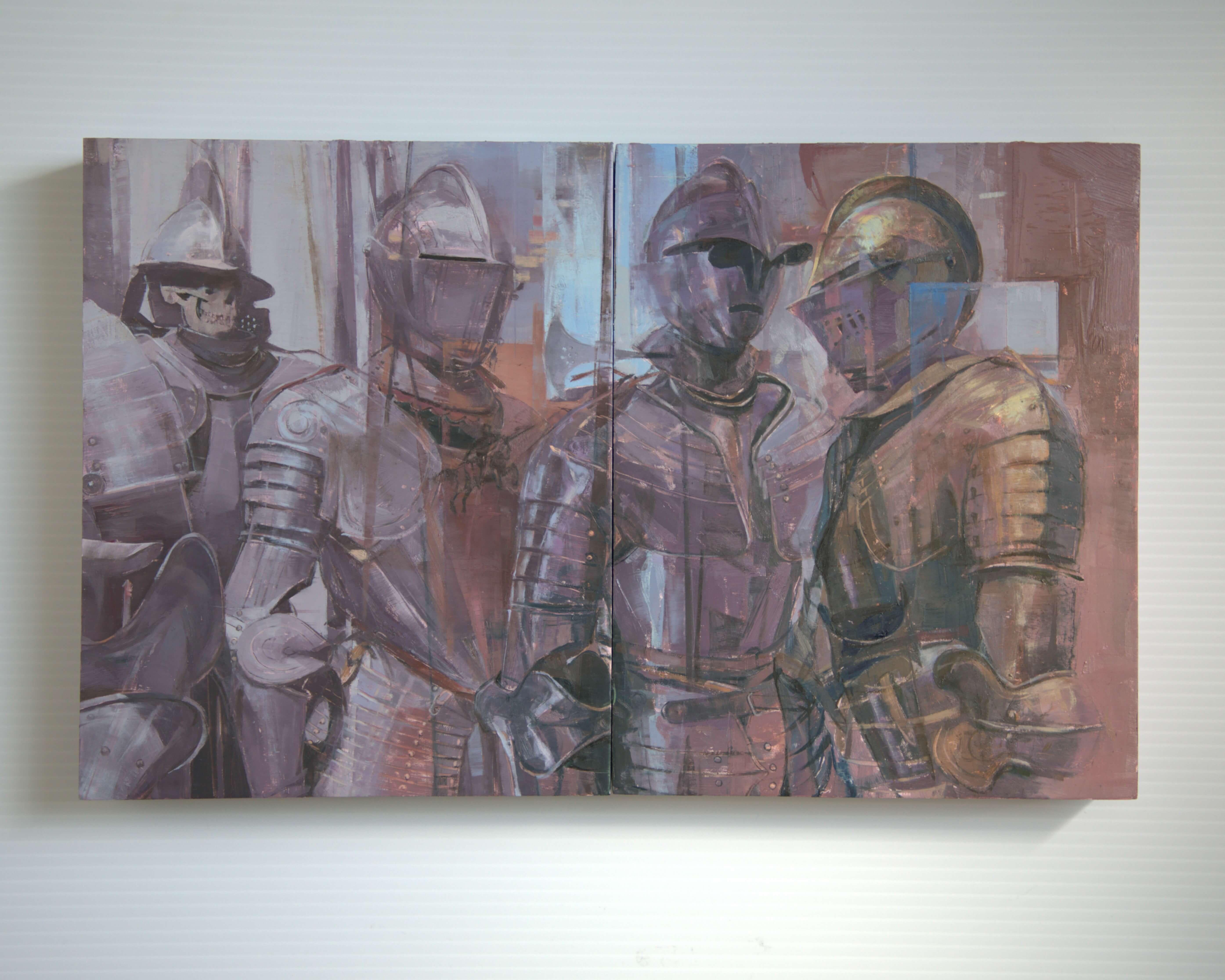 Elena Burykina"Parley (Diptychon)" (2025) Stillleben einer mittelalterlichen Rüstung, Ölgemälde2025