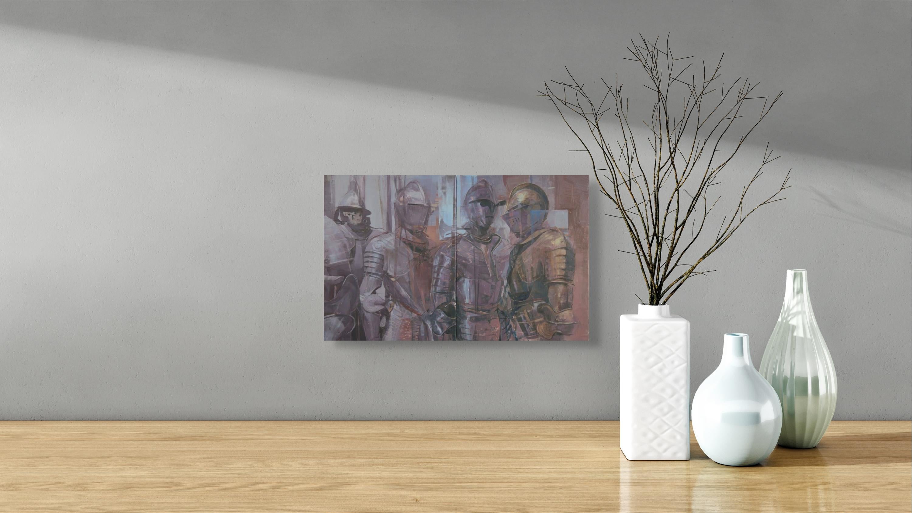 Objekte ähnlich wie "Parley (Diptychon)" (2025) Stillleben einer mittelalterlichen Rüstung, Ölgemälde