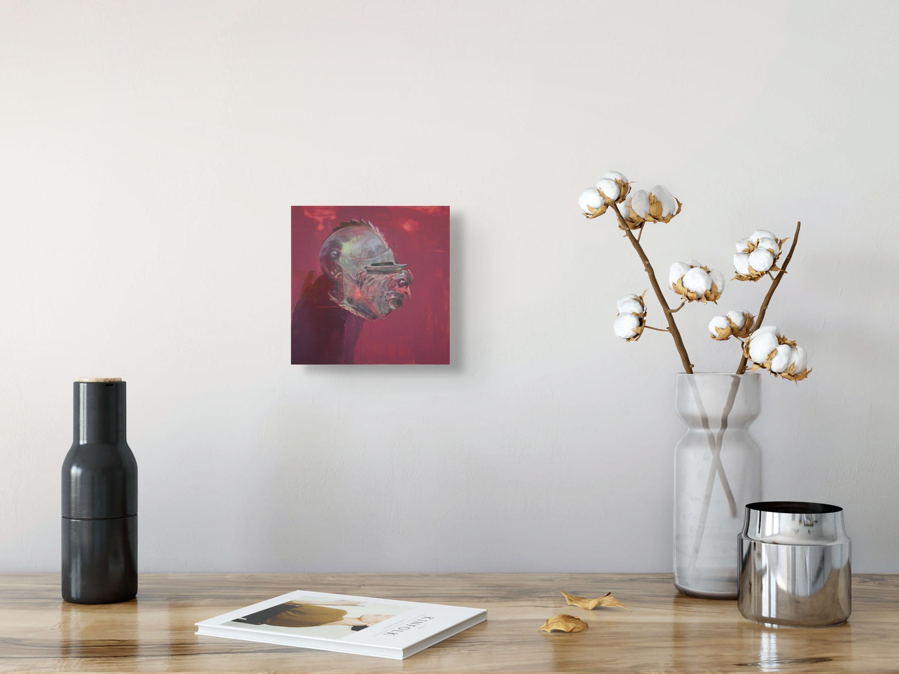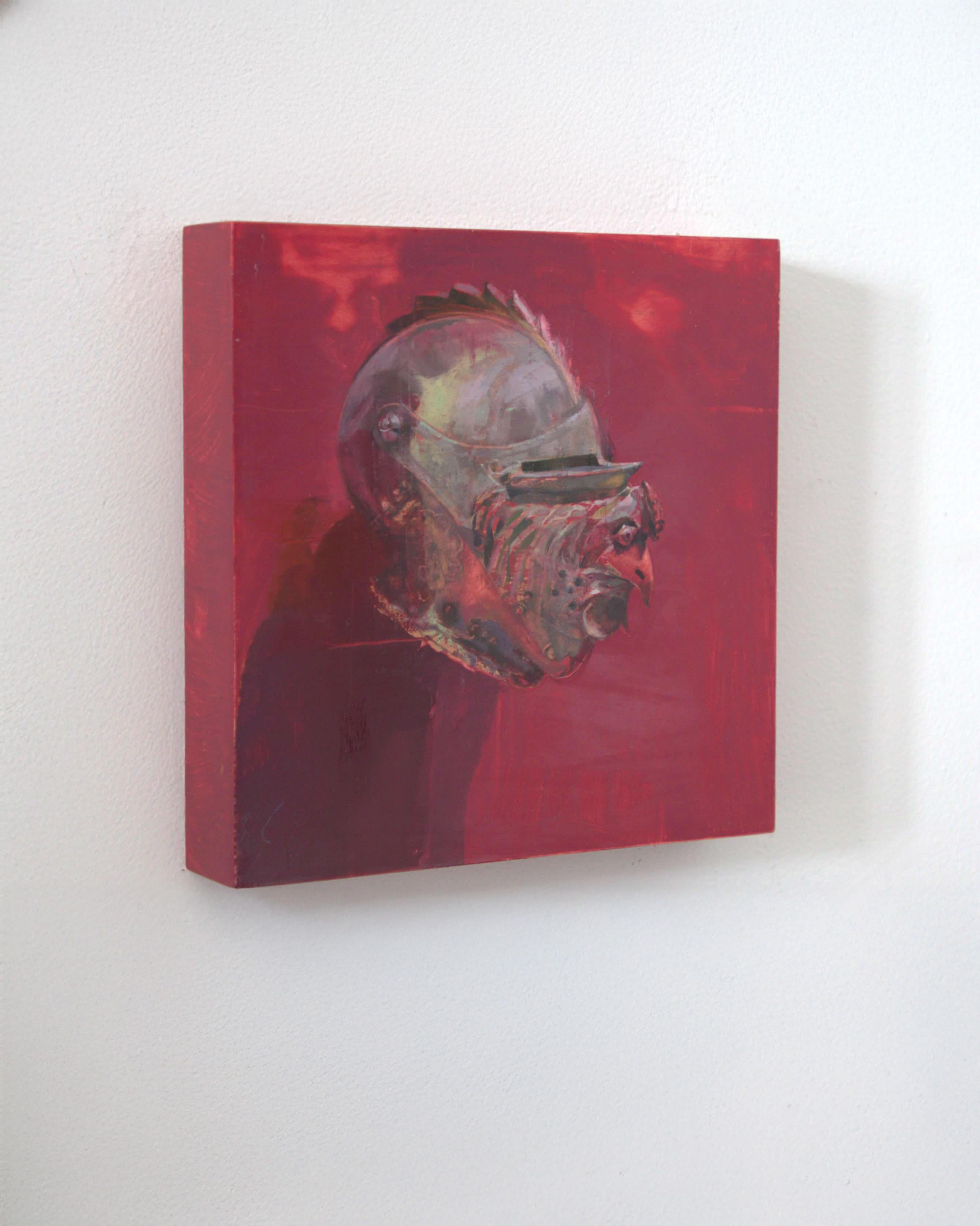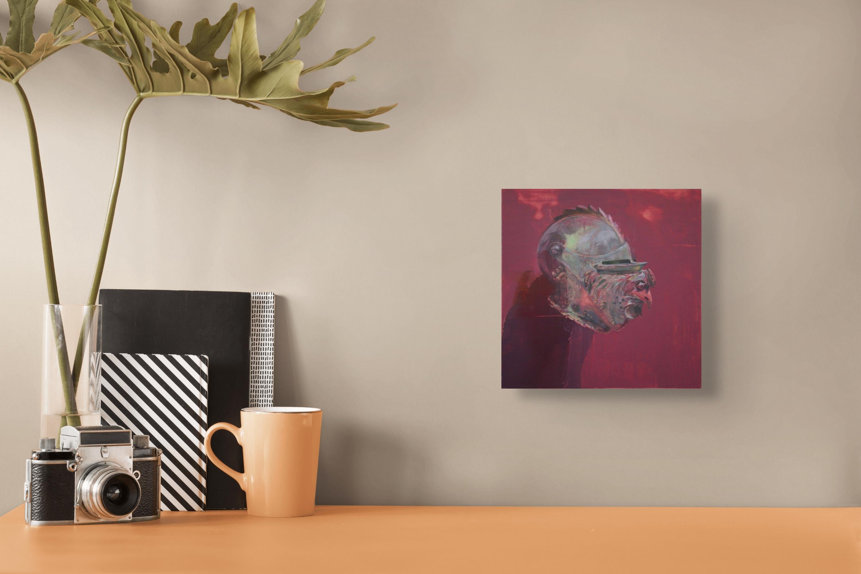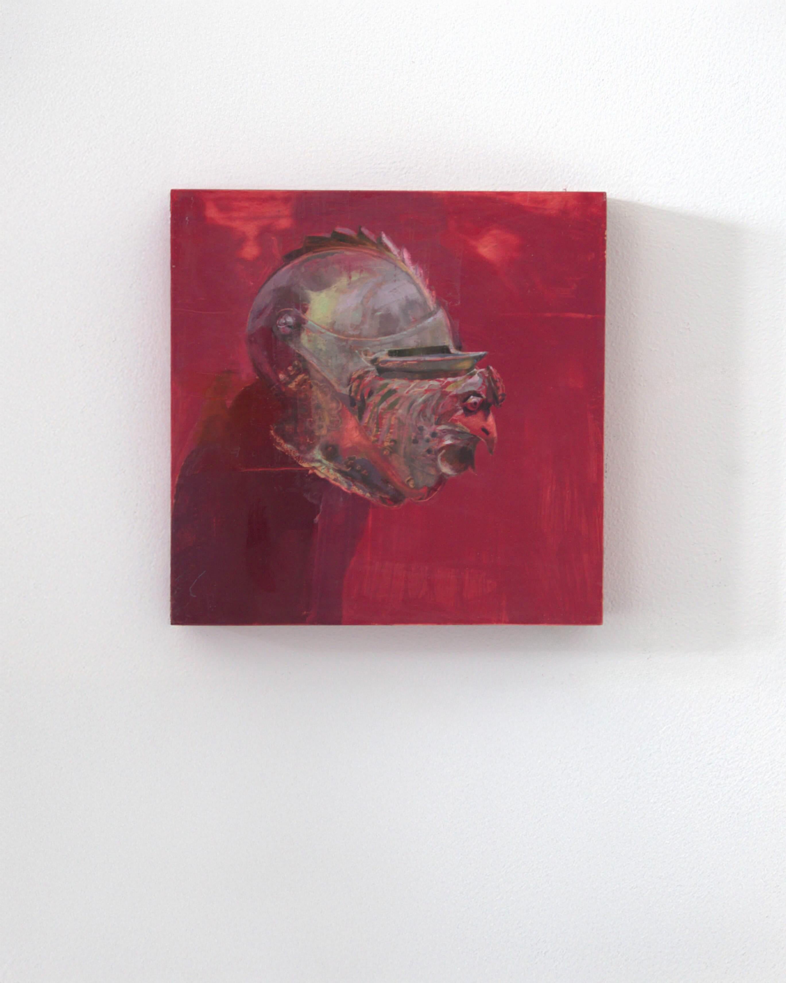 Elena Burykina"Roter Hahn" (2023) - Mittelalterliche Rüstung Stillleben Ölgemälde2023