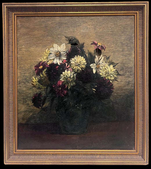 Antikes Ölgemälde auf Leinwand, auf eine Tafel montiert, in einem geschni...