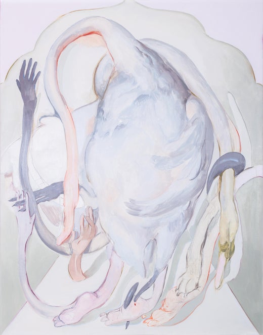 Umhüllt von ausgestreckten Gemälden enthüllt Gonzalo García die allgegenwärtigen Geister unserer Vergangenheit und Gegenwart in einem zarten Wirbel aus Farbe, Licht und Fleisch. Diese zutiefst viszeralen Darstellungen von Tieren, Körpern und mythologischen Kreaturen werden in der Palette seiner Ölgemälde in sanften Tönen lebendig. Es ist ein Kampf um das Gleichgewicht, eine Spannung zwischen Stärke und Zerbrechlichkeit, Sicherheit und Verletzlichkeit, Männlichkeit und Weiblichkeit und sogar Leben und Tod. Von seinen Gemälden bis hin zu seinen Tapeten taucht der Betrachter in eine zeitliche Unterbrechung ein, während García seine Beziehung zur Erinnerung, seine familiären Bindungen und das Streben nach Identität untersucht.
