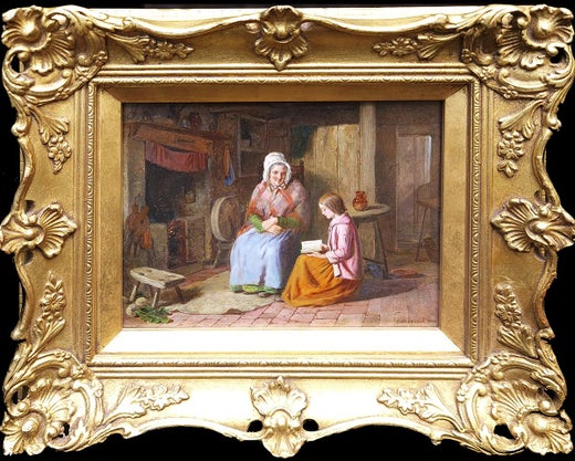 Gerahmtes Öl aus dem 19. Jahrhundert - Familienszene