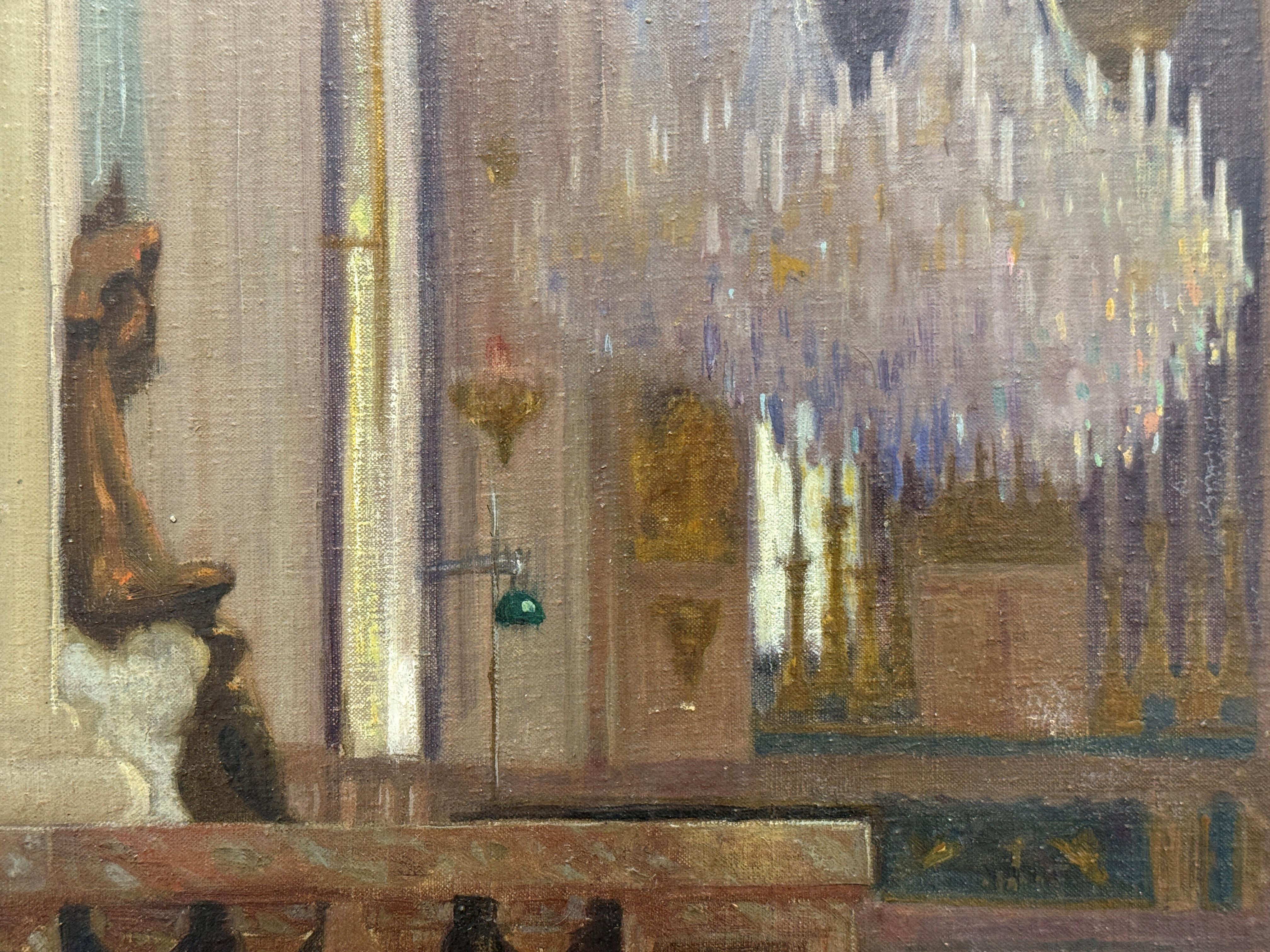 Dieses bemerkenswerte Gemälde von Ohannes Alkhazyan, einem bedeutenden russisch-armenisch-französischen Künstler und treuen Schüler von Konstantin Korovin, zeigt die spirituelle Prac...