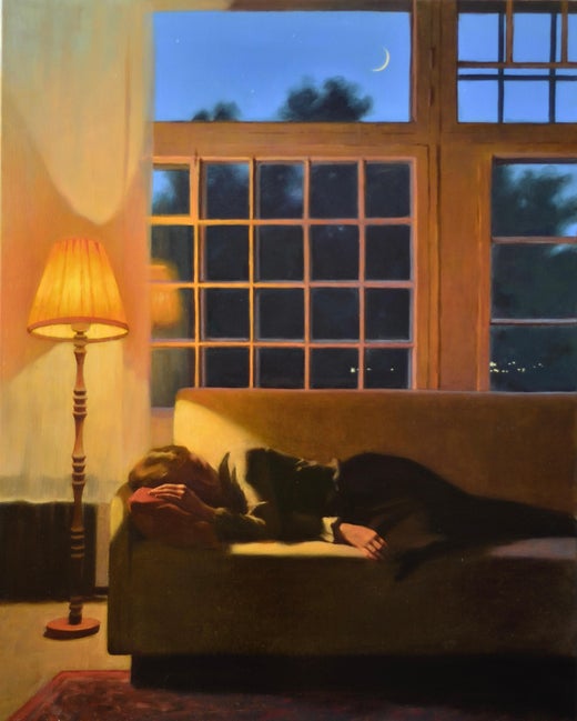 Sweet dreams in the Moonlight 21. Jahrhundert Interieurgemälde mit Figuren