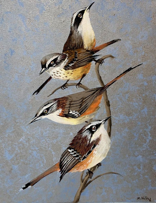 Gardens of delight 12 - Figuratives Gemälde, Vögel, Realistisch, lebhafte Farben