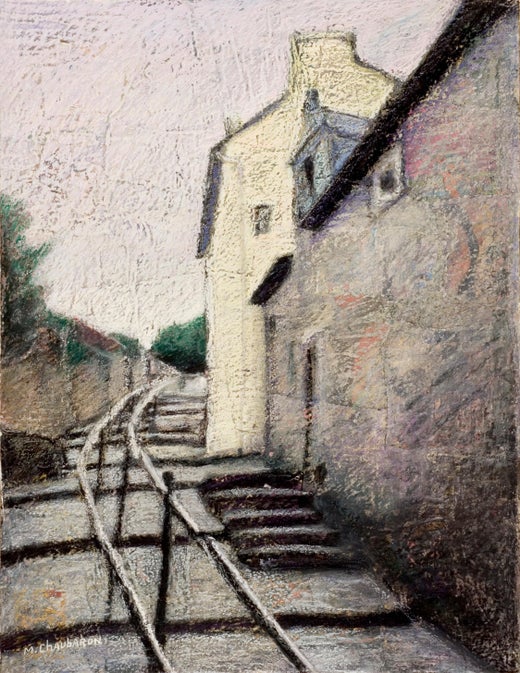 Marc ChaubaronView of the „Rampes du Loc'h“ auf Auray Ramparts at Sunset, Bretagne, Ölpastell2019