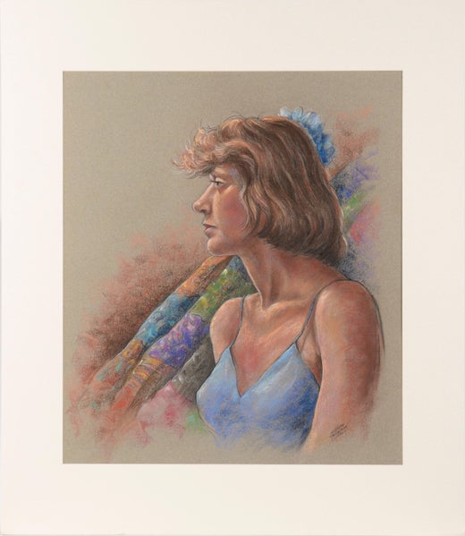 „Rebecca“ (ca. 1992) von Dan Beck Original pastellfarbenes Porträt auf Papier