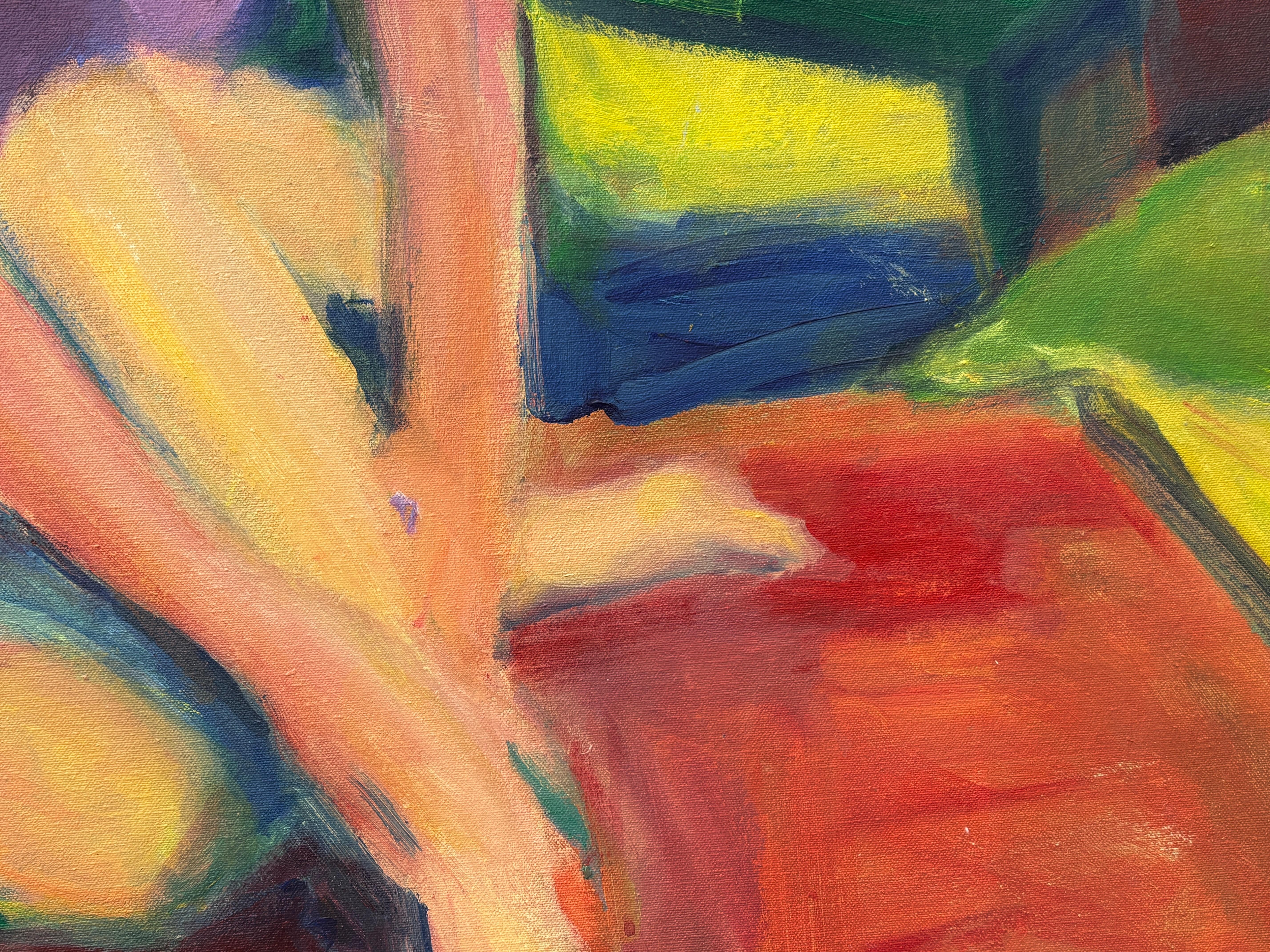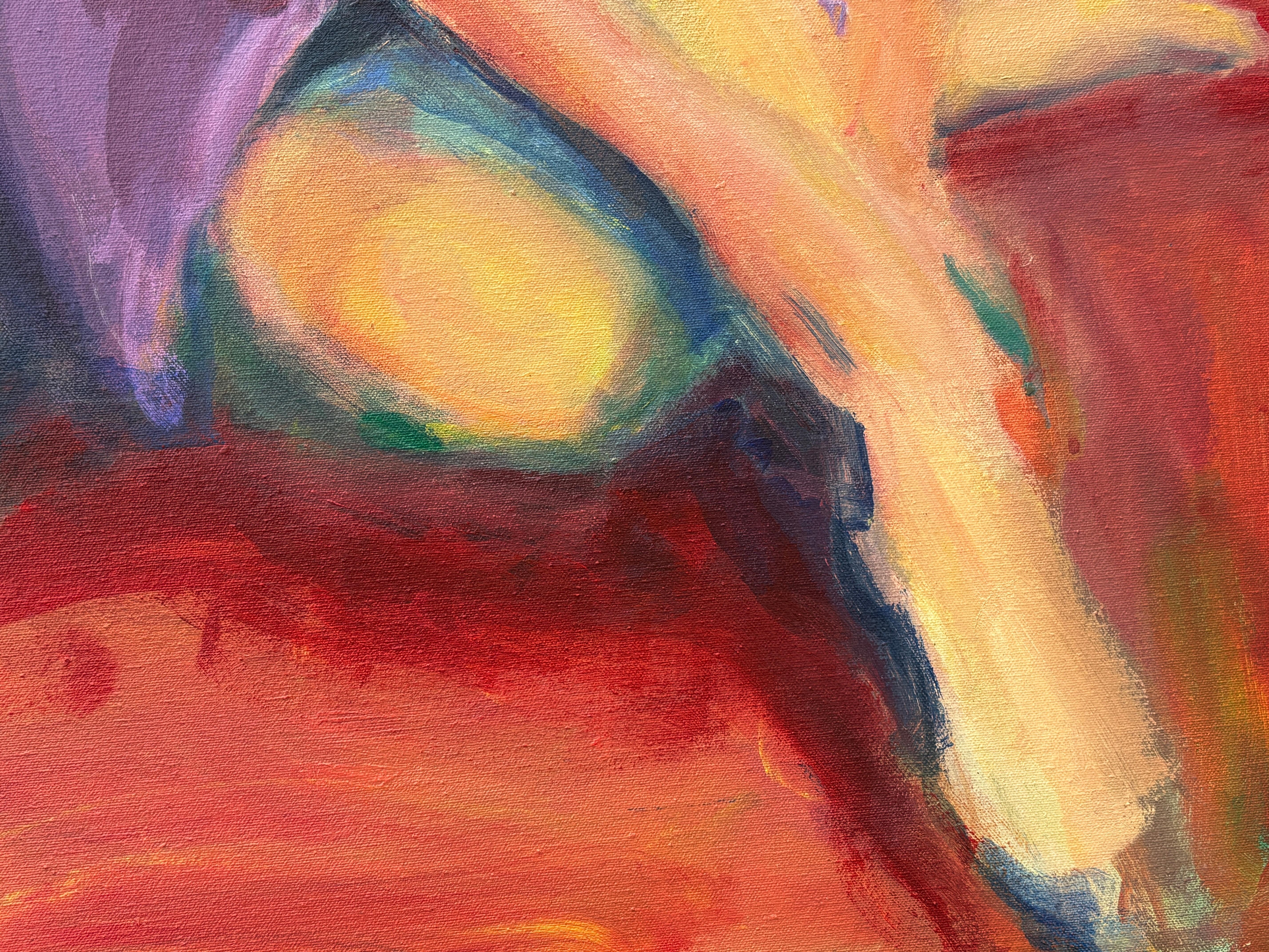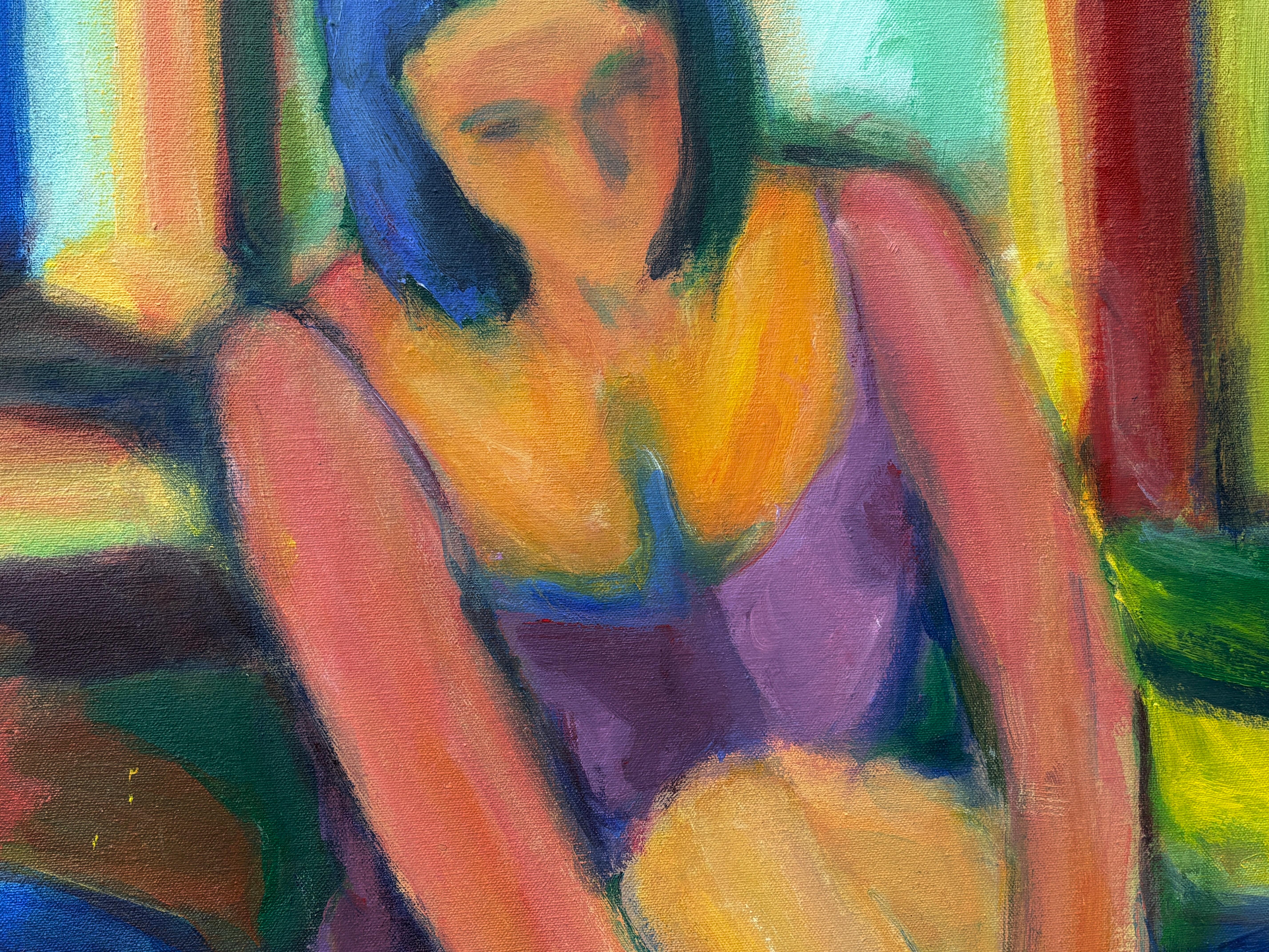 „Frau im Sonnenlicht und im Schatten“ von M. Petersen – farbenfrohe figurative abstrakte Malerei