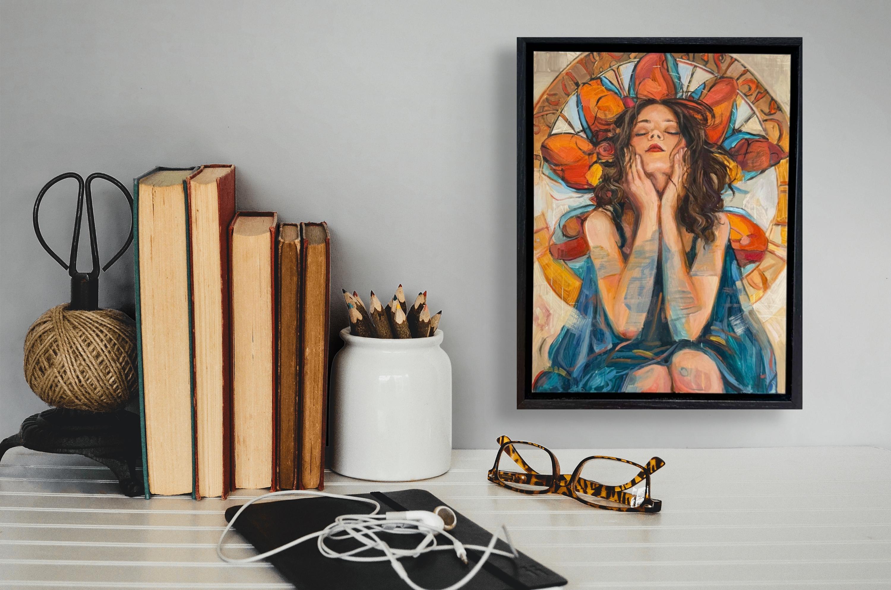 Michelle Jaders "Blur of Becoming" ist ein wunderschönes, originales Ölgemälde auf Karton. Dieses Werk ist gerahmt, 12,50 x 9,50 Zoll groß und kann aufgehängt werden.