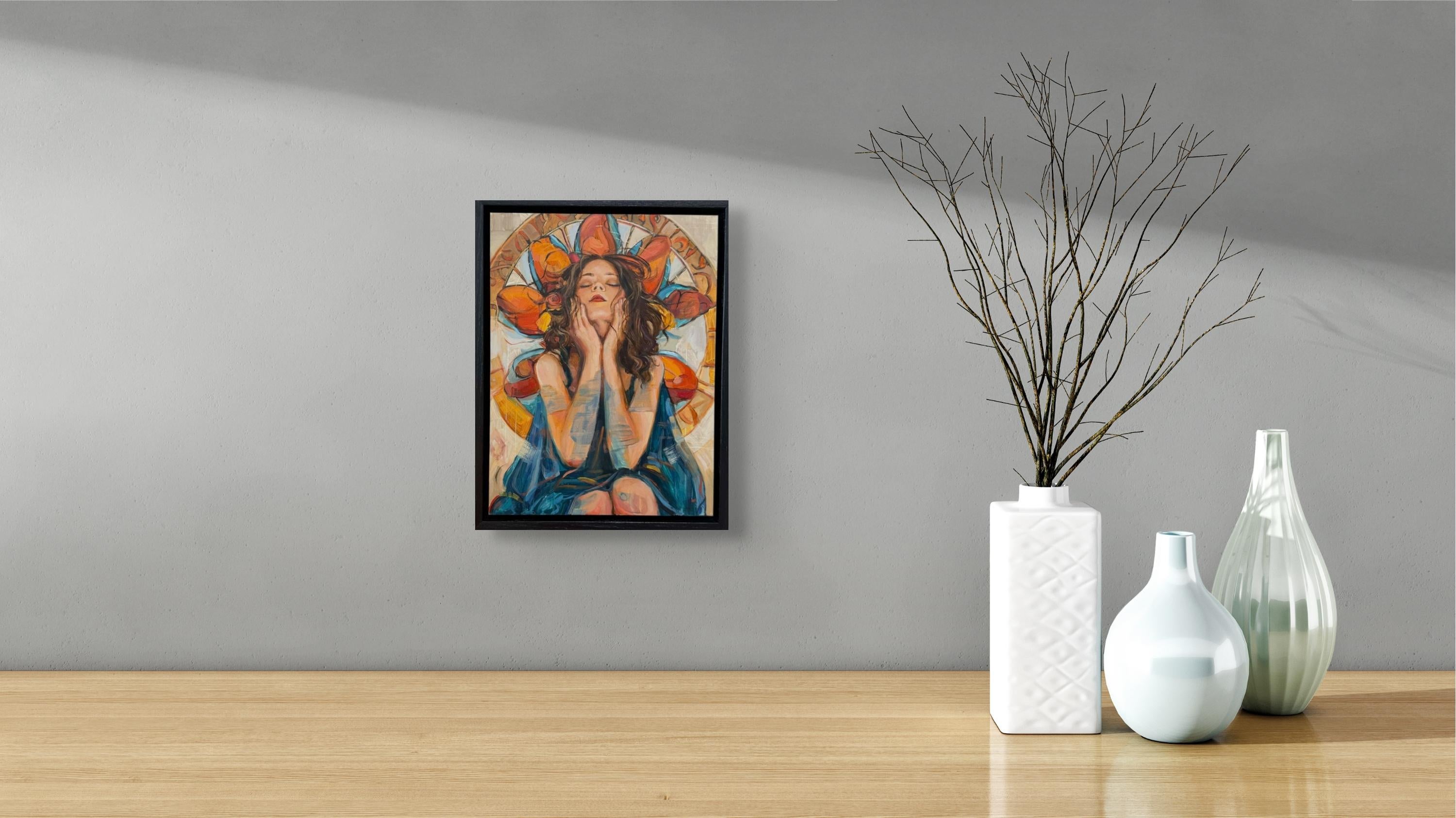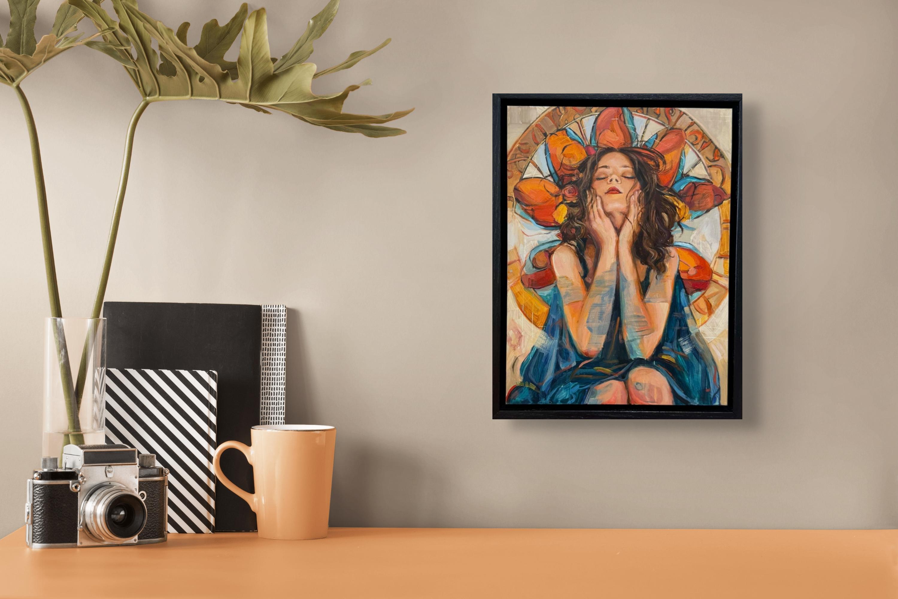 Lisa Fricker's "Miraculous" ist ein originales, handgefertigtes Ölgemälde, das ein abstraktes Porträt einer Frau zeigt. Es misst 8,25 x 8,25 Zoll. Dieses Gemälde ist gerahmt und häng...