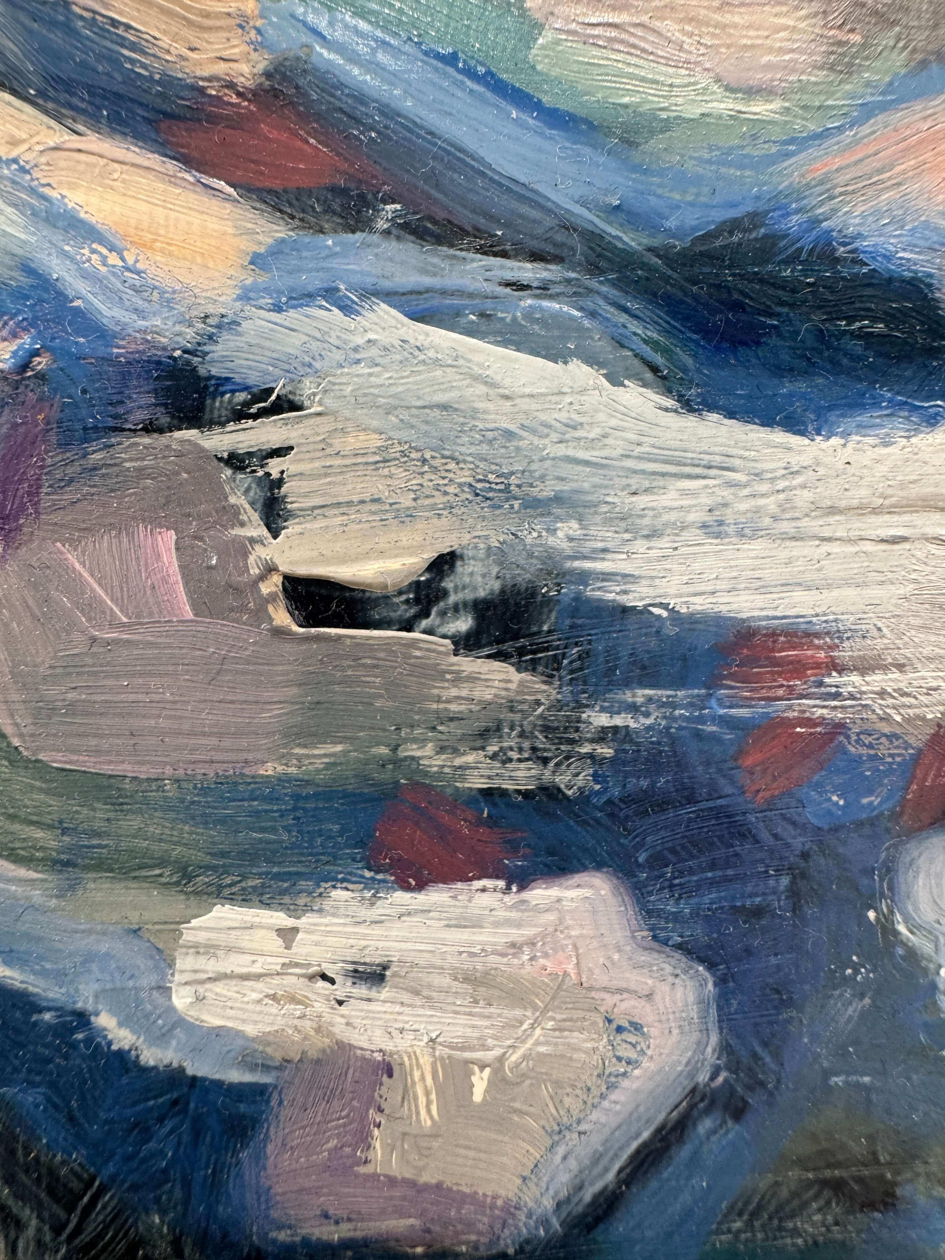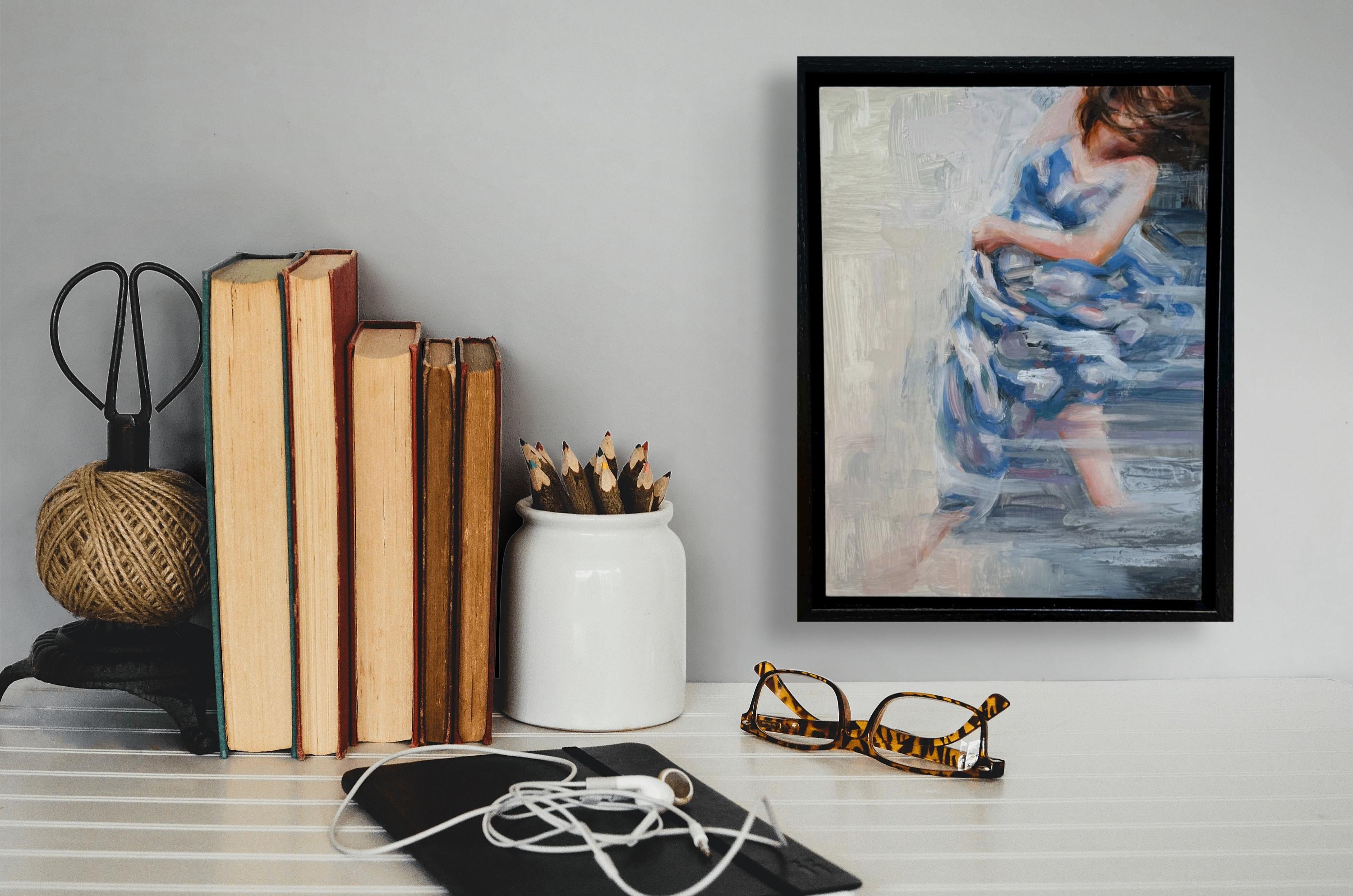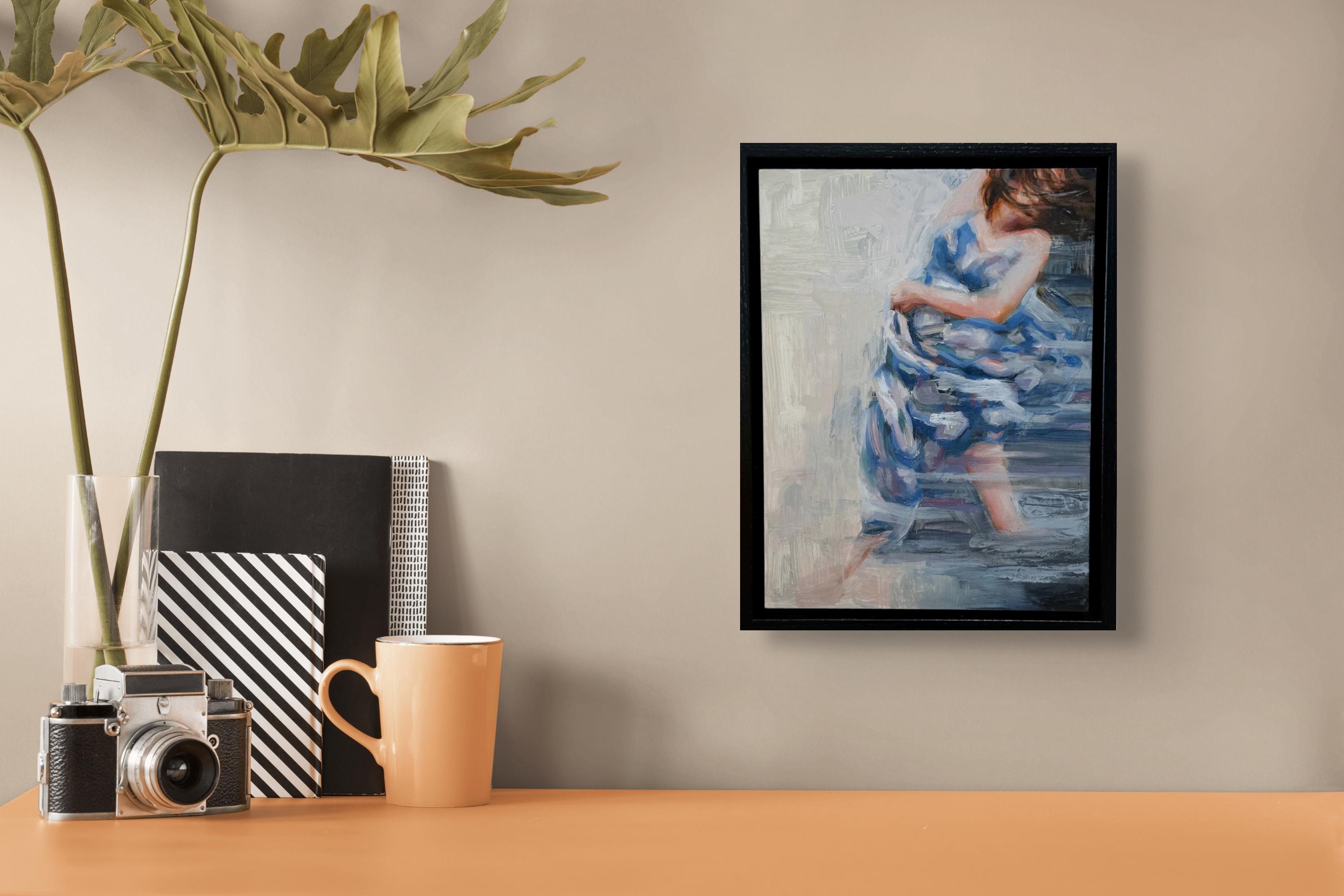 Michelle Jaders "Blur of Becoming" ist ein wunderschönes, originales Ölgemälde auf Karton. Dieses Werk ist gerahmt, 12,50 x 9,50 Zoll groß und kann aufgehängt werden.
