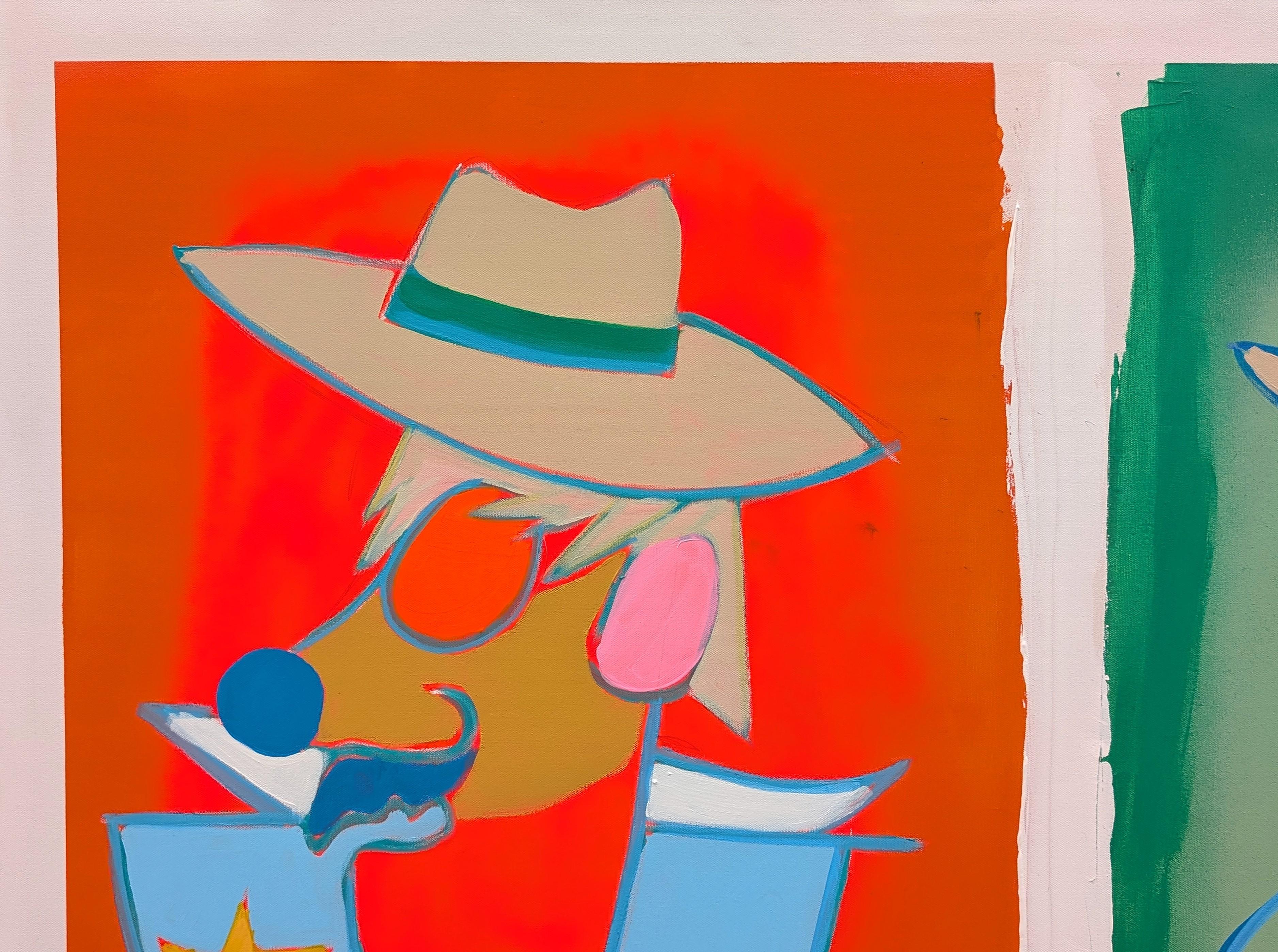 Nick Stevenson"Rodeo Clowns" Zeitgenössische farbenfrohe orange und grüne Western Cowboy Malerei2025
