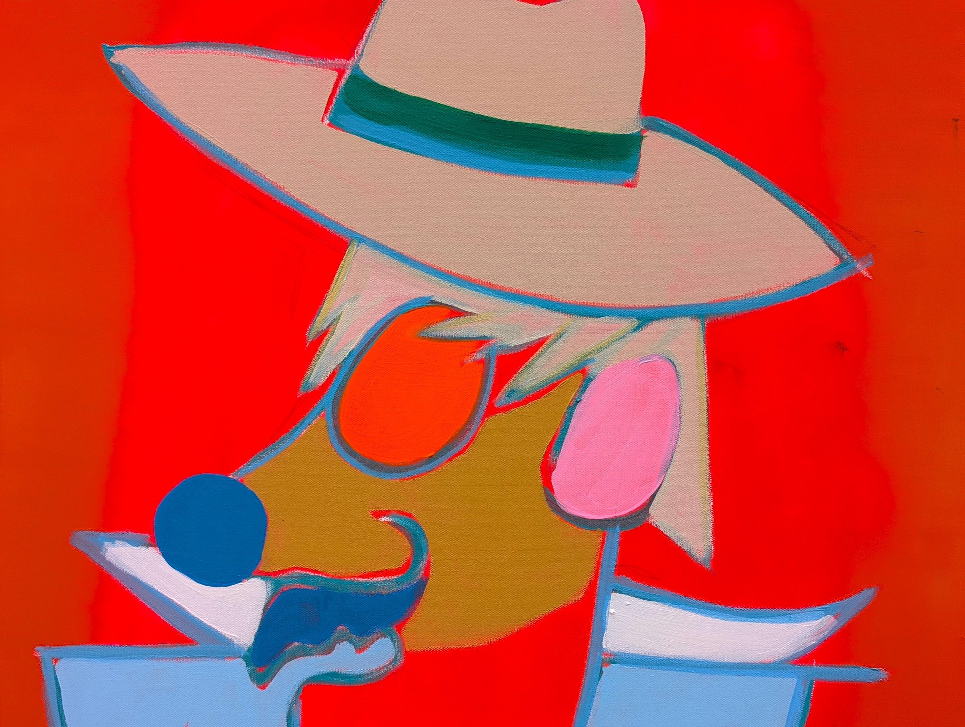 Zeitgenössische, farbenfrohe, westlich inspirierte Cowboy-Malerei des in Texas lebenden Künstlers Nick Stevenson. Das Werk zeigt einen faulenzenden Cowboy mit Hut vor einem leuchtend...