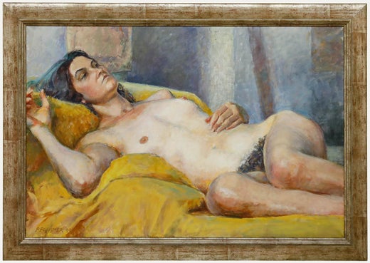 - Zustand:Einige Flecken und leichte Abnutzungserscheinungen auf dem bemalten Holzrahmen. Der Gesamtzustand des Kunstwerks ist sehr gut.