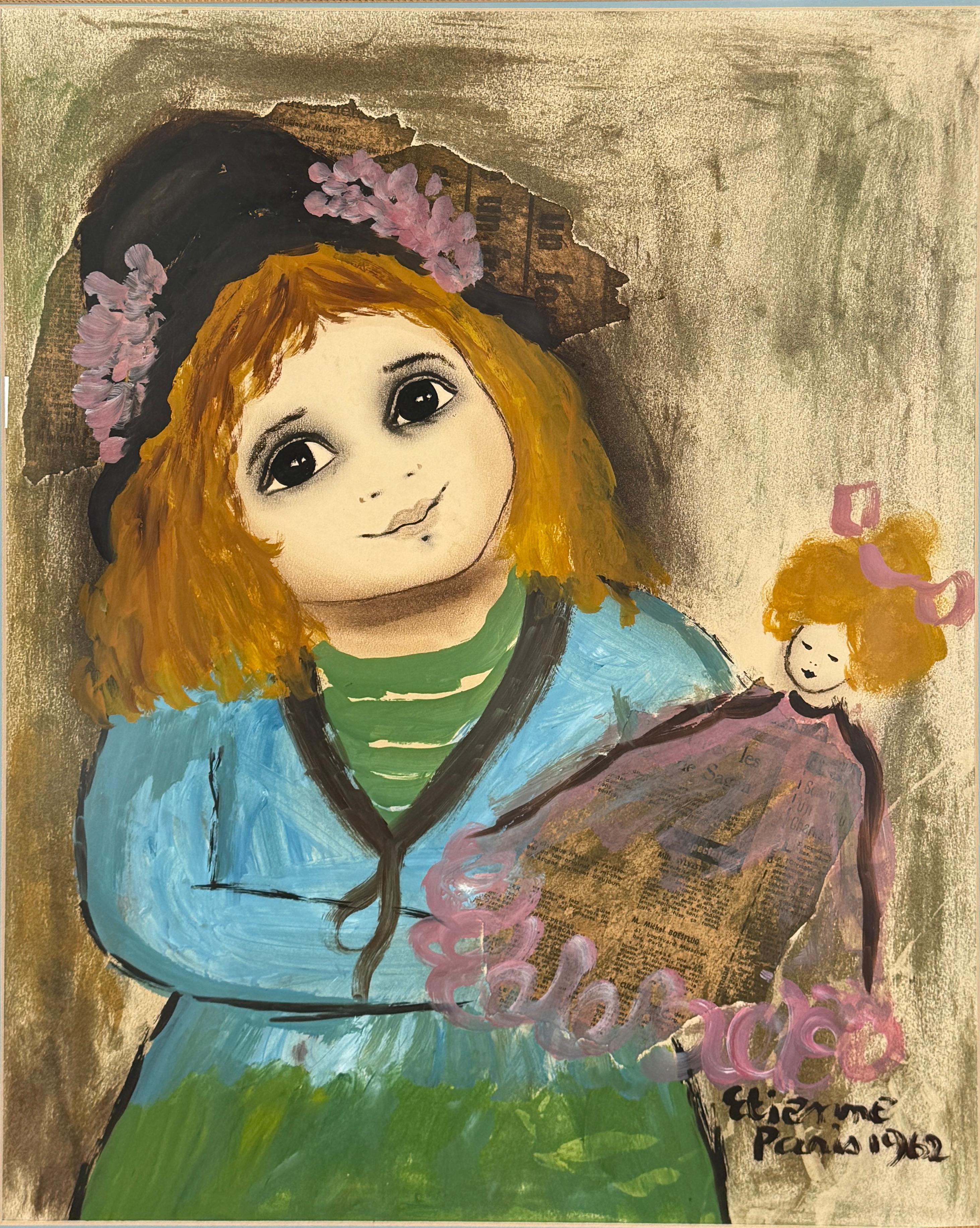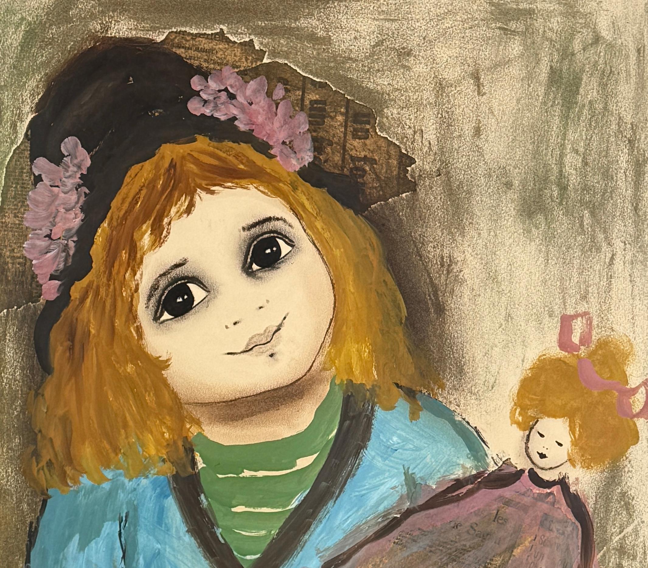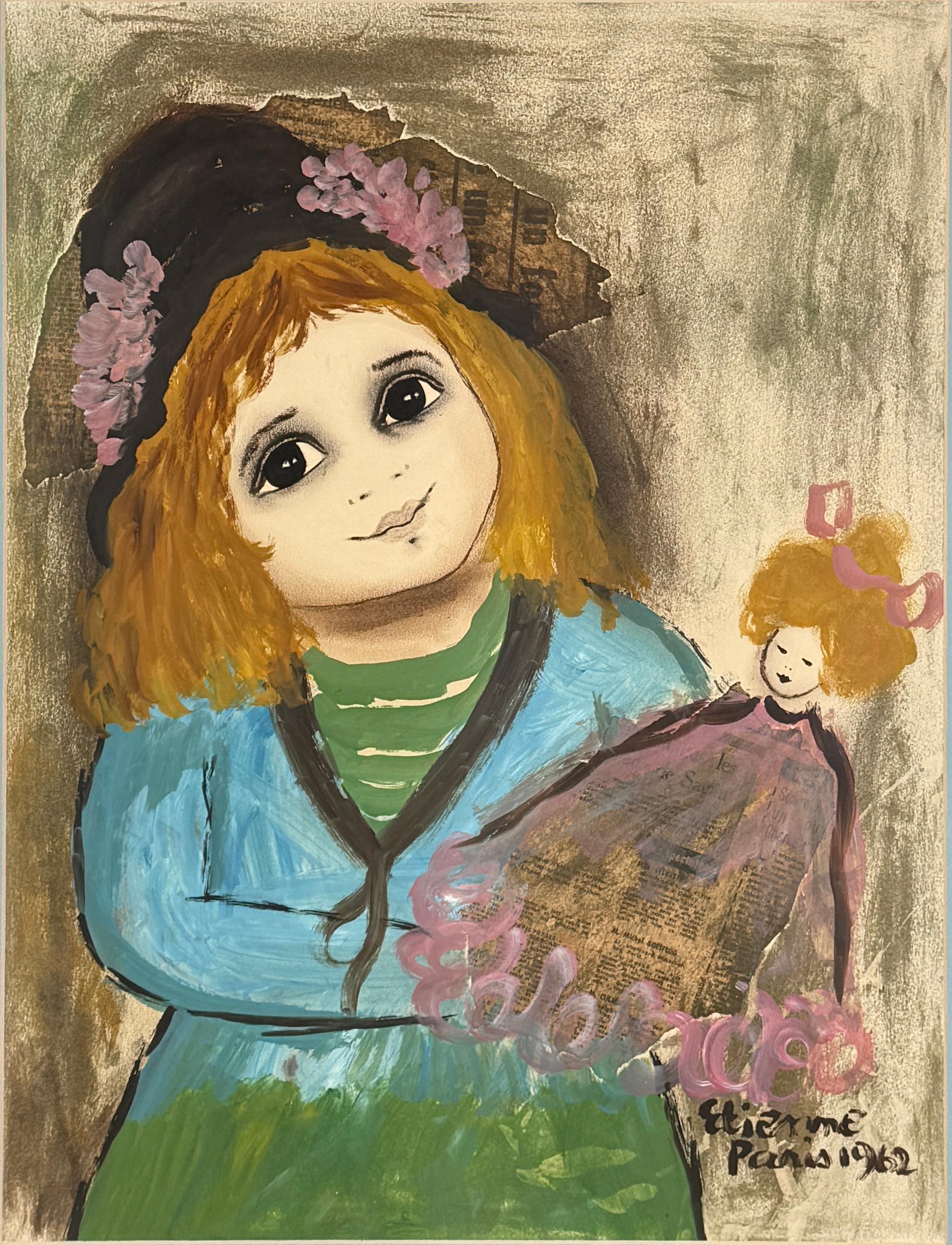 "Petite fille avec sa poupée" Parisian Girl with Her Doll Figurative 1962