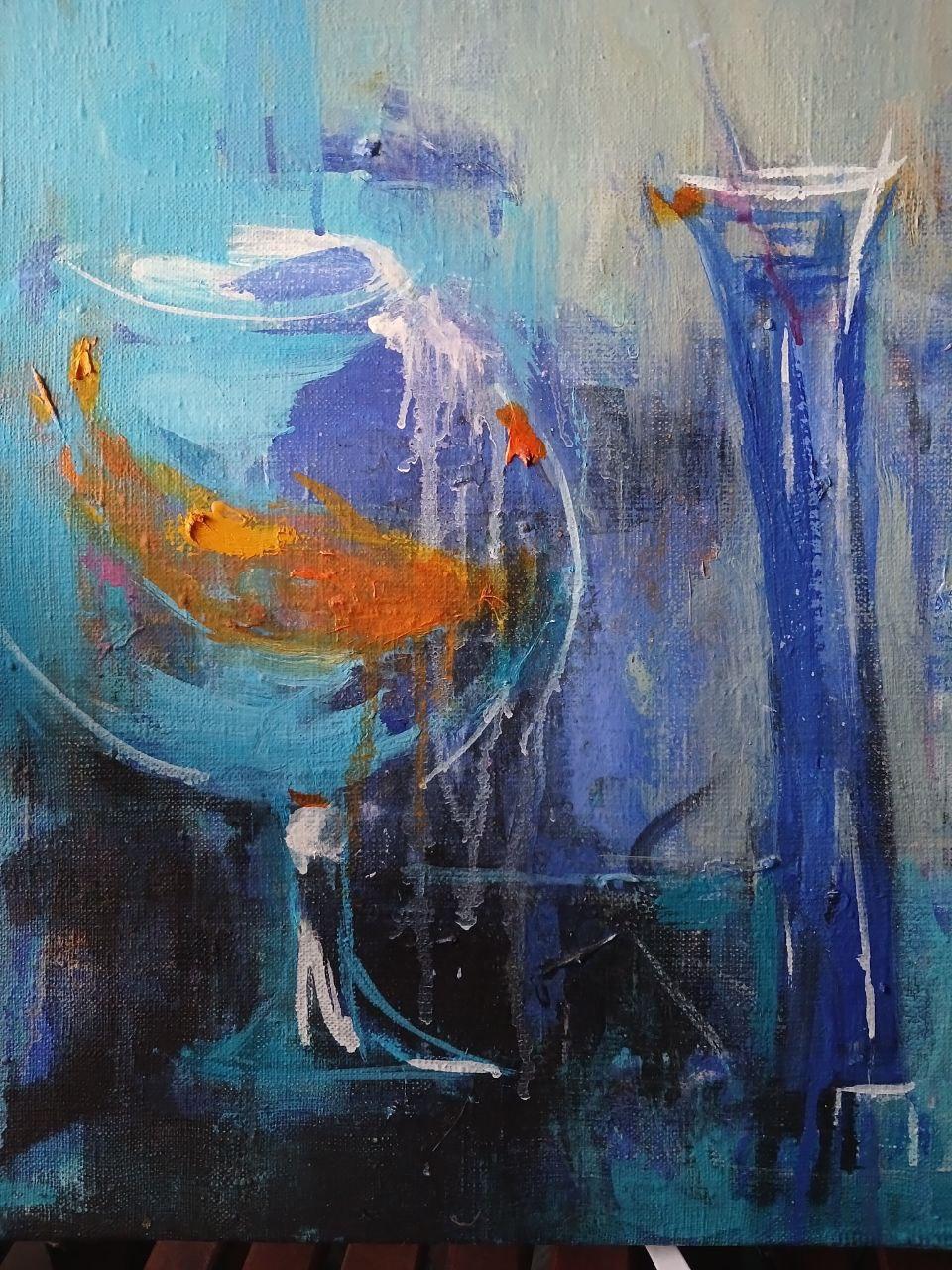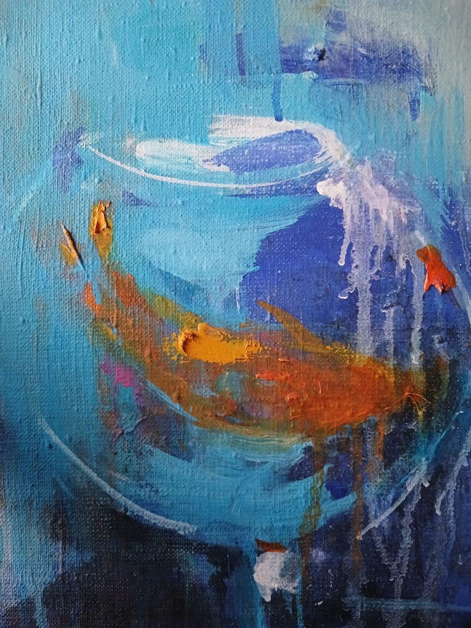 In dieser lebhaften Komposition habe ich Impressionismus und Pop-Art fröhlich miteinander vermischt, indem ich Acryl und Öl verwendet habe, um diese charmanten Katzenfiguren zum Lebe...