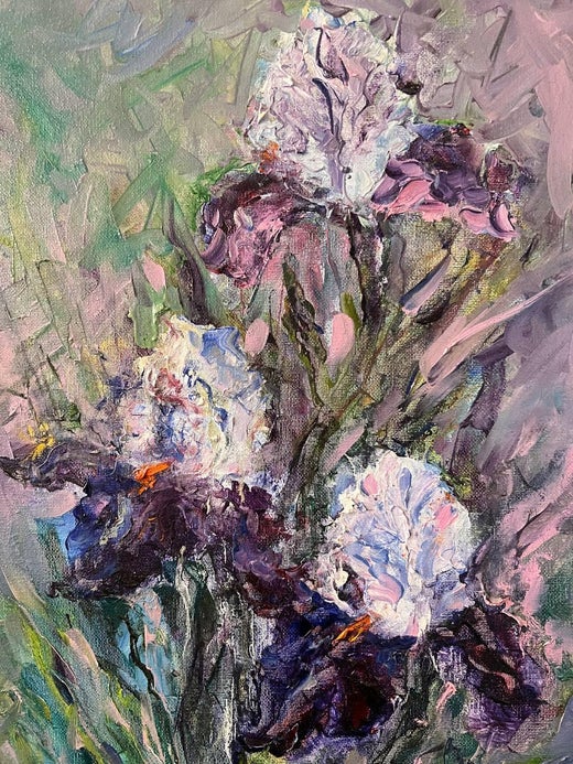 Das Bild ist "Öl für Öl" gemalt, weiche Striche erzeugen eine Art Basrelief von Schwertlilien. Eine angenehme Dynamik erfreut das Auge. Es ist kein Zufall, dass Schwertlilien als Blu...