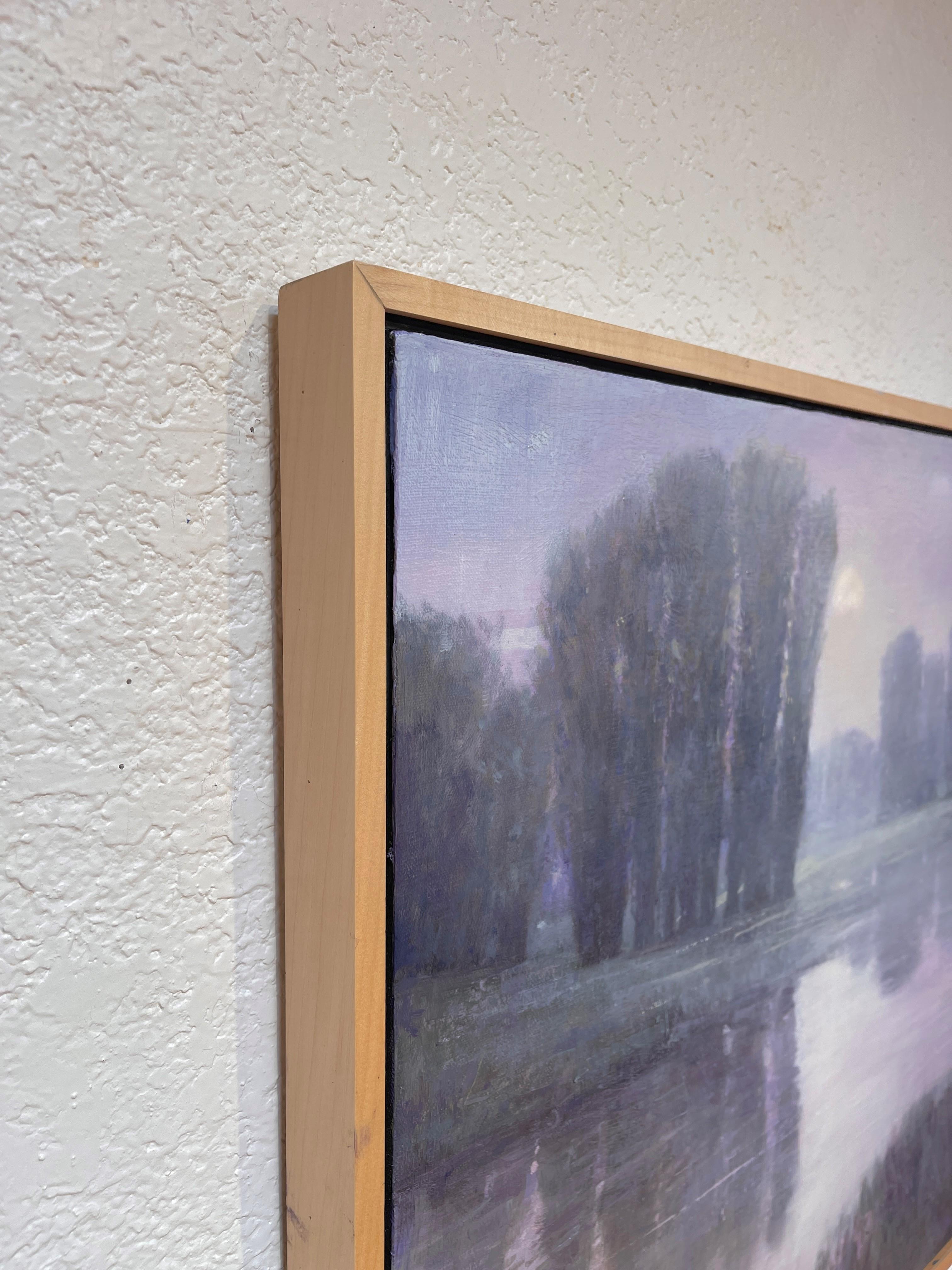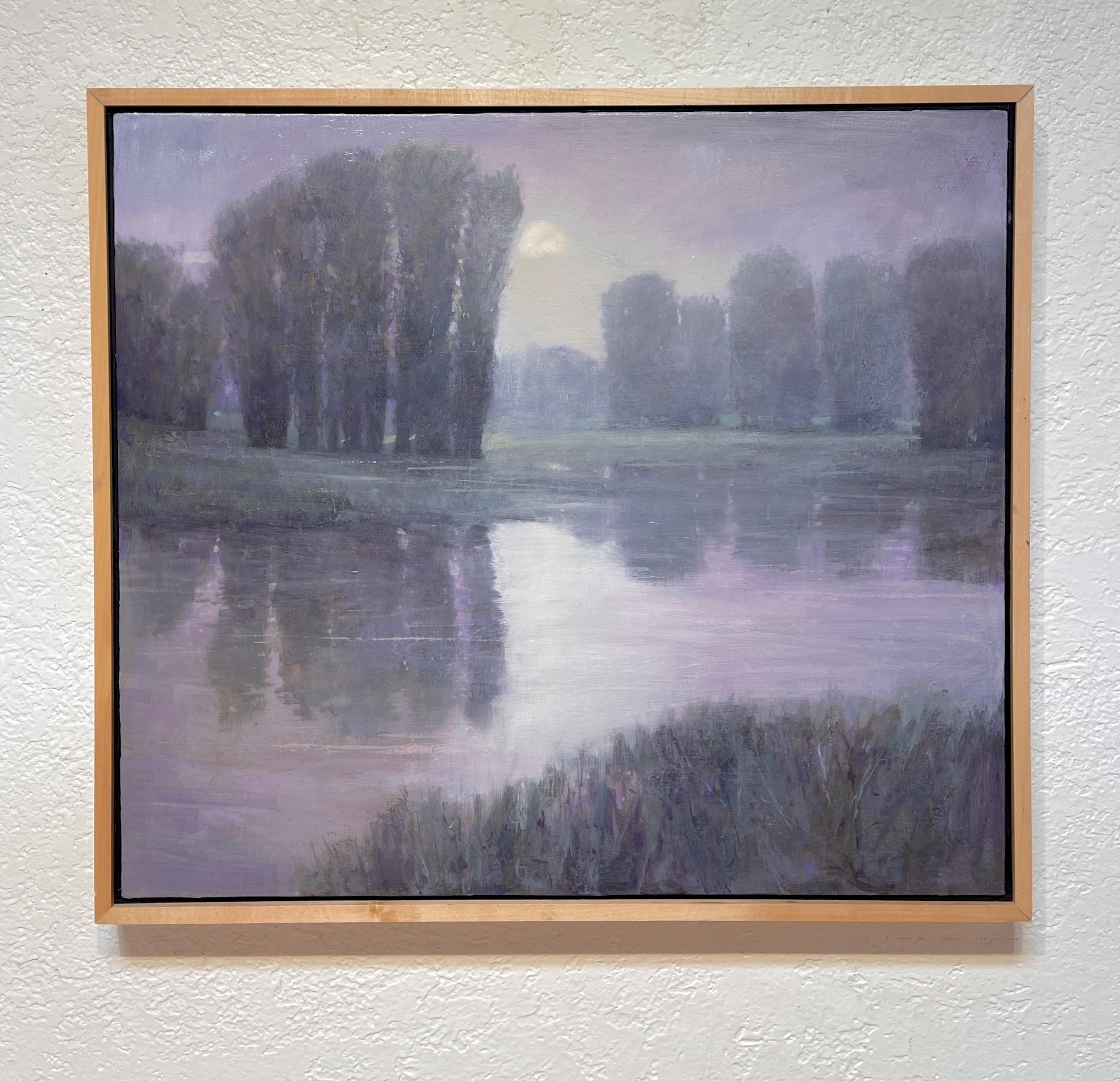 Michael Magrins (USA) "Moonrise Over the South Platte" ist ein originales, handgefertigtes Ölgemälde eines mondbeschienenen Abends entlang eines Colorado-Flusses. Das Bild ist in ei...