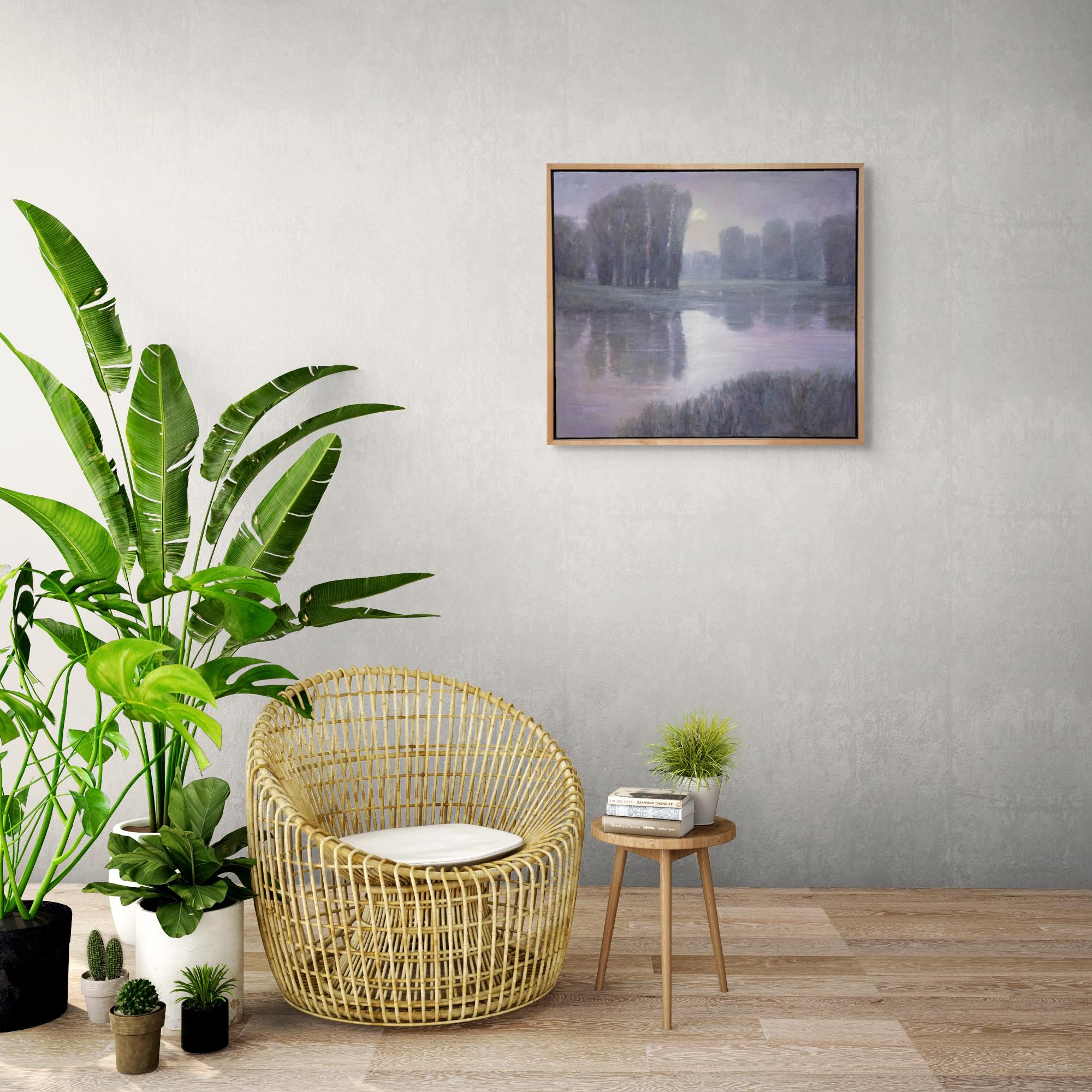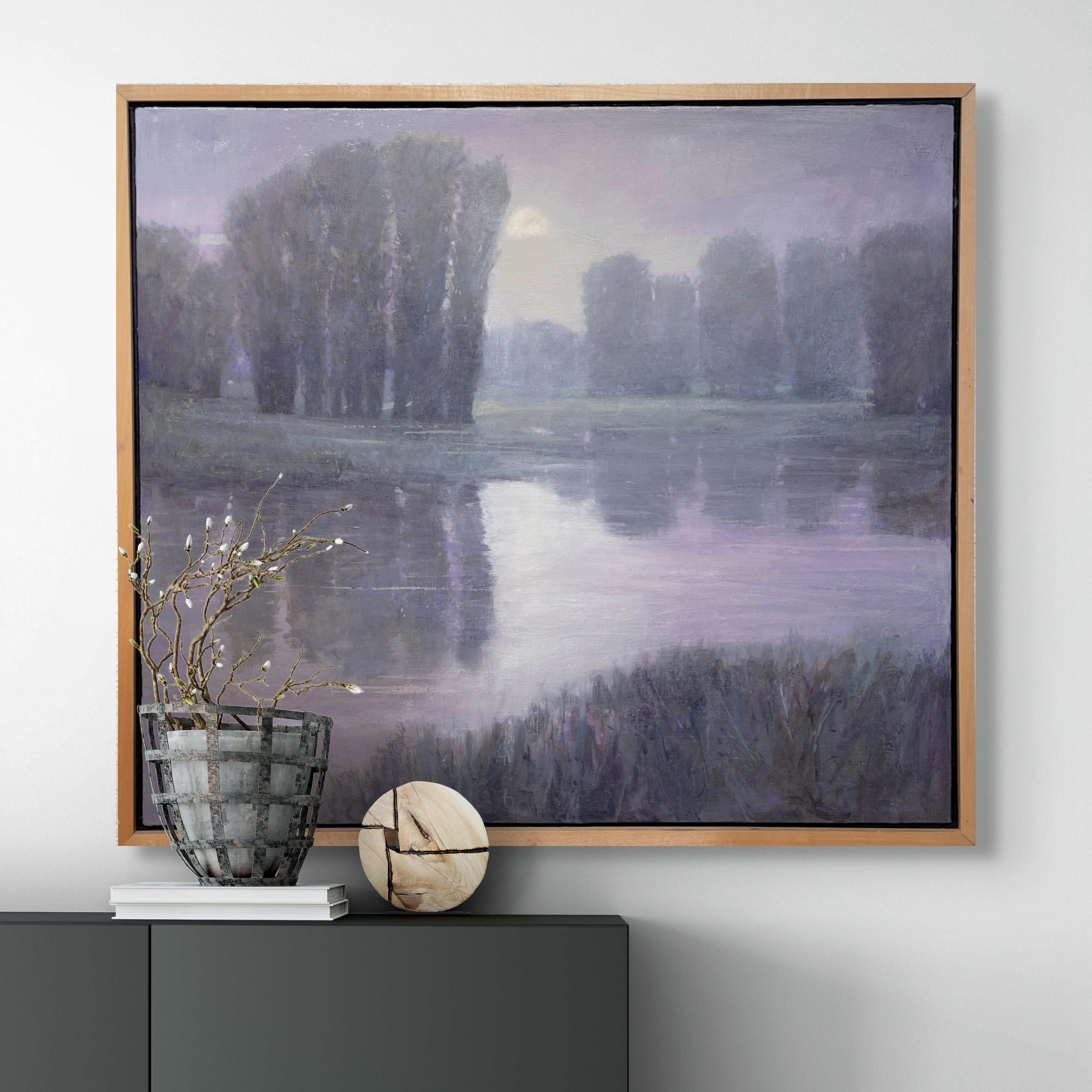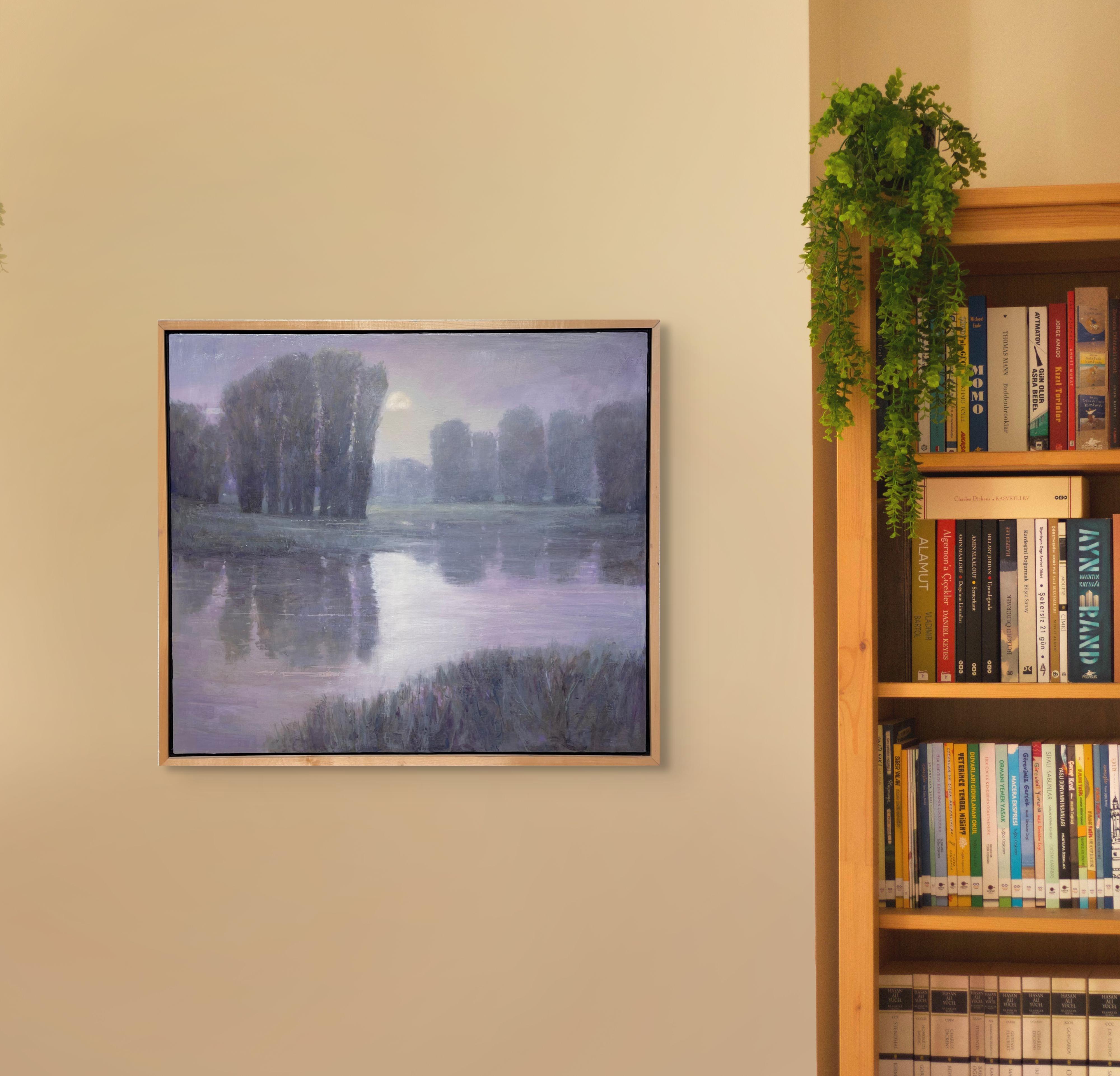 Mondaufgang am Fluss, Gemälde, Öl auf Leinwand