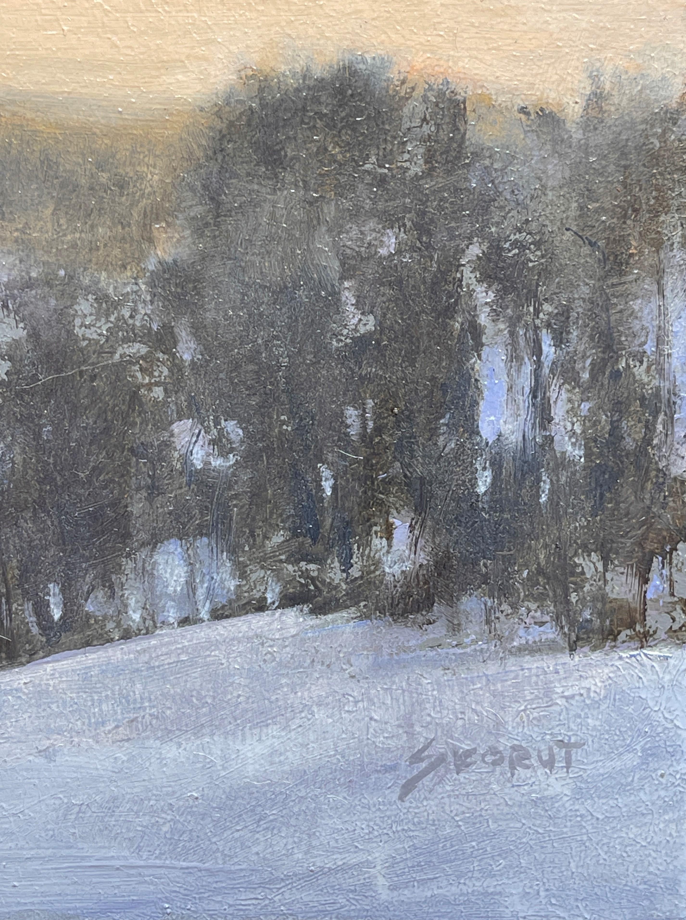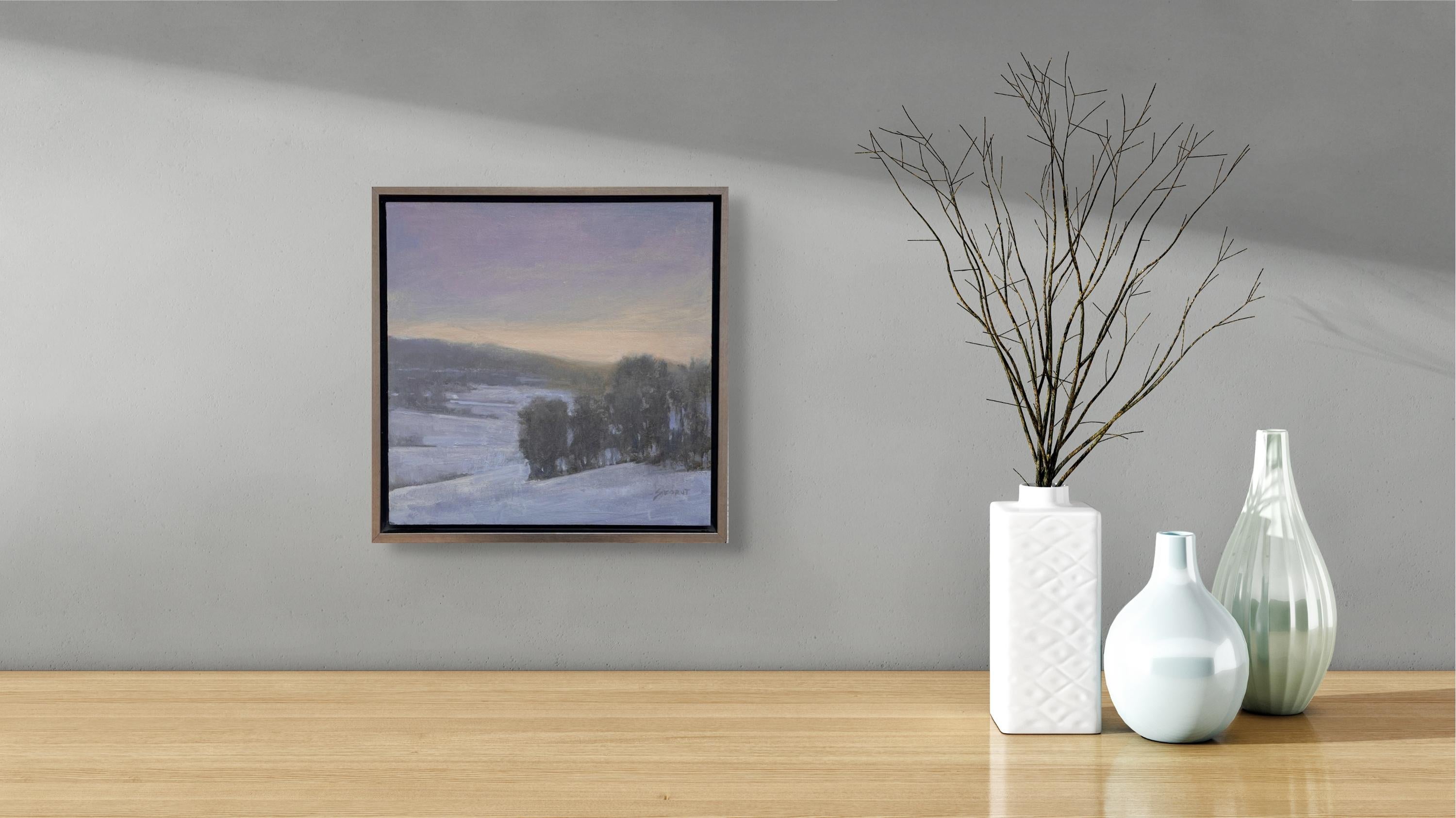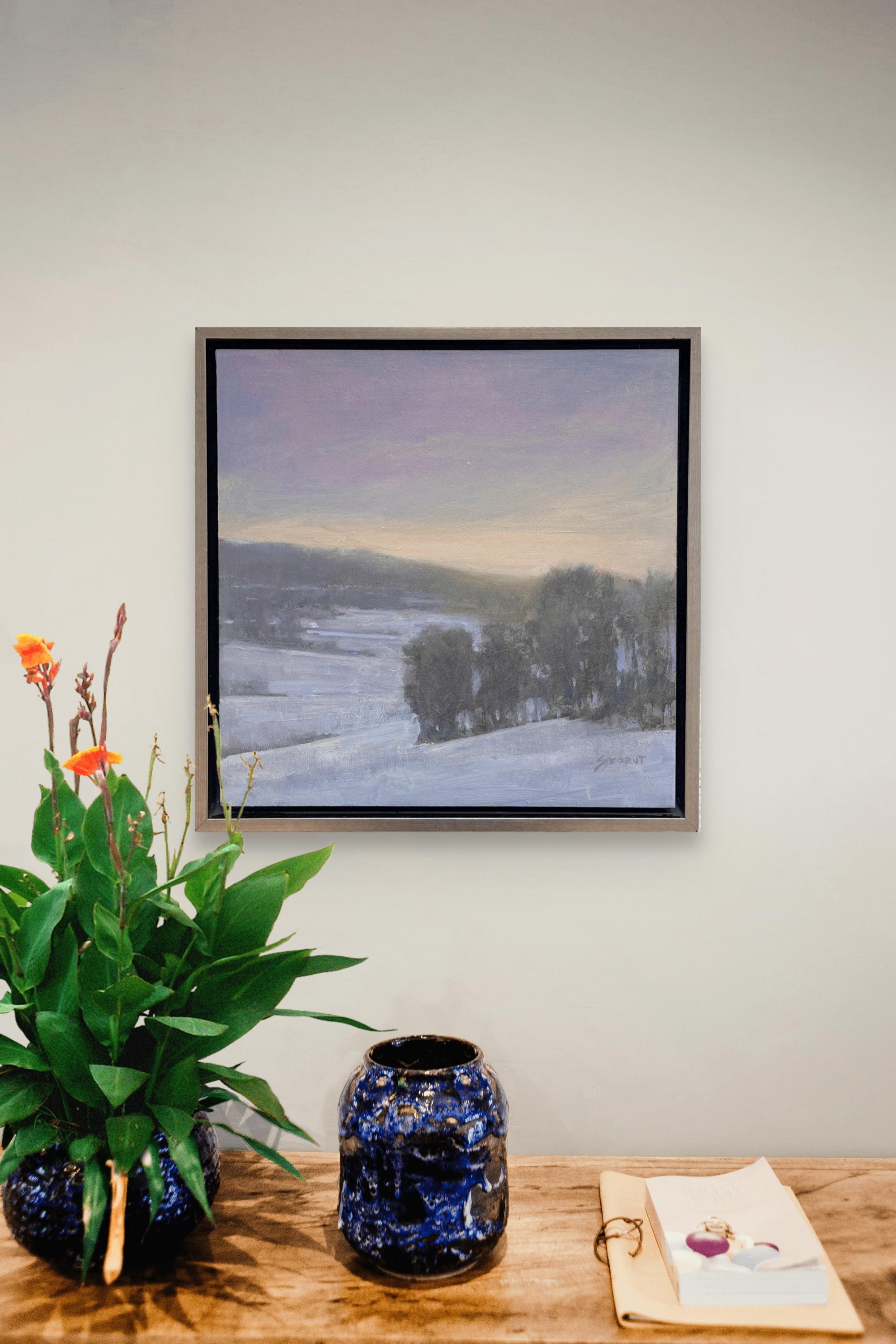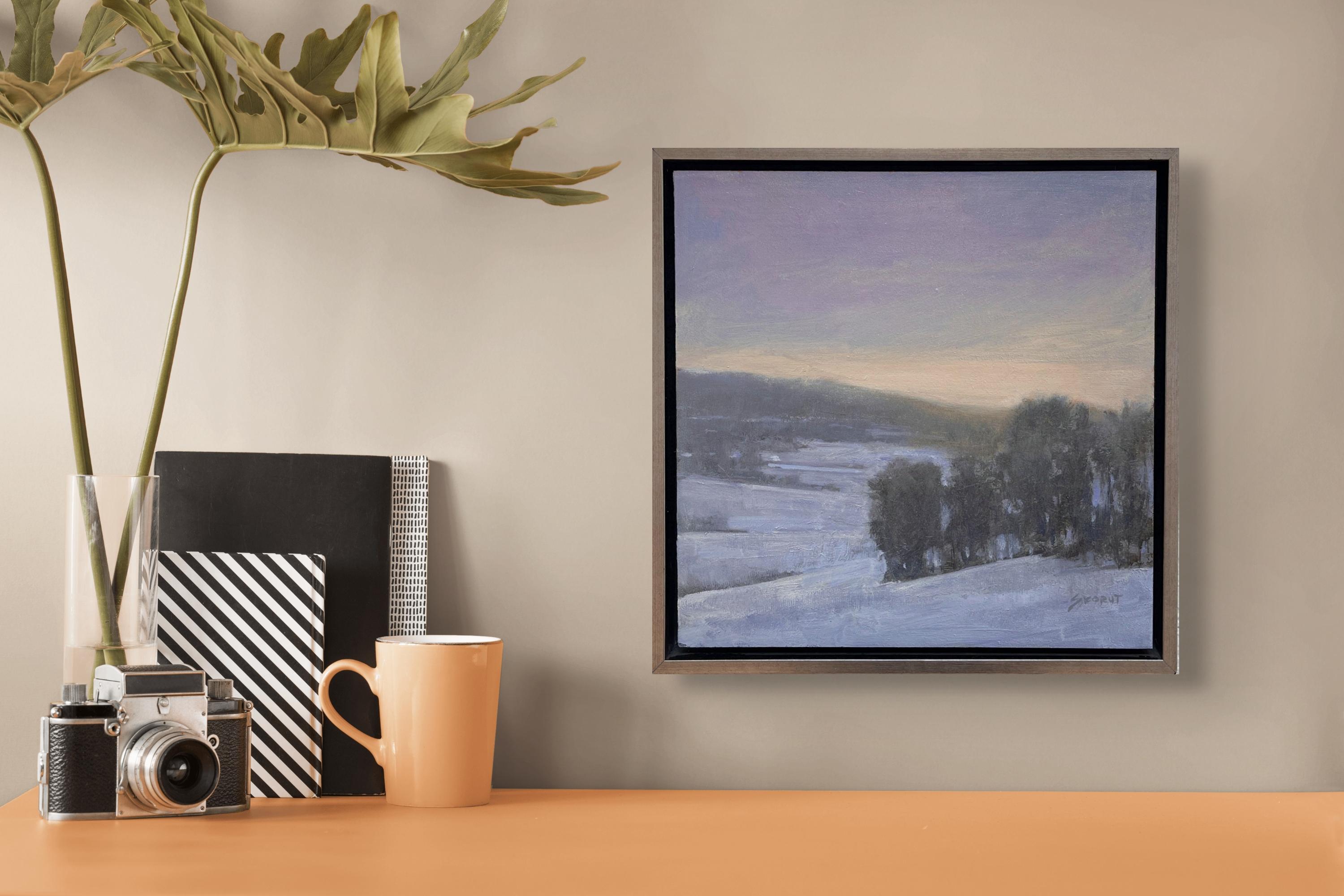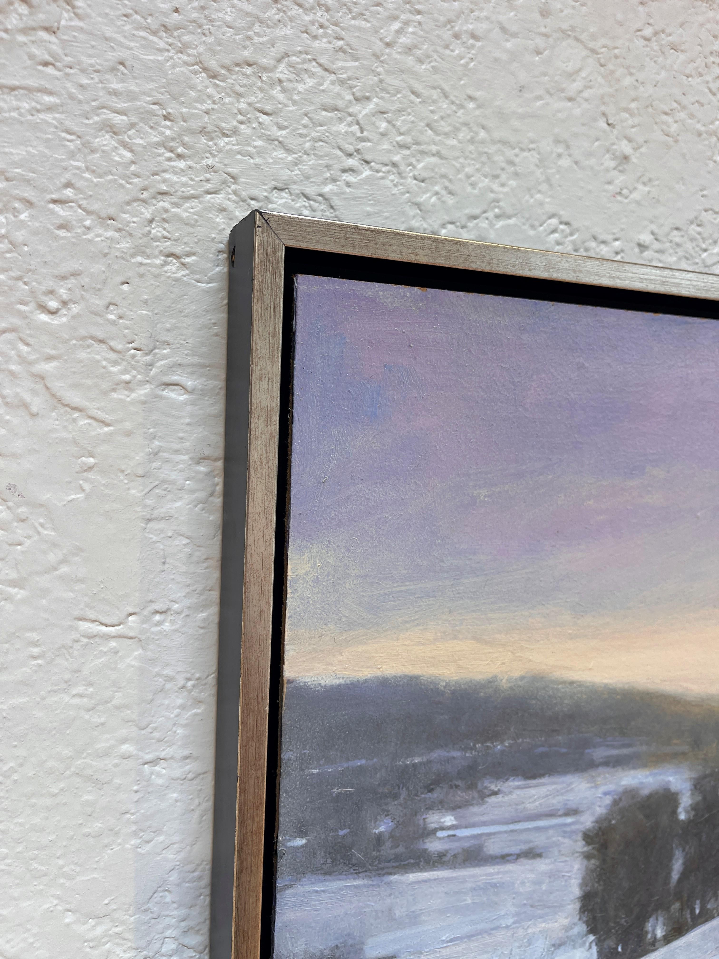"Winter Twilight" (2014) von Michael DeVore ist ein originales handgefertigtes Ölgemälde, das 10,75 x 12,5 Zoll misst, gerahmt ist und aufgehängt werden kann.
