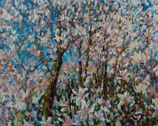 Bei diesem Ölgemälde habe ich mich von der impressionistischen Technik leiten lassen, um die lebendige und doch beruhigende Atmosphäre eines idyllischen Sees einzufangen. Die leuchtenden Grüntöne der Bäume und das sanfte Schimmern des Wassers spiegeln die Schönheit und Stille der Natur wider. Mein Ziel war es, ein Werk zu schaffen, das den Betrachter emotional anspricht und ihn dazu einlädt, in einem Moment des Friedens und der natürlichen Schönheit zu verweilen", so Anna über dieses Landschaftsgemälde.