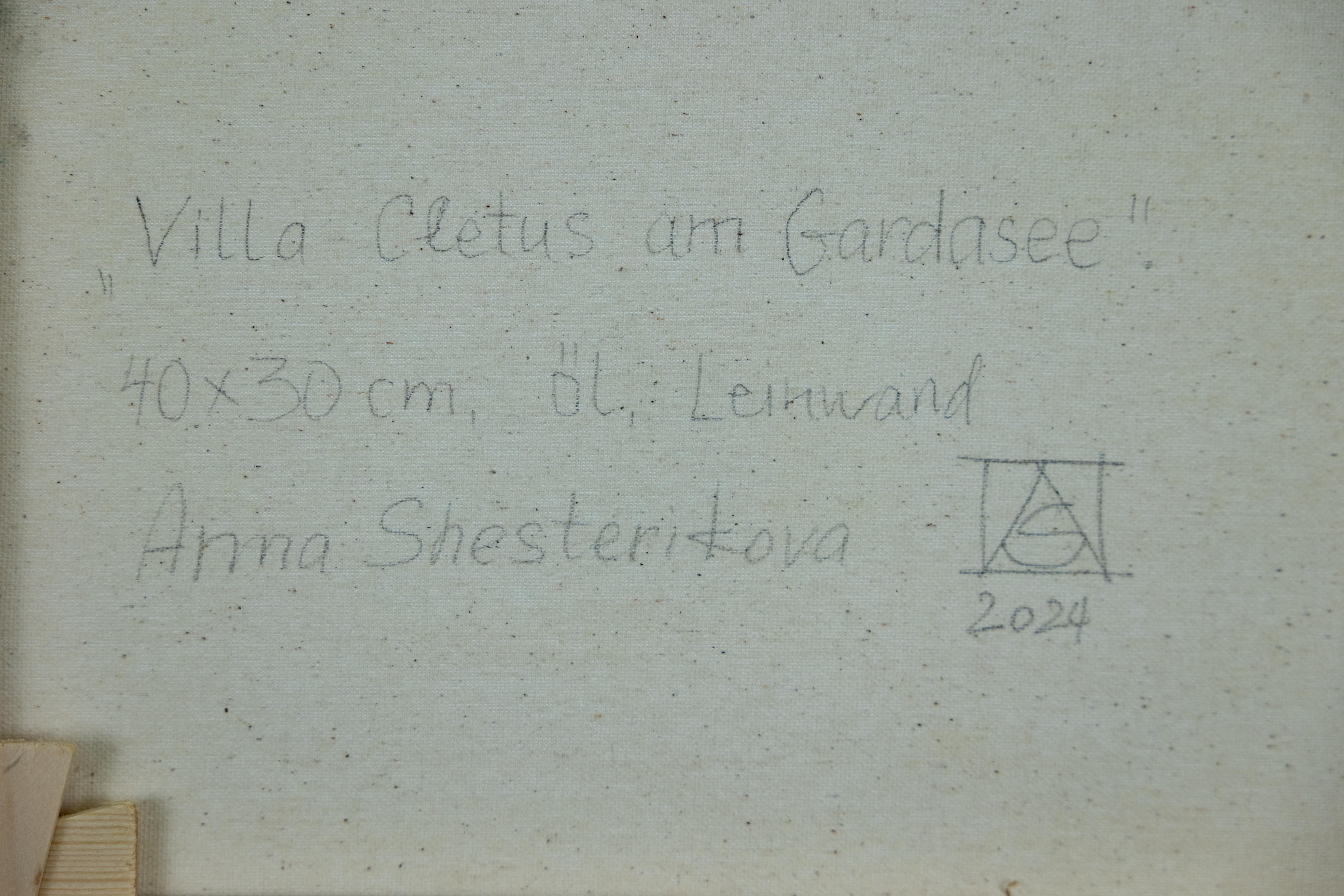"Dieses Bild wurde en plein air am Gardasee gemalt", sagt Anna über dieses Kunstwerk. "Wir haben von der Villa Cletus aus gemalt, die sich am Hang des Hügels befindet. Von dort aus h...