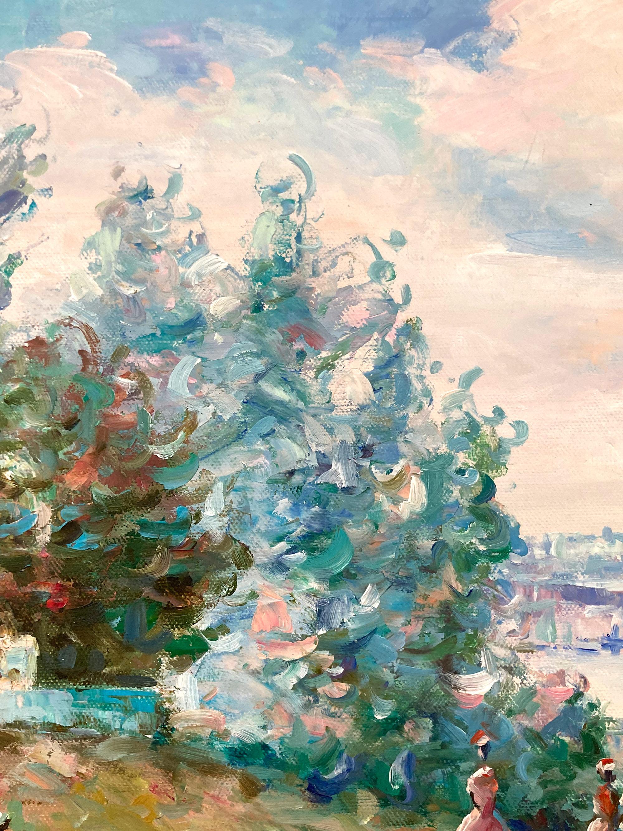 Impressionistisches Ölgemälde auf Leinwand „Riverside Park“ aus dem Nachkriegszeitalter mit Figuren