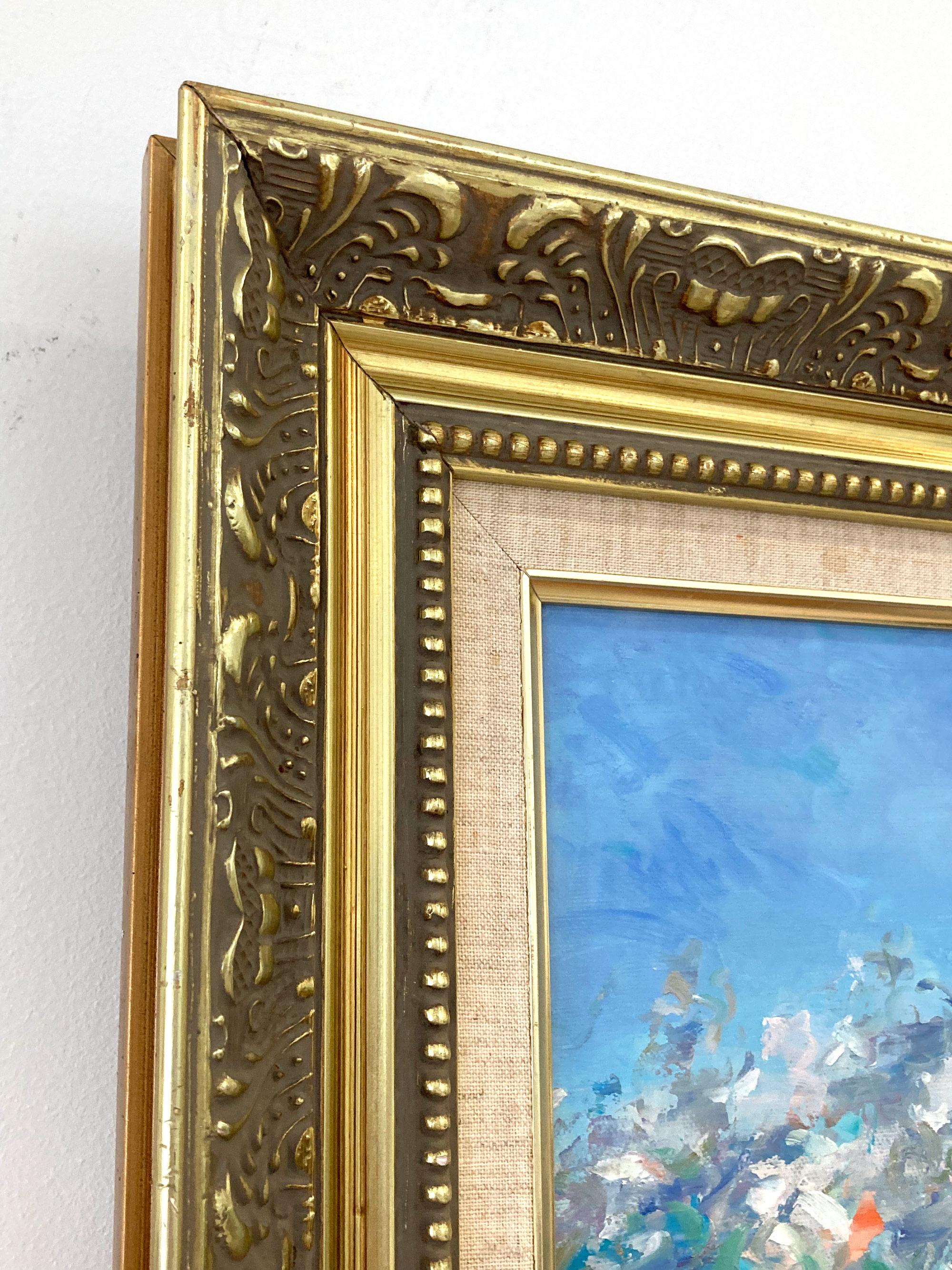"Der französische Künstler" Bunte impressionistische Landschaft Ölgemälde Gerahmt