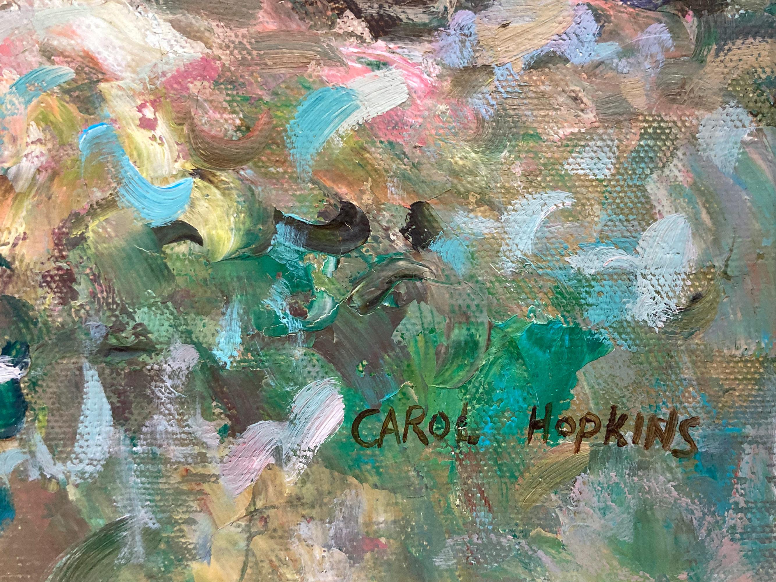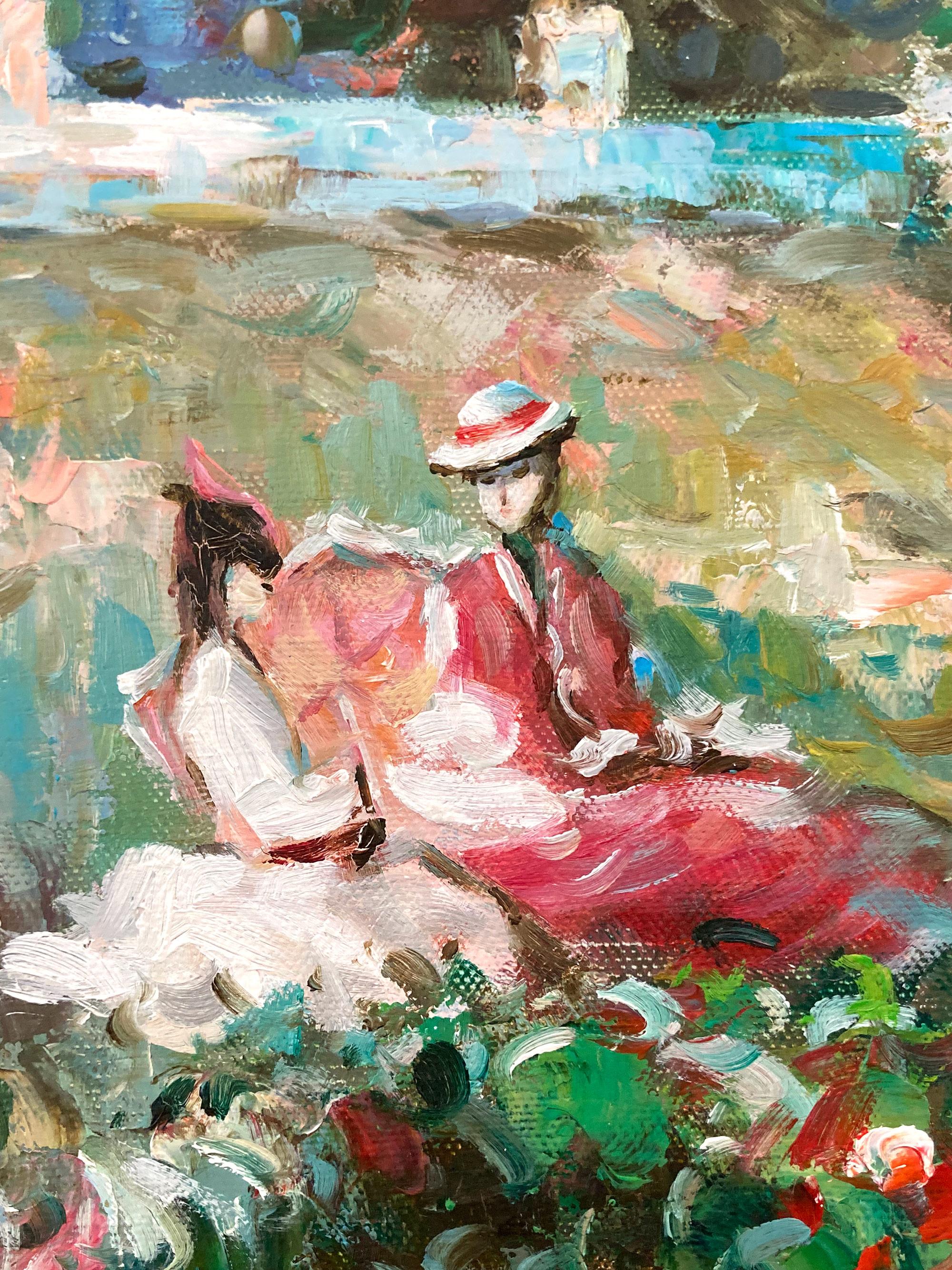 Carol Hopkins"Lakeside Picnic Scene with Figures" Impressionist Oil Painting on Canvas Framed20th Century