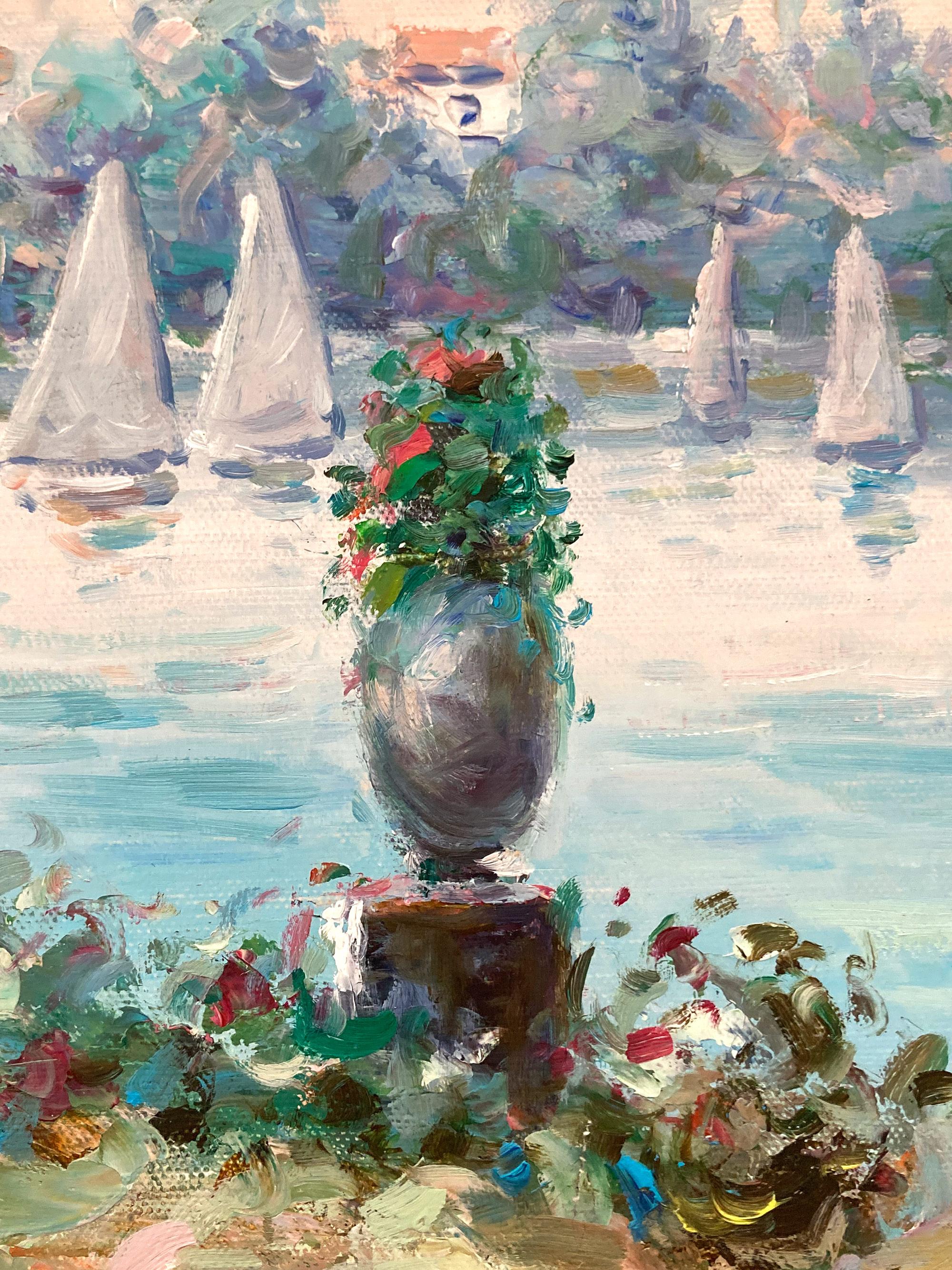 Postimpressionistisches Pariser Landschaftsgemälde „Frühjahr am See“, Ölgemälde