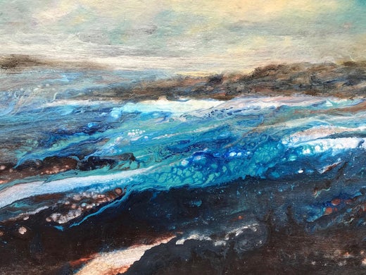 Ich liebe es, Bilder zu malen, die von der atemberaubenden Landschaft von Oxfordshire, wo ich lebe, und von Meereslandschaften auf meinen Reisen inspiriert sind. Diese werden in der Regel durch meine lebhafte Fantasie verstärkt. Nach dem A-Level setzte ich mein Kunststudium in Banbury in Oxfordshire fort und machte schließlich einen Abschluss am Surrey Institute of Art and Design in Farnham, insgesamt sechs Jahre Kunstausbildung und viele, viele weitere Jahre des Experimentierens. Ich genieße den experimentellen Ansatz, verschiedene Medien wie Tusche, Acryl, Öl und Aquarell auszuprobieren. Das Auftragen der Farbe ist für mich eine aufregende Erfahrung, bei der ich interessante Spuren wie Spritzer, Tropfen, Abdeckungen, trockene Pinselstriche und Spachtel-Effekte erzeuge. Ich arbeite spontan und genieße die Aufregung über die Unvorhersehbarkeit der Medien, die ich kombiniere. Tatsächlich sind 'glückliche Zufälle' ein wesentlicher Bestandteil meiner Praxis und führen dazu, dass jedes Stück seine eigene Individualität hat.