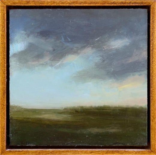 Out Towards the River - Originalgemälde mit ausgedehtem Himmel und subtiler Landschaft