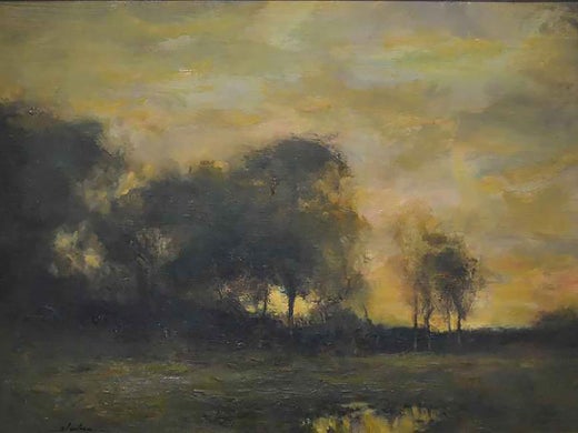 Dennis Sheehan, „Evening Prelude“, Moody Sunset, Tonalistische Landschaft, Ölgemälde