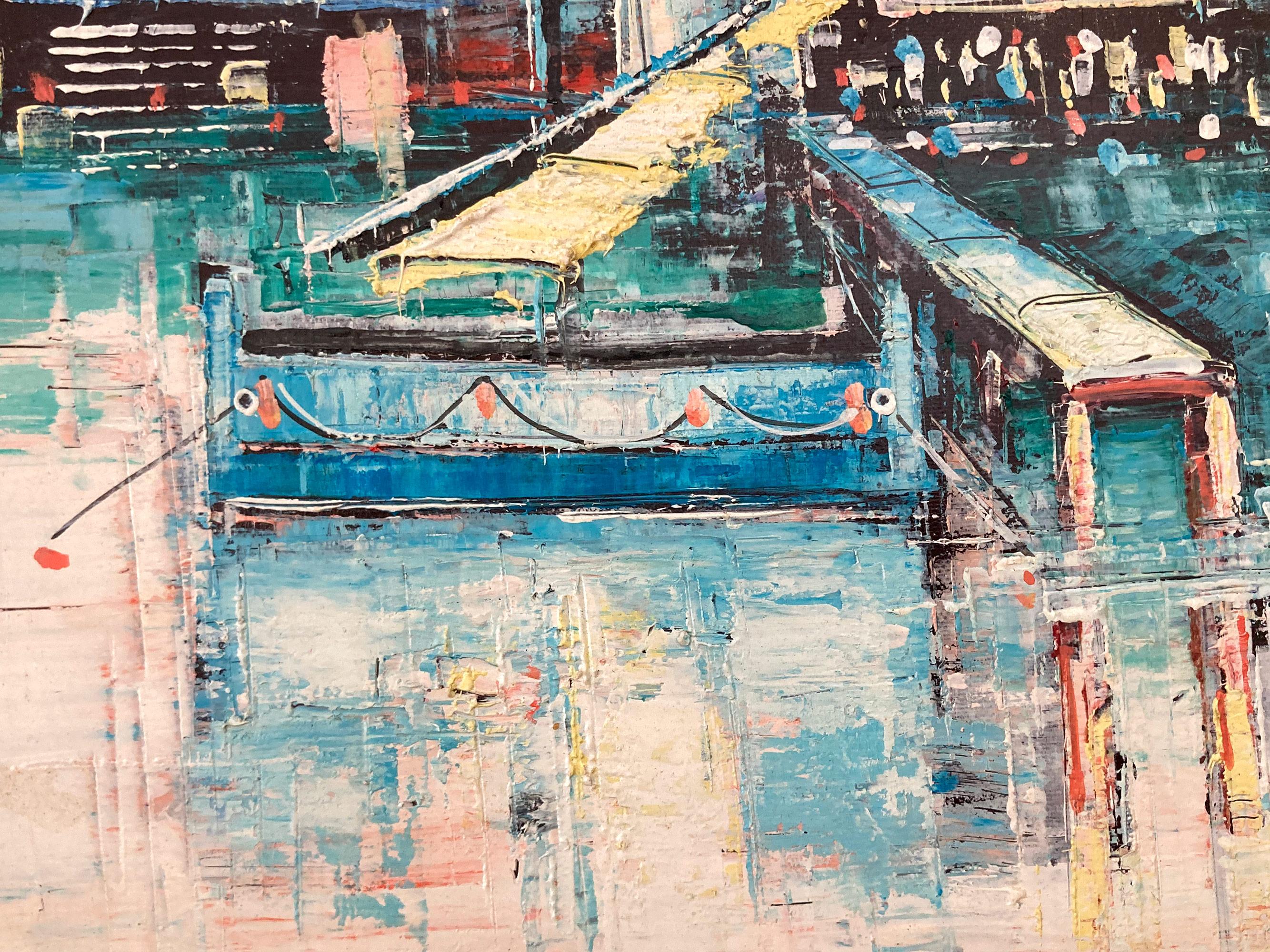 Impressionistisches Ölgemälde auf Leinwand „Au Croisic“, Pariser Hafenszene