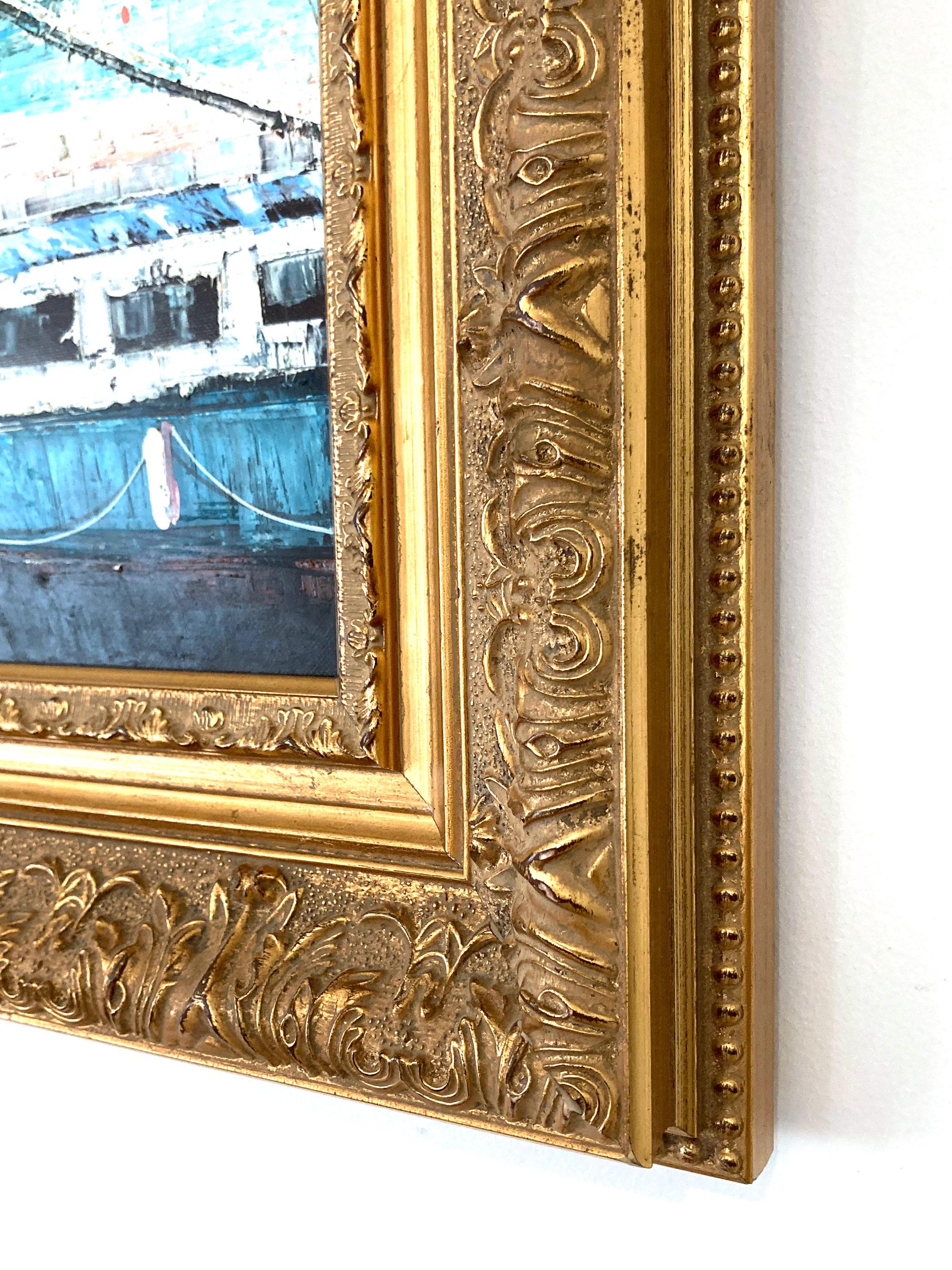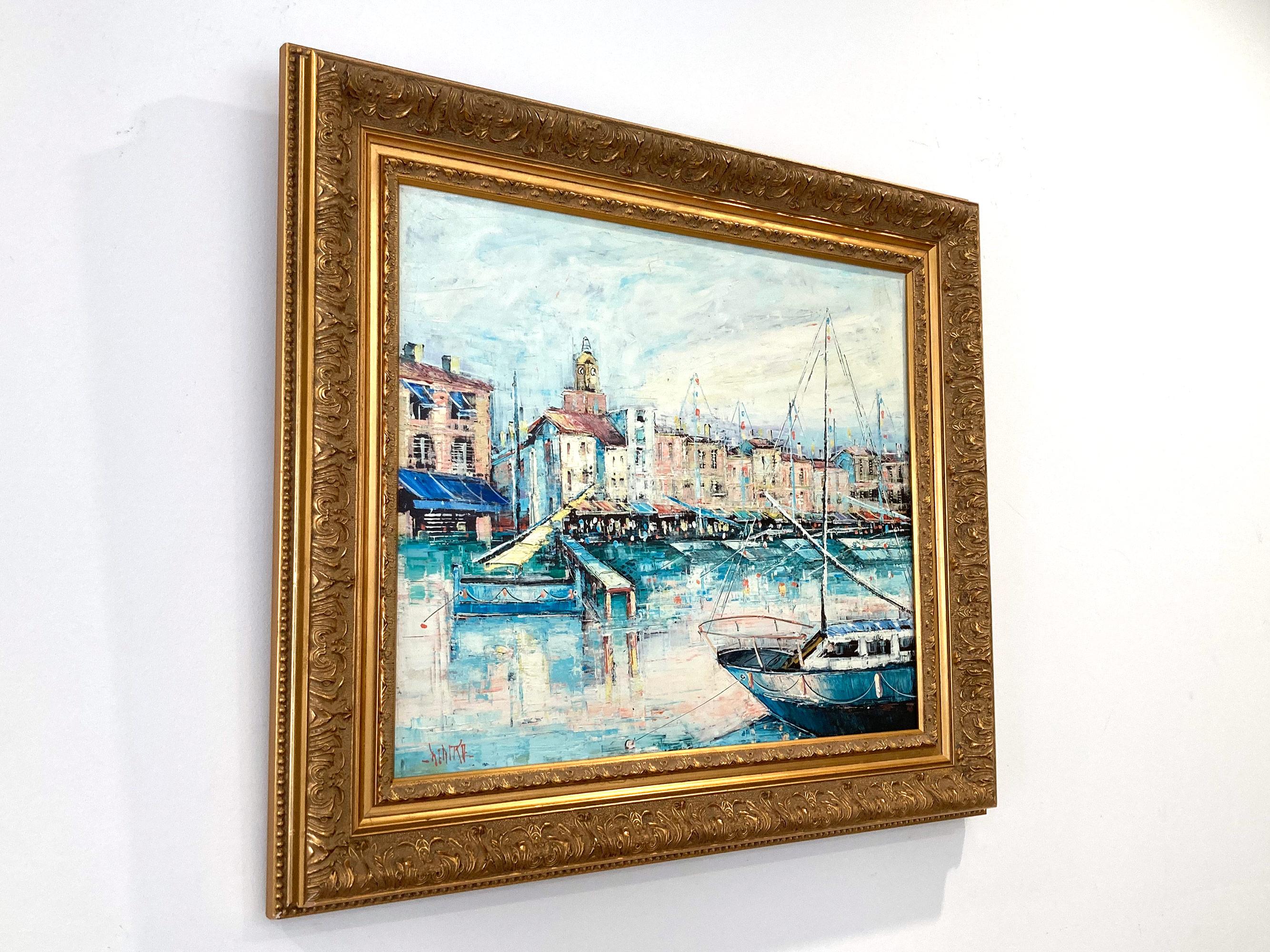 Impressionistisches Ölgemälde auf Leinwand, „St. Tropez“, Pariser Marine- Hafenszene, Impressionistisches Gemälde
