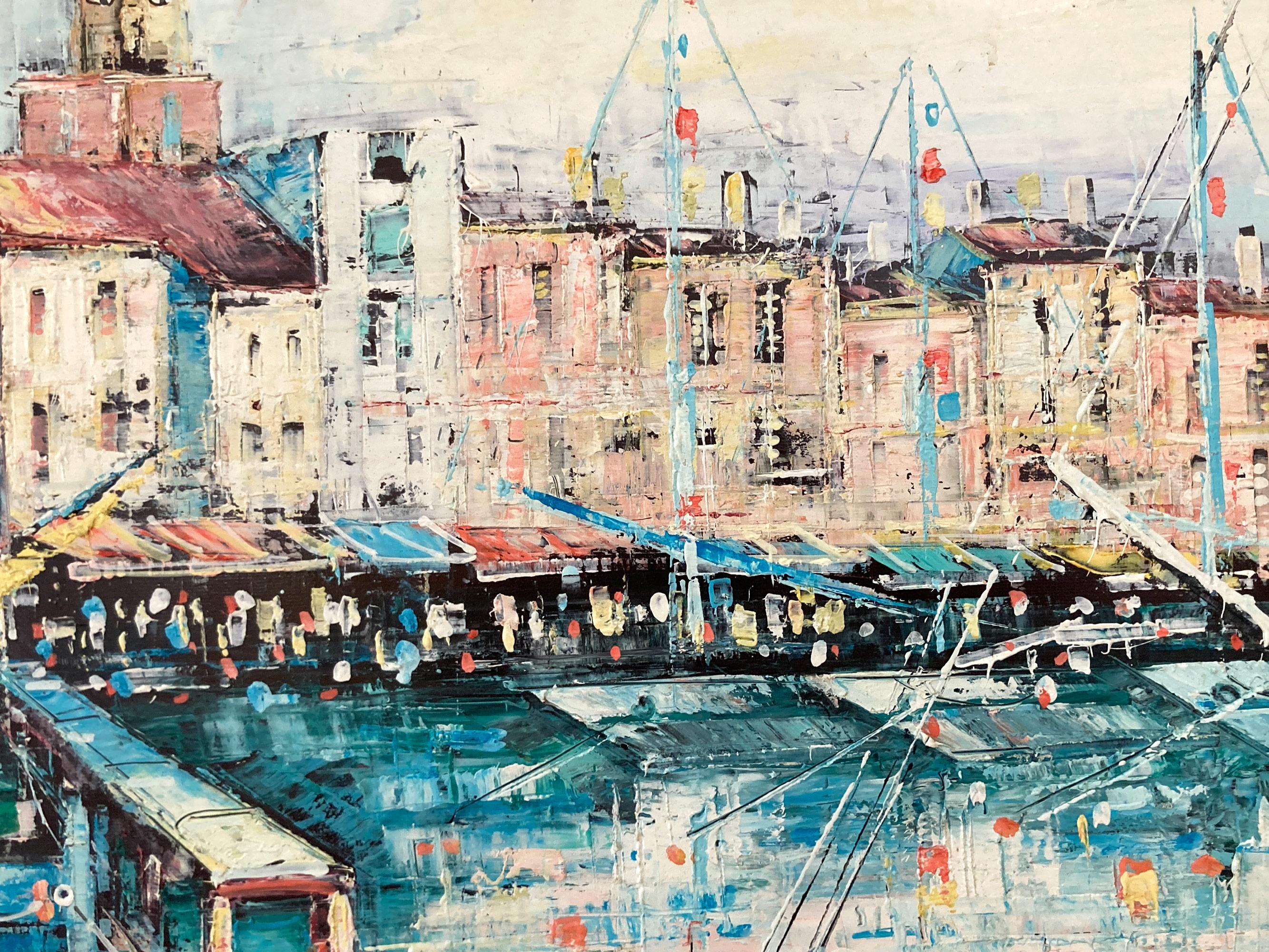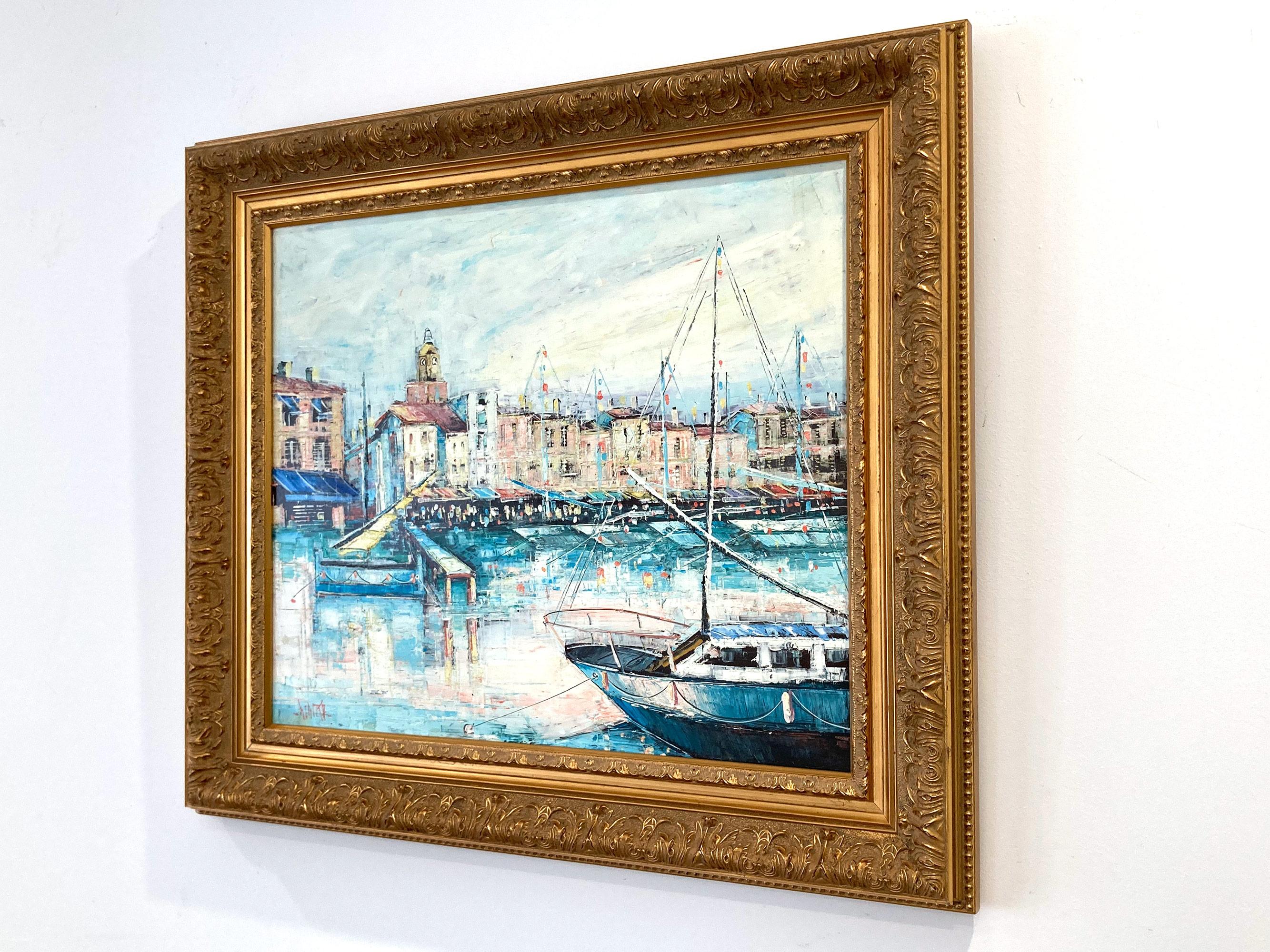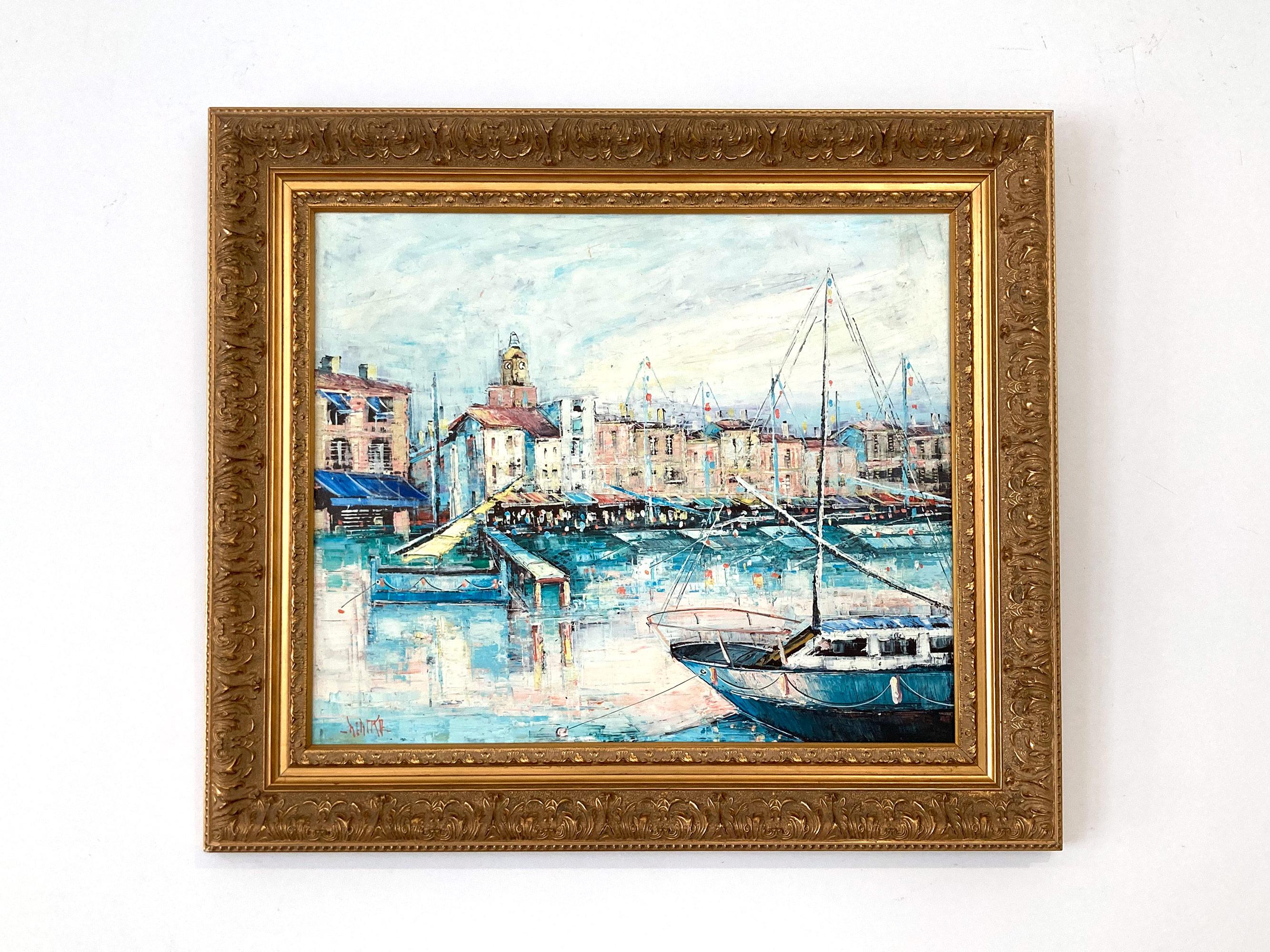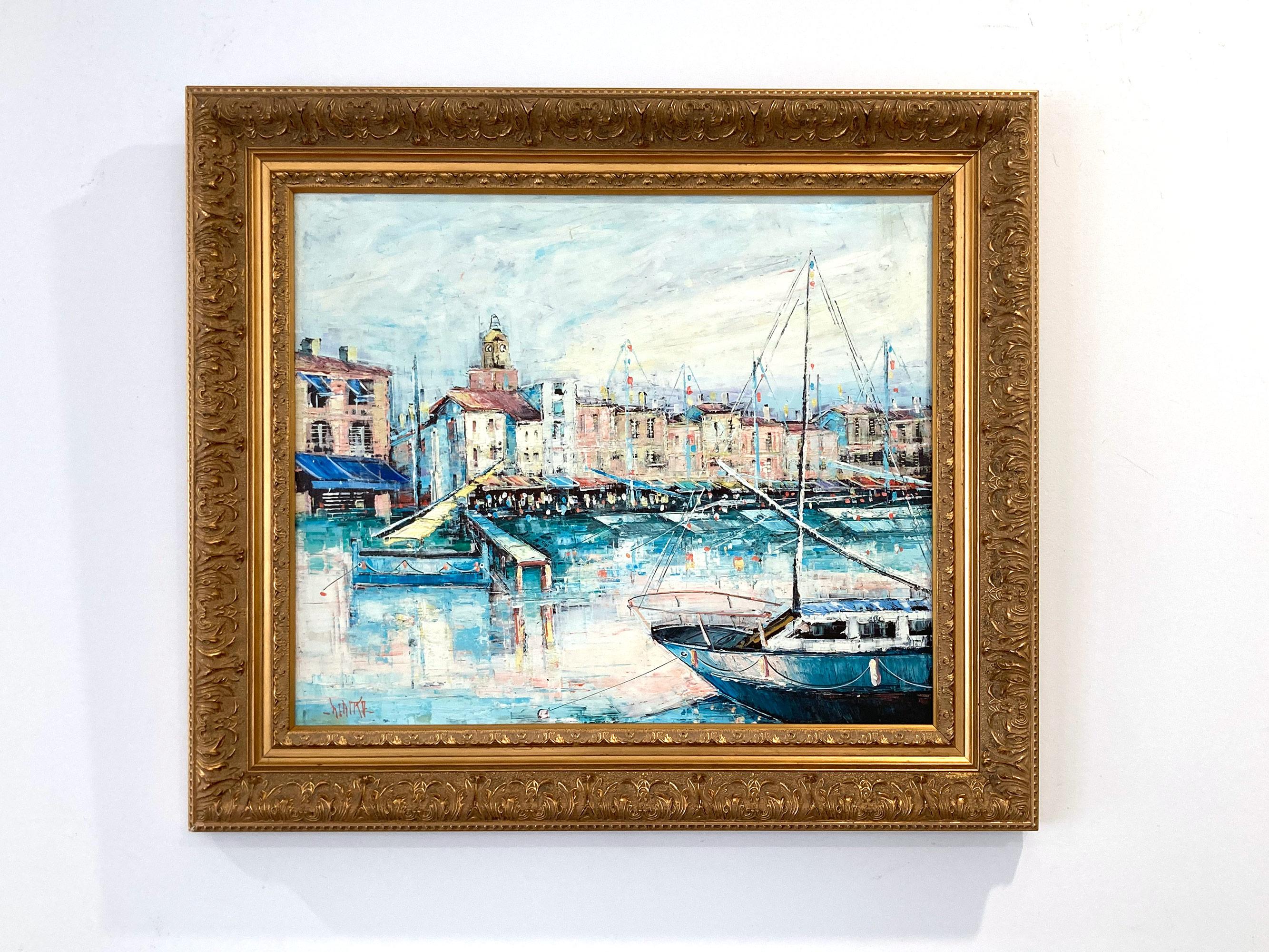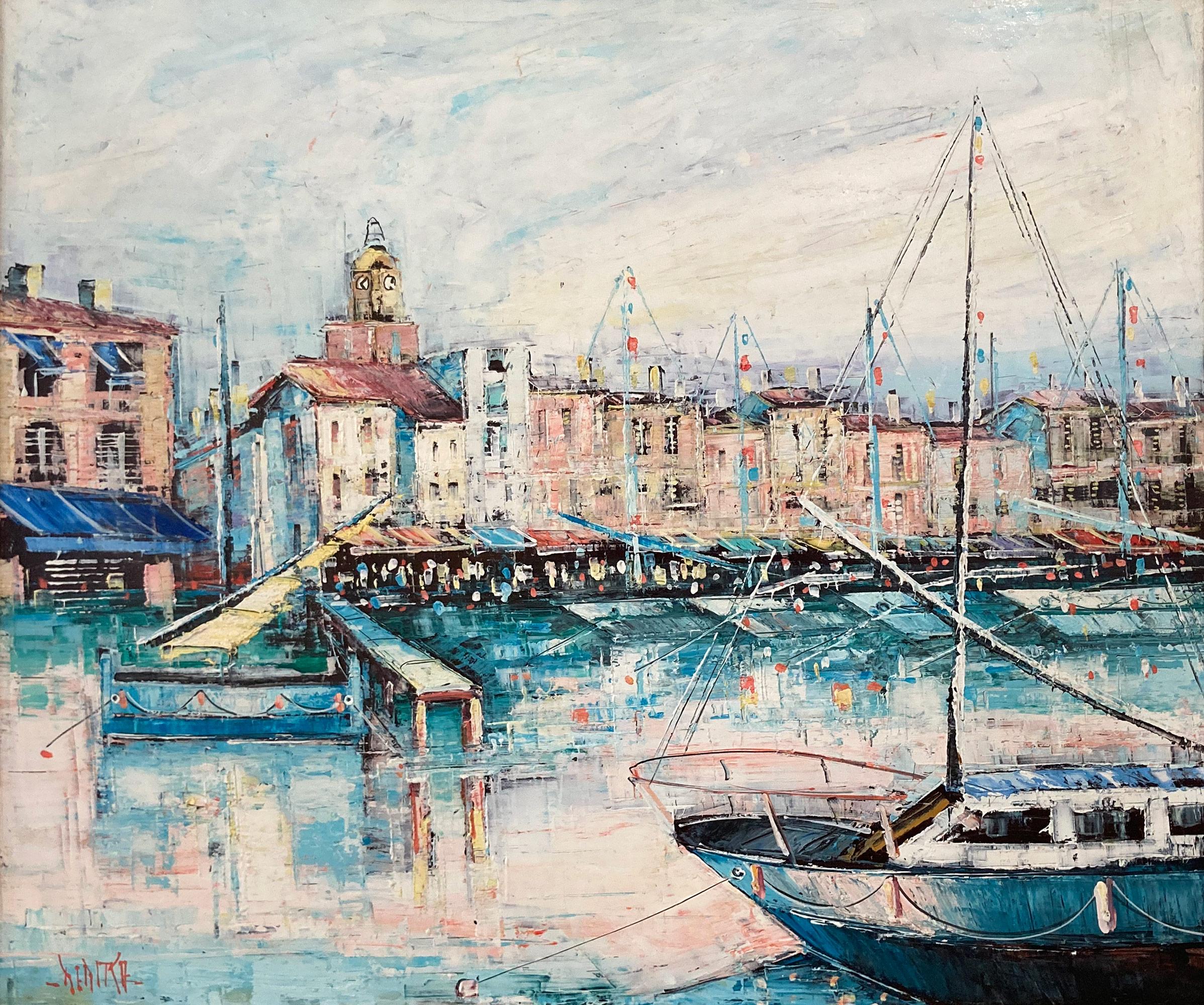 Harry Deditch Dansky"Hafen von Saint-Tropez" Hafenszene Impressionist Ölgemälde auf LeinwandMitte des 20. Jahrhunderts