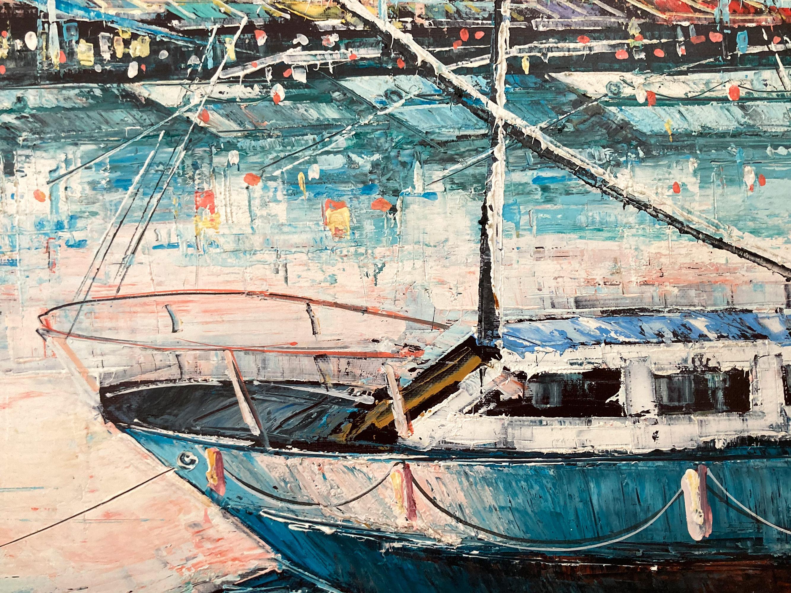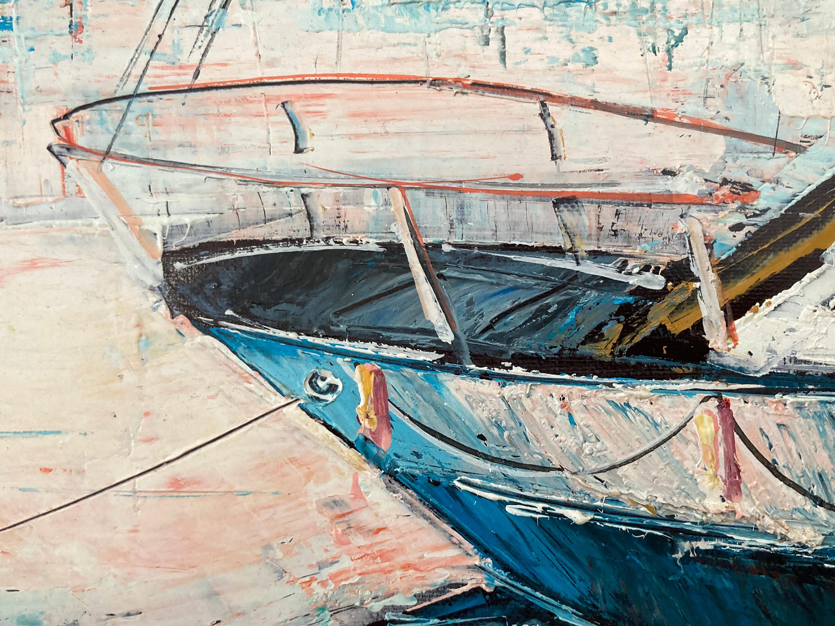 Postimpressionistisches Ölgemälde „Marina in the French Riviera“, Meeresschwanzboote
