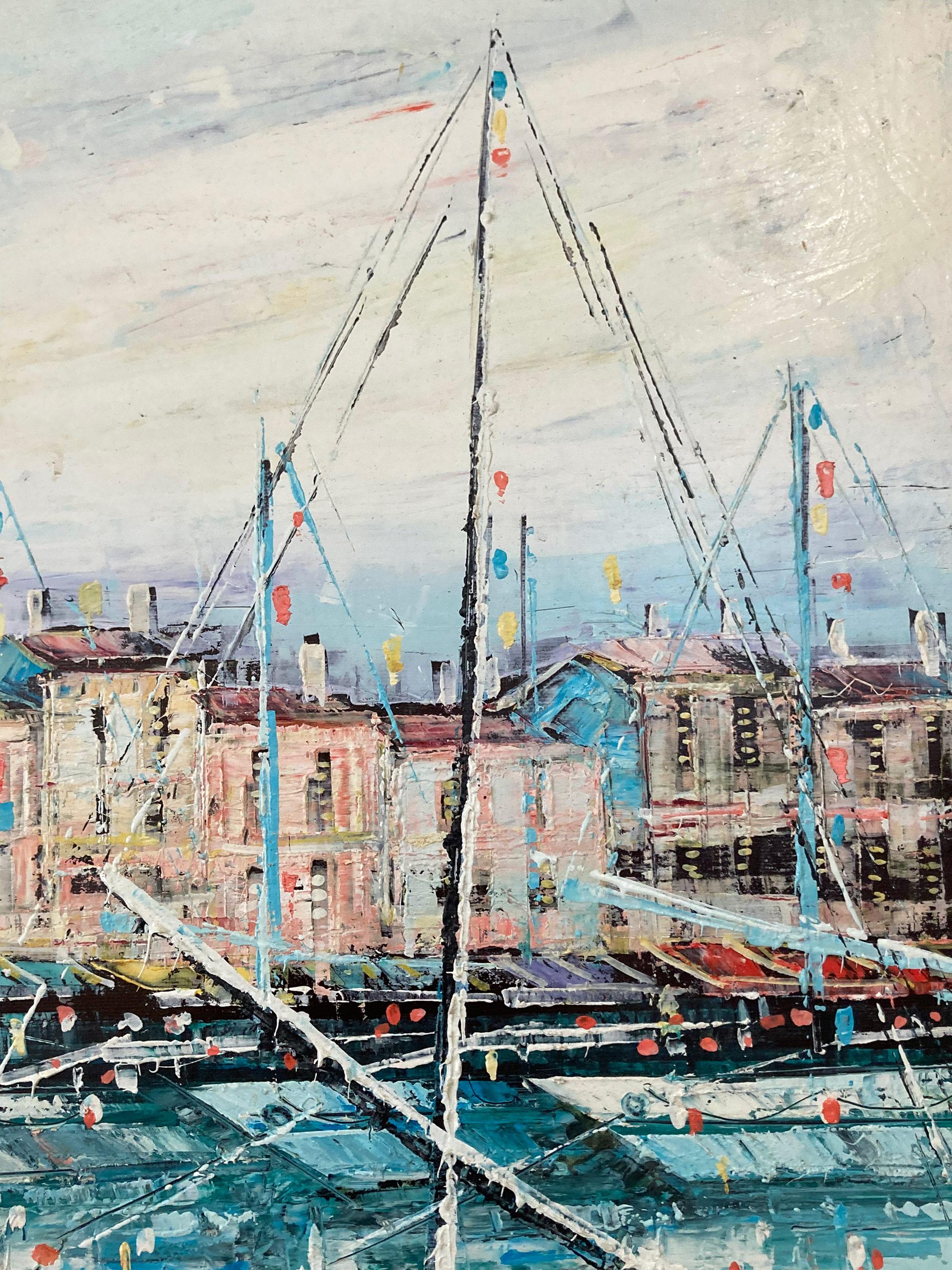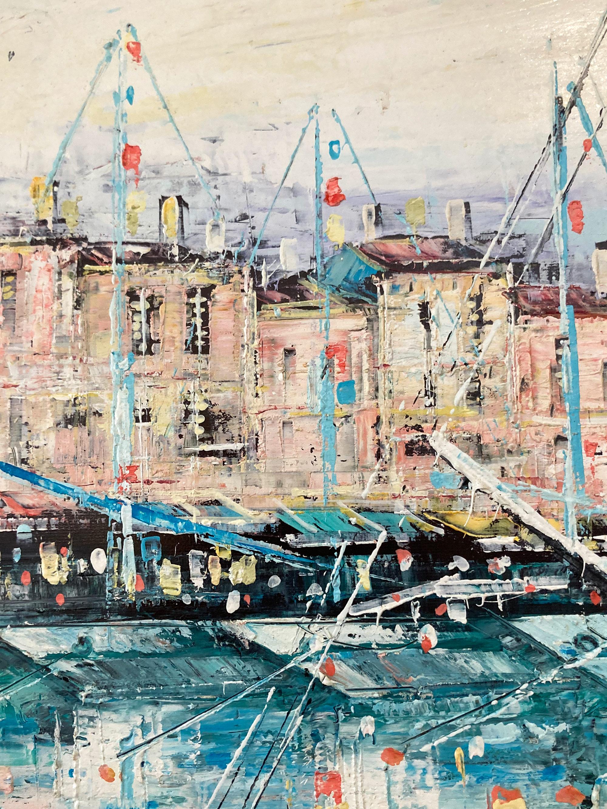 St Tropez Hafen Mitte des 20. Jahrhunderts Französisch Postimpressionistisches signiertes Ölgemälde