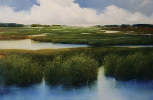 Die Tiefe und das Licht der spiegelnden Oberfläche verleihen meinen Bildern eine wunderbare Dimension. Die meisten Inspirationen für meine Arbeit stammen aus den Sümpfen und Wäldern im Nordosten, insbesondere aus den Küstengebieten Neuenglands. Ich beginne meine Bilder oft en plein air und vollende sie dann in meinem Studio, um eine starke Komposition zu gewährleisten und die Wirkung von Licht und Zeit auf die Landschaft besser zu erforschen. Einige meiner Arbeiten entstehen auch aus der Fantasie, indem ich Fragmente von Fotos und Erinnerungen verwende, um eine überzeugende Komposition zu schaffen.