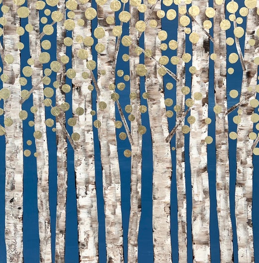 Im Napa Valley, wo Kunst und Natur in Hülle und Fülle vorhanden sind, ist Salenfriends Interpretation der natürlichen Welt komplementär zu der sie umgebenden natürlichen Schönheit. Während einer Reise nach Italien ließ sich Salenfriend von der zeitlosen Schönheit der zerfallenen Reliefs von Pompeji inspirieren, die nun die skulpturale Textur und die Ölfarbschichten in jedem ihrer Werke bestimmen. Salenfriend erinnert an die schimmernden Kunstwerke des österreichischen Symbolisten Gustav Klimt durch die makellosen Schichten aus Gold-, Kupfer- und Silberblättern, die sie für die Gestaltung ihrer atemberaubenden Landschaften verwendet. Die Interaktion zwischen dem Umgebungslicht und dem zarten Metallblatt imitiert die jahreszeitlichen Übergänge in der Natur, die Emotionen, mit denen wir bei der Betrachtung dieser Szenen konfrontiert werden, und ein ständiges Gefühl von Bewegung und Fortschritt.
