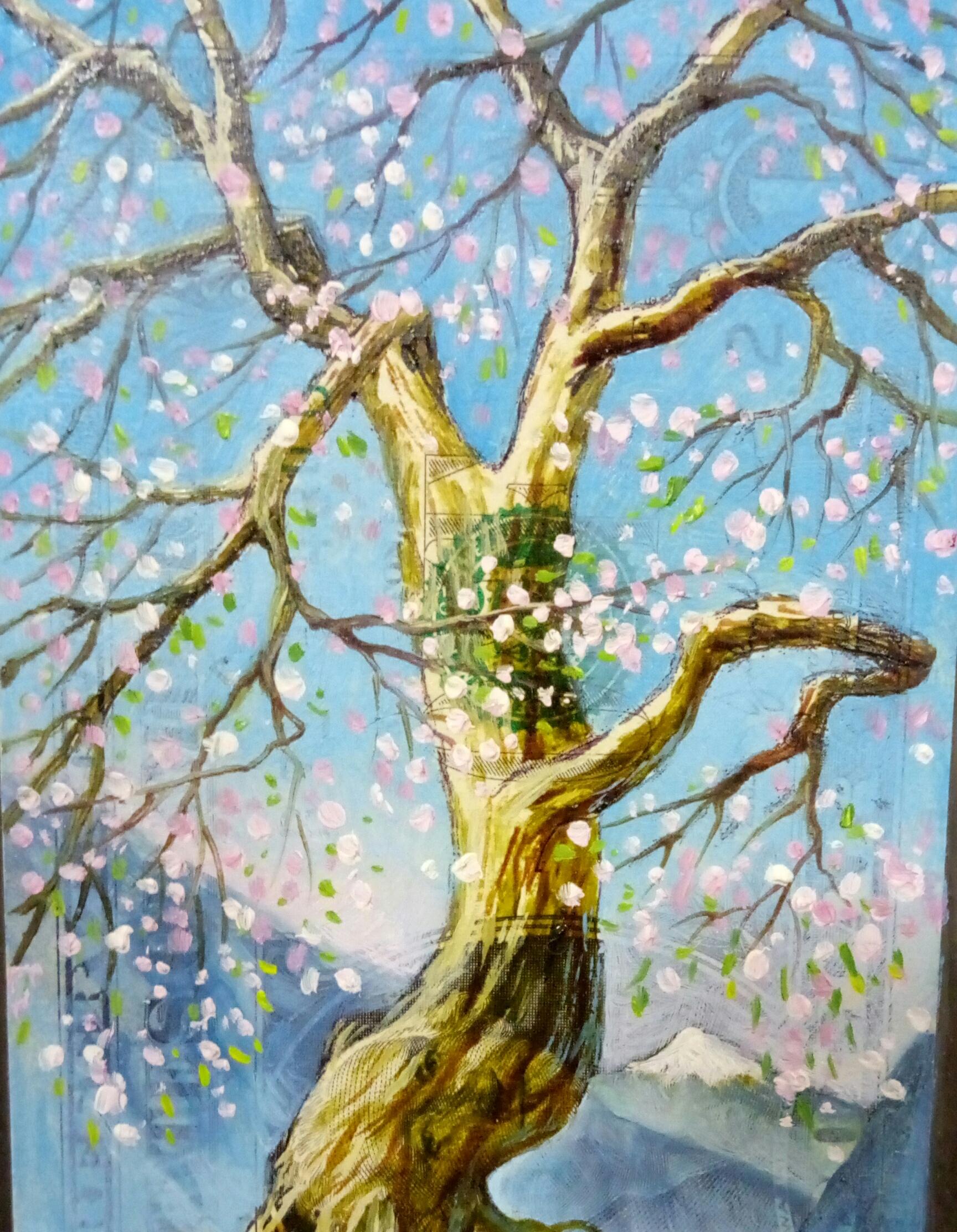 Sakura, Berge, Kriege, Sklaverei, Tyrannei, Apokalypse, Raketen, Nostradamus, Bilder auf Geld, Geld Kunst, Kunst-Dollar, Zeichnungen auf Geld, Banksy, Salvador Dali.
