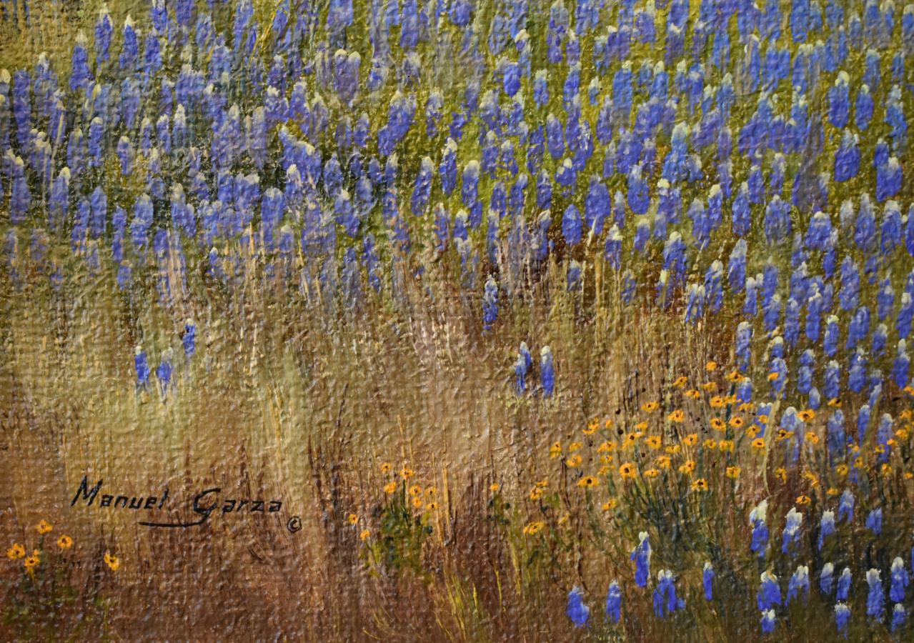 Manuel Garza"BLUBONNET" TEXAS HILL COUNTRY WILDBLUMENLANDSCHAFT 30 X 42 GERAHMT20. Jahrhundert