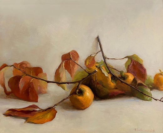 Melissa Franklin Sanchez"Diospero" realistisches Ölgemälde, Persimmon-Baum in voller Blüte, toskanische Landschaft2022