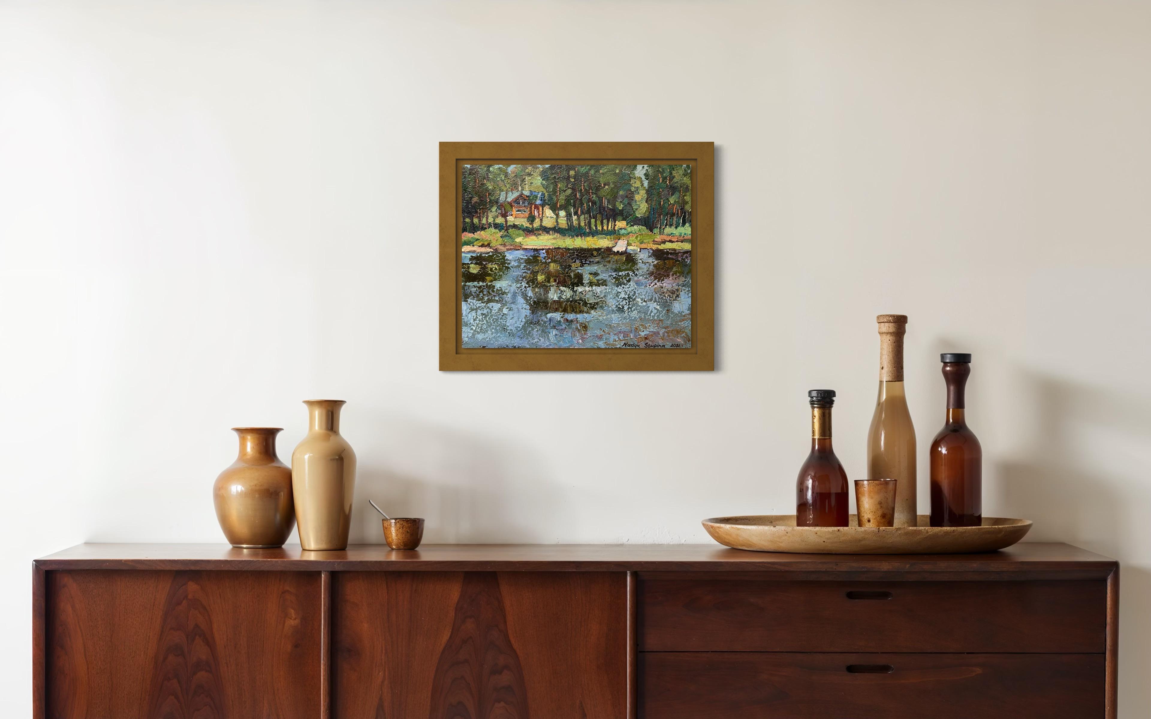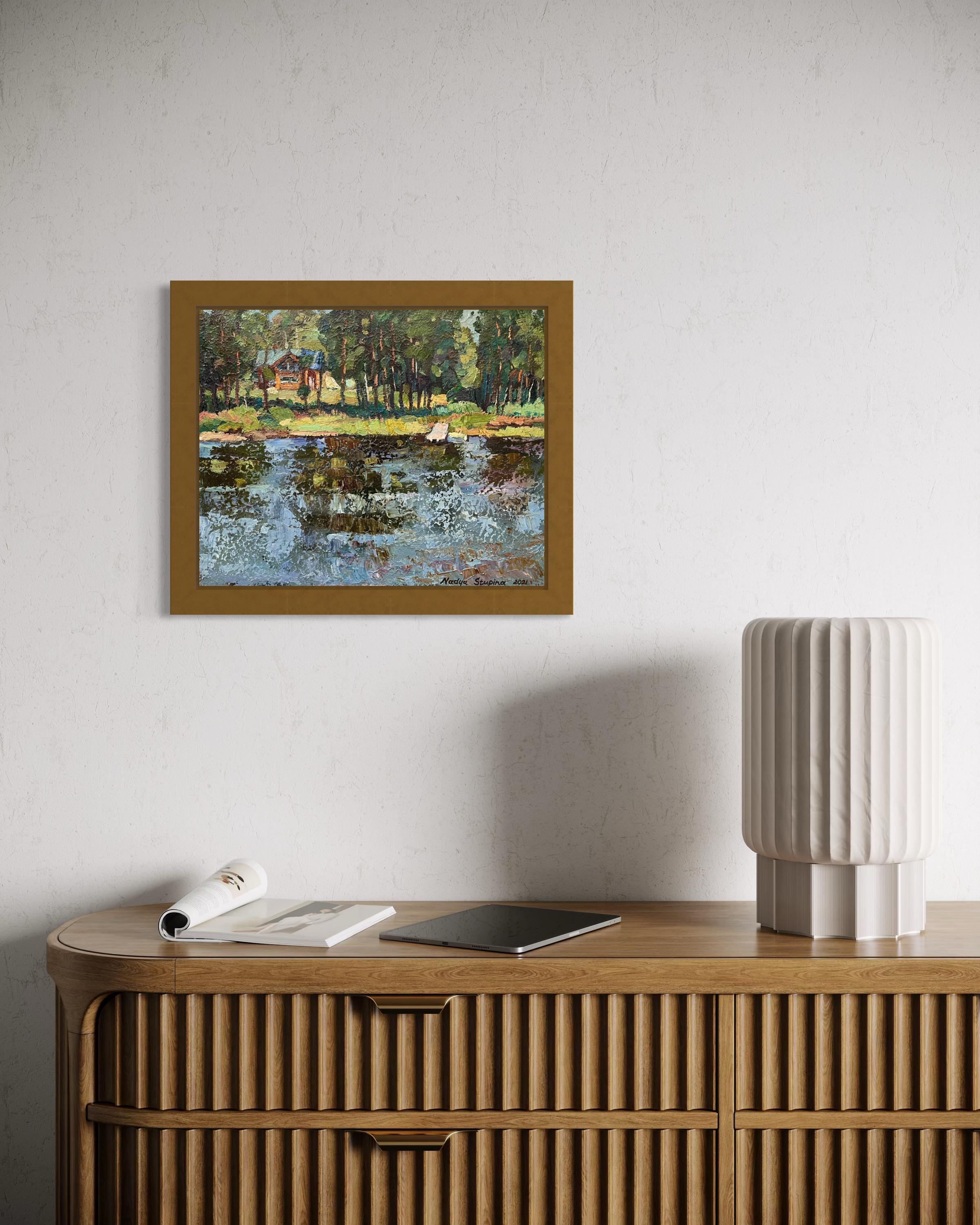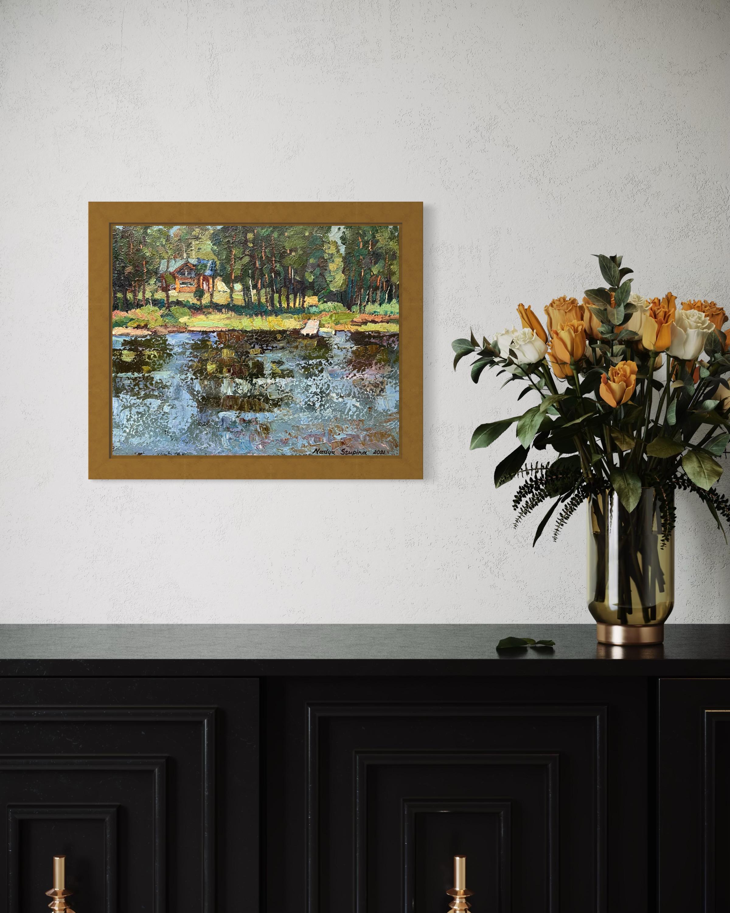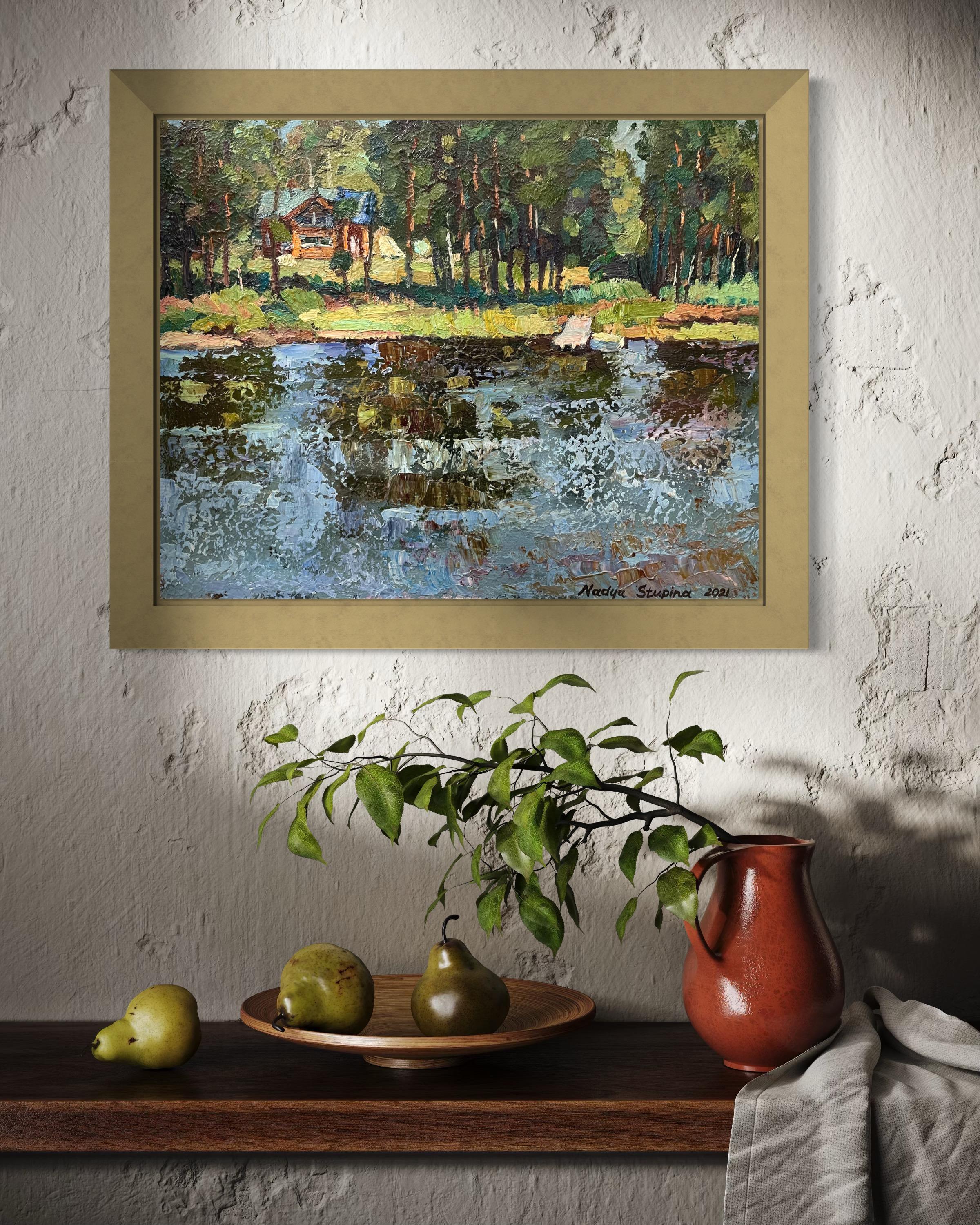 Nadezda Stupina"Das Haus am See" Original impressionistisches Landschaftsgemälde.2021